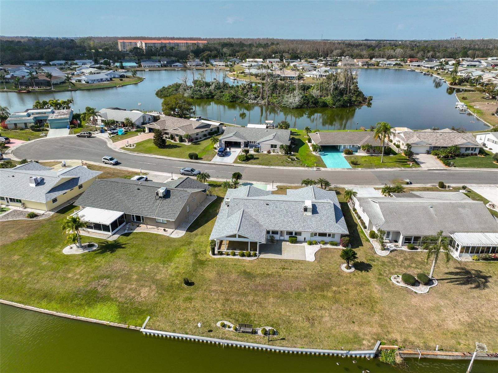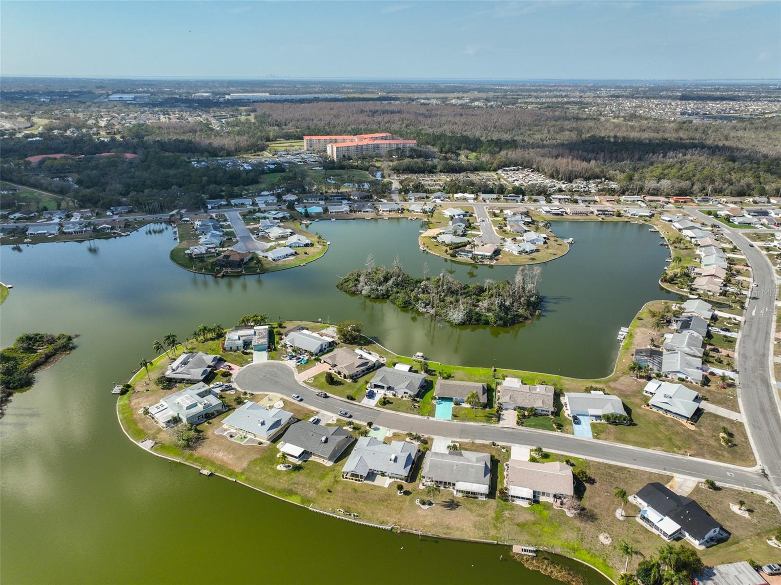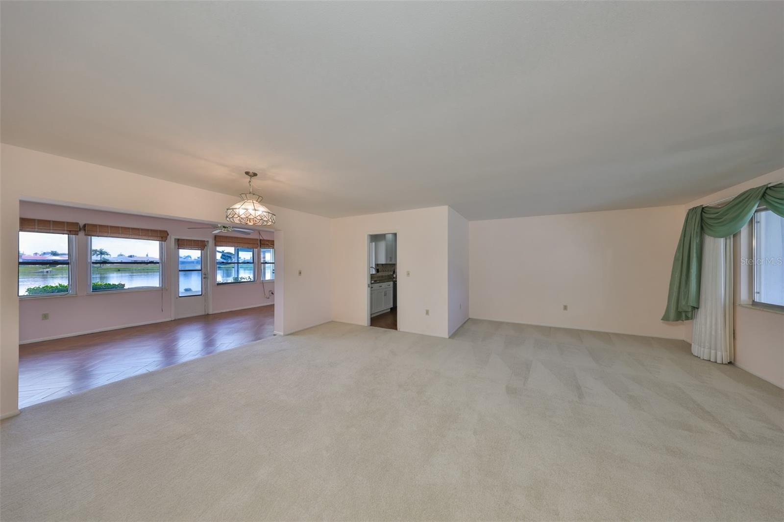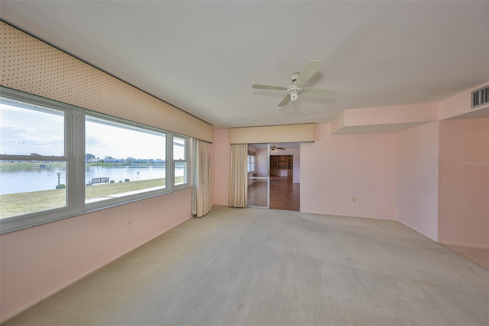 One or more photo(s) has been virtually staged. HUGE PRICE IMPROVEMENT! One or more photo(s) has been virtually staged. Charming Lakefront Home on Middle Lake in Sun City Center's 55+ Community! Experience the joy of sunny days in this lovely home nestled on a peaceful cul-de-sac, overlooking the serene boatable 45-acre Middle Lake. Perfect home for entertaining family and friends, with large living room, Florida room, den and Sunroom. Enjoy watching wildlife from the stunning Sunroom or Florida Room in this bright and airy custom DW-55, featuring 2 bedrooms and 2 baths. The updated kitchen is a chef's dream with white cabinets, granite countertops, stainless steel appliances, recessed lighting, and attractive wood-look tile flooring. The Sunroom stands out with its vaulted ceiling adorned with beams, expansive windows all around, complete with sunshades and hurricane panels. The thoughtfully designed second bedroom includes two closets, one of which is a walk-in. The main suite offers an ensuite bathroom featuring a walk-in shower for your convenience. The two-car garage has a workbench and extra storage, and the spacious laundry room has extra storage. Recent updates include fresh exterior paint in 2022, a new roof installed in November 2023, and two HVAC systems replaced in September 2019 and March 2020. The hot water heater was updated in 2017, some windows were replaced in 2006, and the retaining wall was redone in 2010. The sprinkler system has a new lakeside pipe installed in April 2024 and a new pump from 2019. The interior plumbing was repiped in 2007. Buyers will be required to pay a one-time fee of $3,000 to the SCC Community Association, followed by an annual fee of $344 per person, plus $75 for lake maintenance. Sun City Center offers a vibrant active adult lifestyle with a state-of-the-art fitness center, indoor Olympic lap pool, resistance pool, and outdoor pool. Engage in various activities such as softball, pickleball, tennis, arts and crafts, model trains, woodworking, lawn bowling, dancing, and more than 150 clubs. Optional membership for Club Renaissance and access to 72 holes of golf are also available! This home is conveniently located near everyday amenities, providing easy access to Tampa, Sarasota, St. Petersburg, Tampa International Airport, sporting events, beaches, theaters, shopping, dining, and so much more!