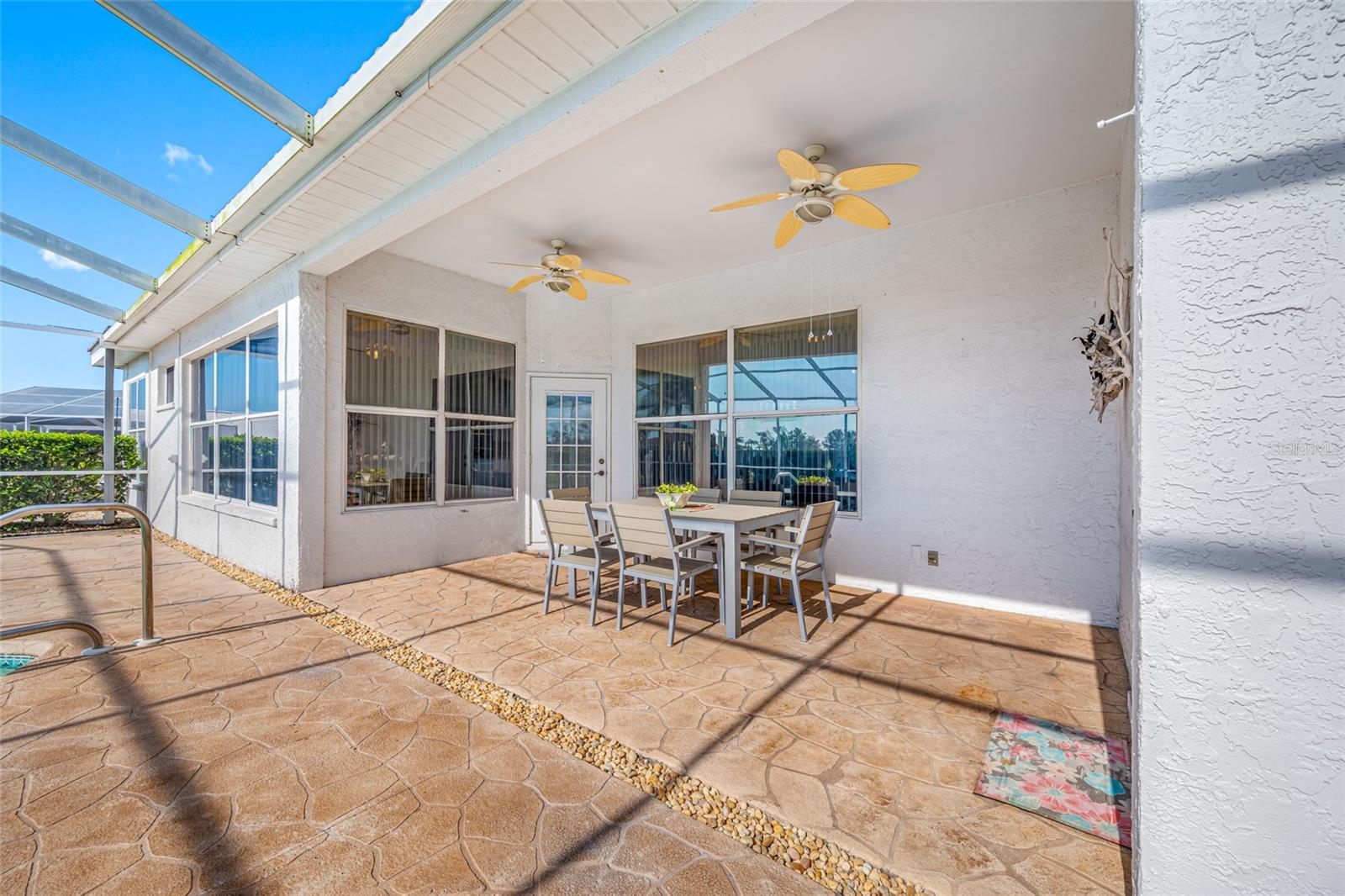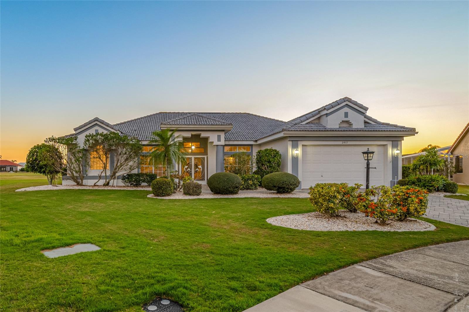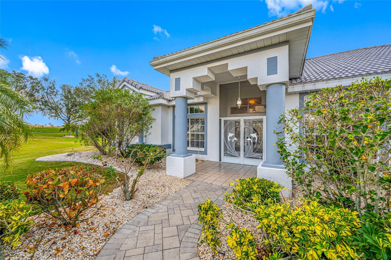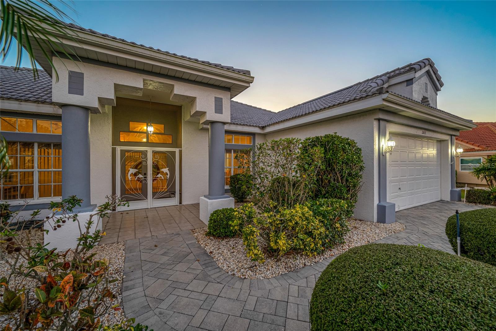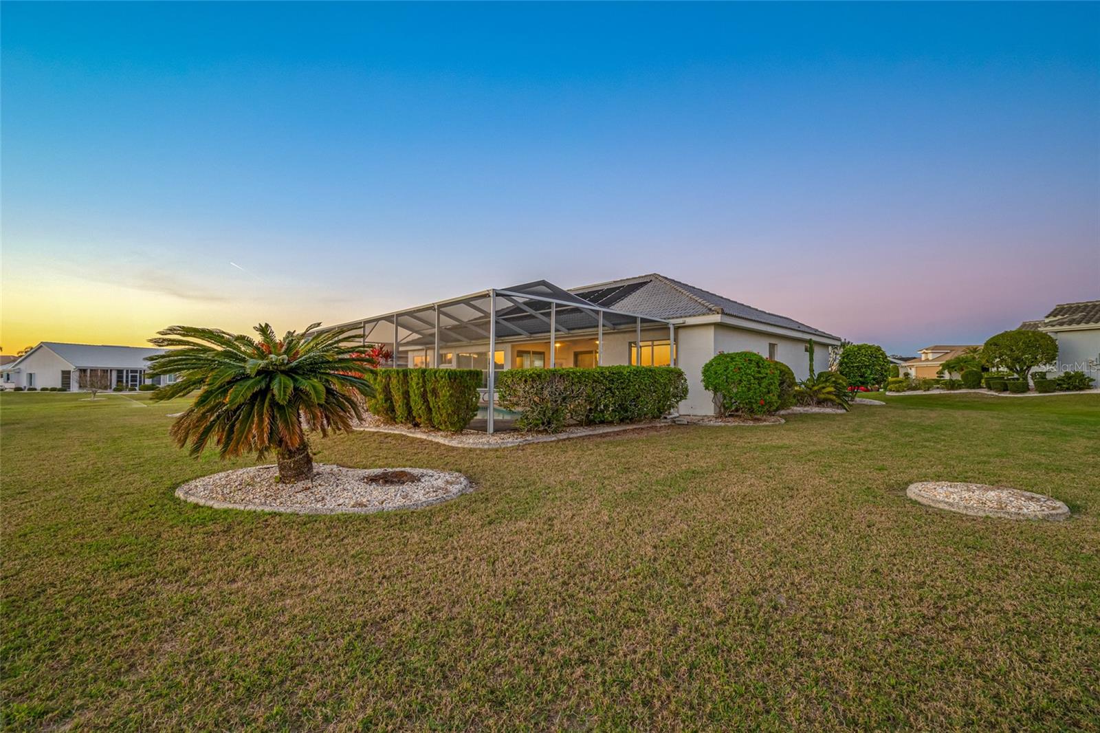 Serene Waterfall Pool Home at the End of Cul-de-Sac.... Do you enjoy tranquility, relaxing to the sounds of a waterfall, enjoying your favorite beverage while gazing at amazing sunset views and a wide variety of activities at your doorstep? Welcome to your dream tropical oasis nestled at the end of a tranquil cul-de-sac!..... You will fall in love with this waterfall pool home because: it boasts: 3 beds, 2 baths, plus an office...Oversized cul-de-sac lot.. Breathtaking views of a serene pond and lush golf course...Swimming year round with your solar-paneled pool...Perfect for relaxation and entertainment complete with amazing views...Paver driveway with elegant entrance and spacious open floor plan...Generous living with 2 dining spaces and gourmet kitchen... Large windows bathing the space in natural light...Brand new carpeting and dishwasher...Refrigerator, washer, A/C , less than 3 years old... Newer tile roof...Luxurious primary suite, featuring an ensuite bath with direct access to the pool area, perfect for morning dips or evening stargazing...Expansive patio surrounding the shimmering pool, with an idyllic setting for barbeques, pool parties, or simply enjoying your surroundings...Best of both worlds—privacy and picturesque views with lots of Florida wildlife to watch... Vibrant Del Webb 55+ community offering golf, pickleball, lawn-bowling, tennis, 3 pools, huge recreational room, dog park,state-of-the art fitness center and 120+ clubs with year round activities.... Join the Travel Club and leave your car at home. TURN KEY Move in ready all furnishings included. What are you waiting for........ your DREAM HOME is waiting for YOU!!! Call TODAY to schedule your private showing!