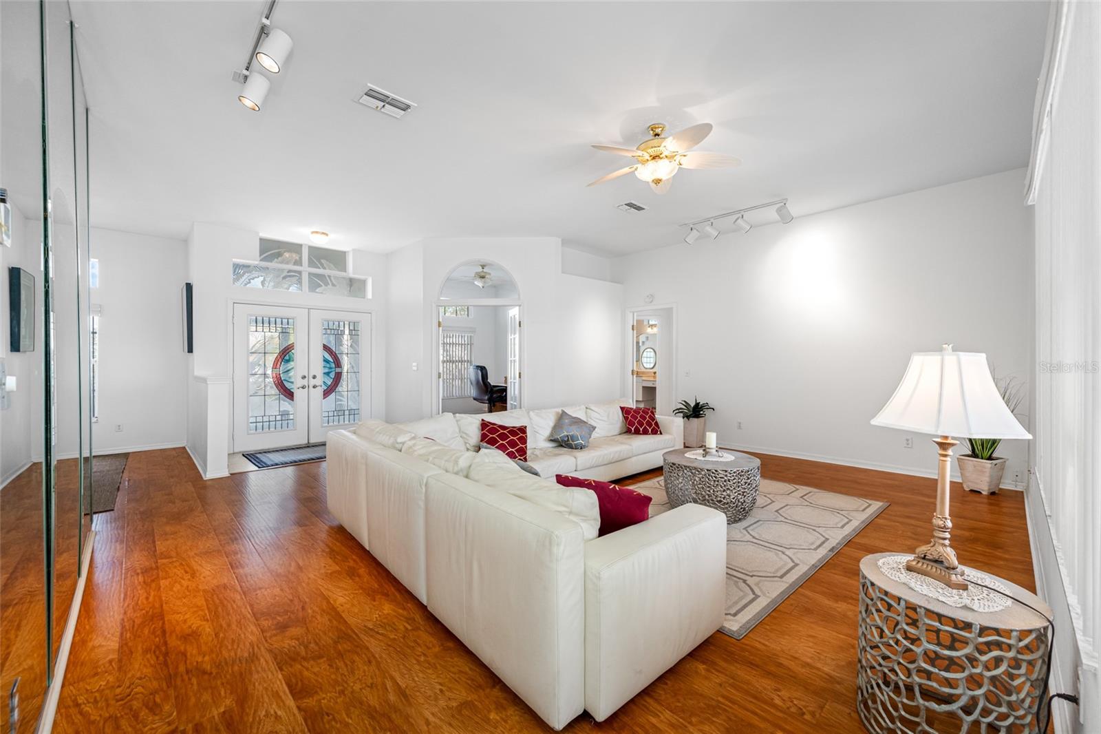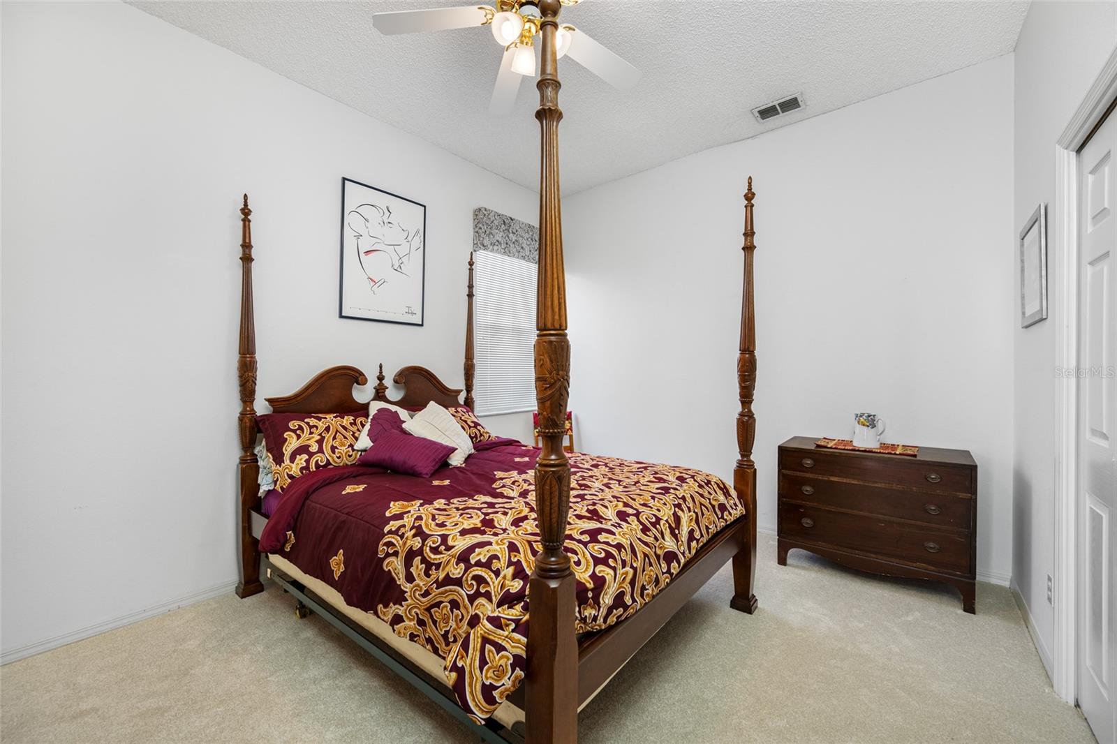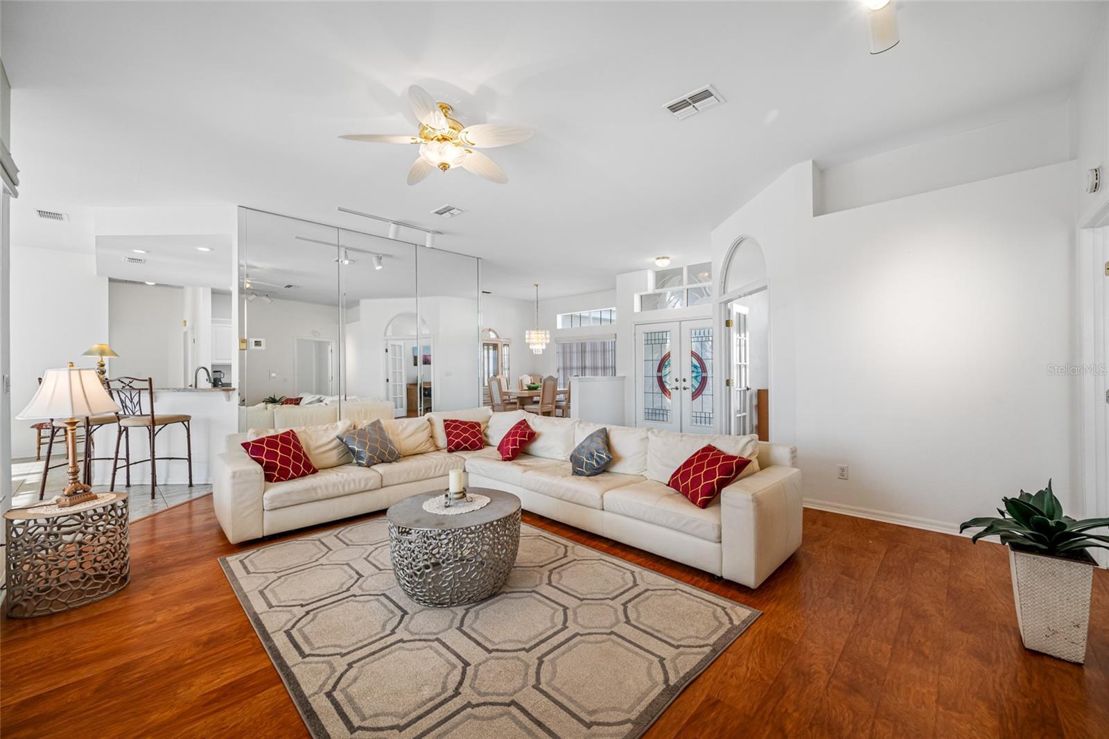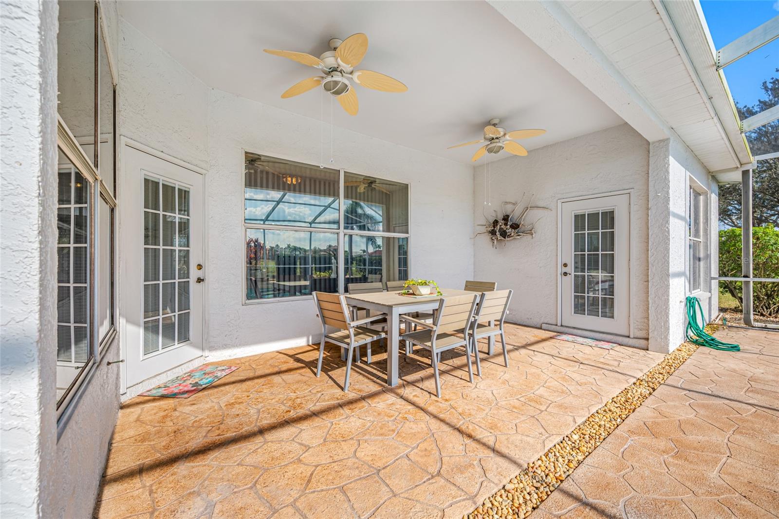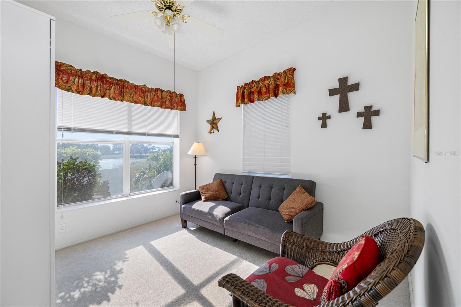 Serene Waterfall Pool Home at the End of Cul-de-Sac.... Do you enjoy tranquility, relaxing to the sounds of a waterfall, enjoying your favorite beverage while gazing at amazing sunset views and a wide variety of activities at your doorstep? Welcome to your dream tropical oasis nestled at the end of a tranquil cul-de-sac!..... You will fall in love with this waterfall pool home because: it boasts: 3 beds, 2 baths, plus an office...Oversized cul-de-sac lot.. Breathtaking views of a serene pond and lush golf course...Swimming year round with your solar-paneled pool...Perfect for relaxation and entertainment complete with amazing views...Paver driveway with elegant entrance and spacious open floor plan...Generous living with 2 dining spaces and gourmet kitchen... Large windows bathing the space in natural light...Brand new carpeting and dishwasher...Refrigerator, washer, A/C , less than 3 years old... Newer tile roof...Luxurious primary suite, featuring an ensuite bath with direct access to the pool area, perfect for morning dips or evening stargazing...Expansive patio surrounding the shimmering pool, with an idyllic setting for barbeques, pool parties, or simply enjoying your surroundings...Best of both worlds—privacy and picturesque views with lots of Florida wildlife to watch... Vibrant Del Webb 55+ community offering golf, pickleball, lawn-bowling, tennis, 3 pools, huge recreational room, dog park,state-of-the art fitness center and 120+ clubs with year round activities.... Join the Travel Club and leave your car at home. TURN KEY Move in ready all furnishings included. What are you waiting for........ your DREAM HOME is waiting for YOU!!! Call TODAY to schedule your private showing!