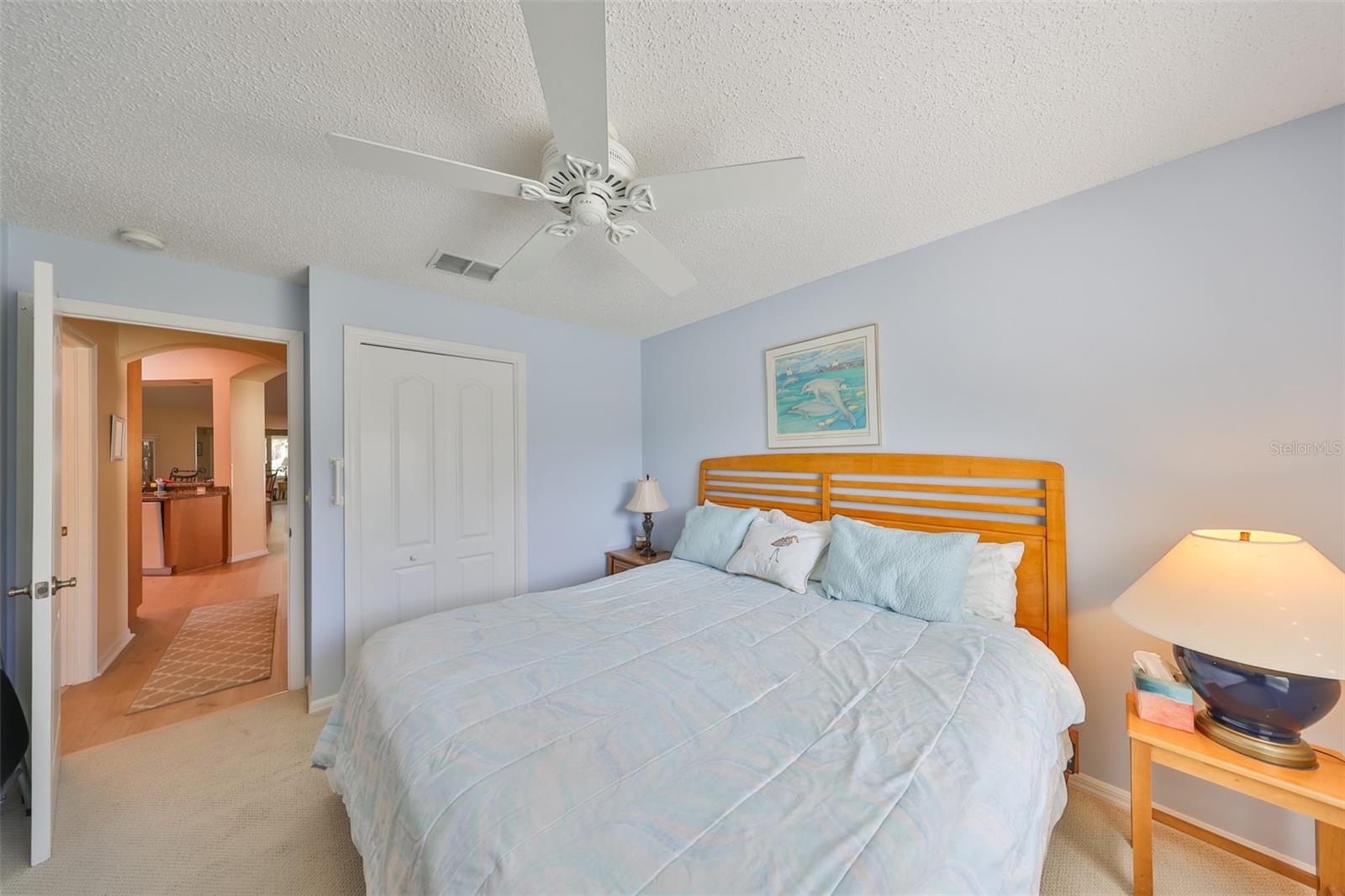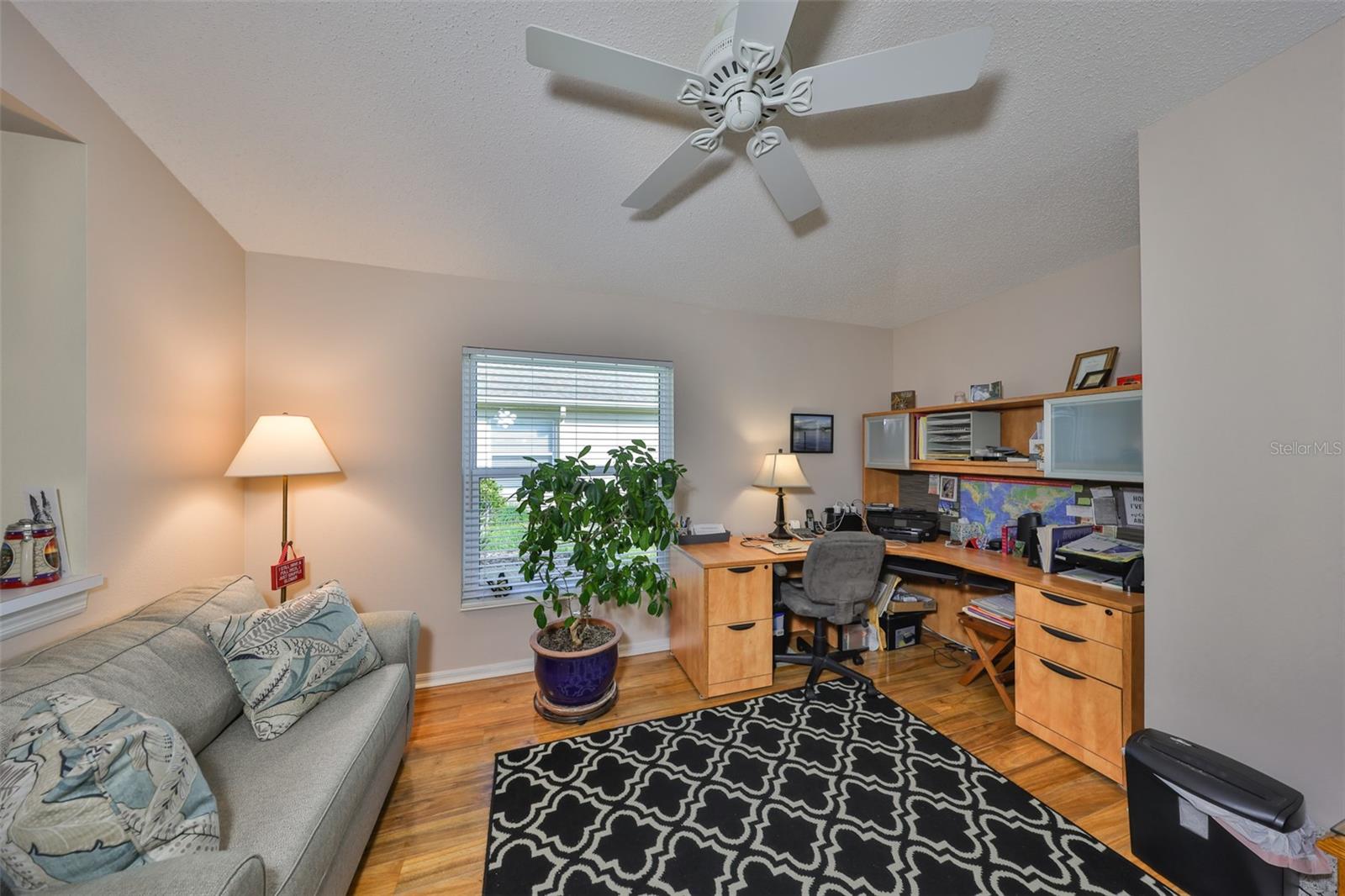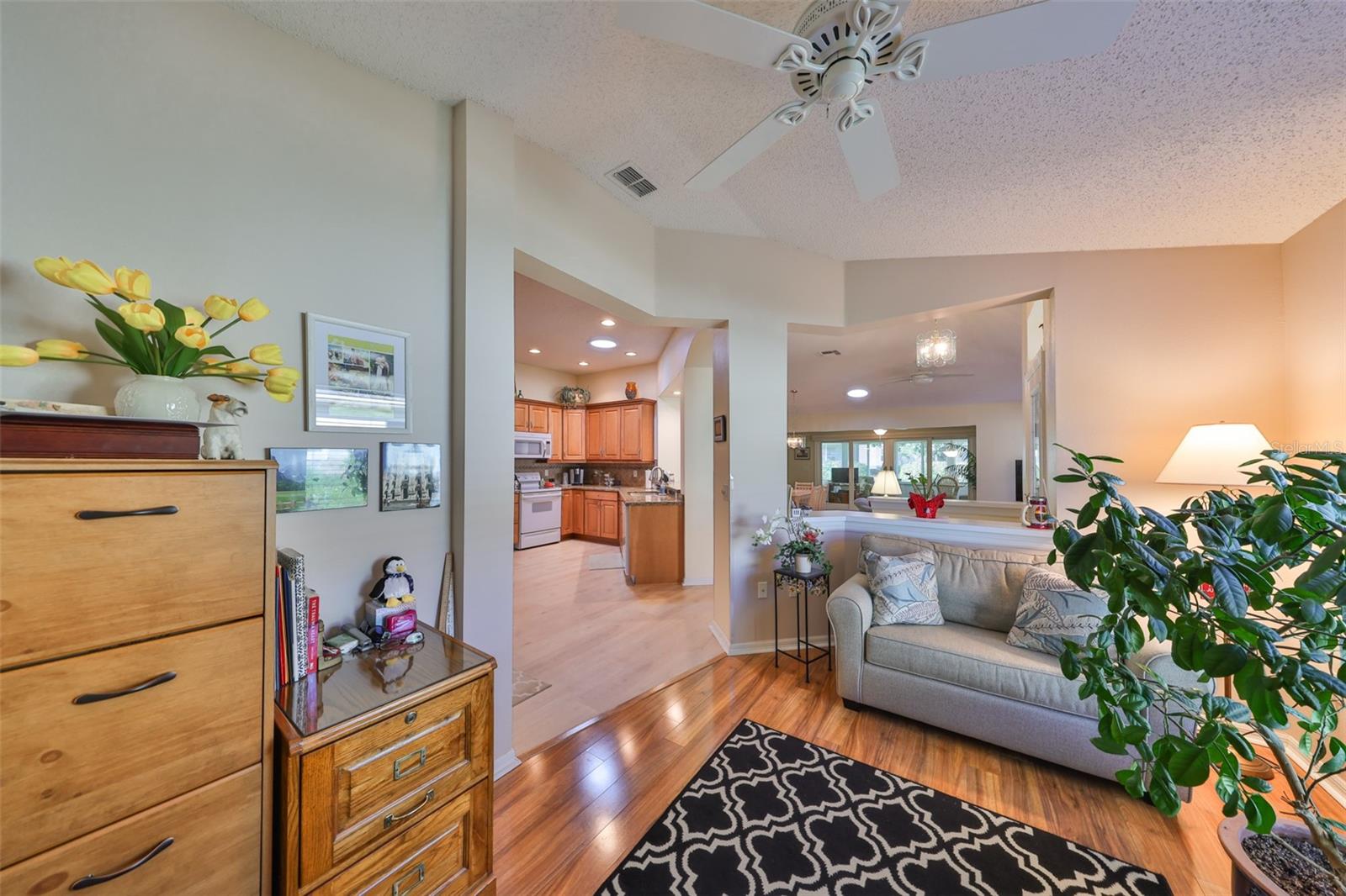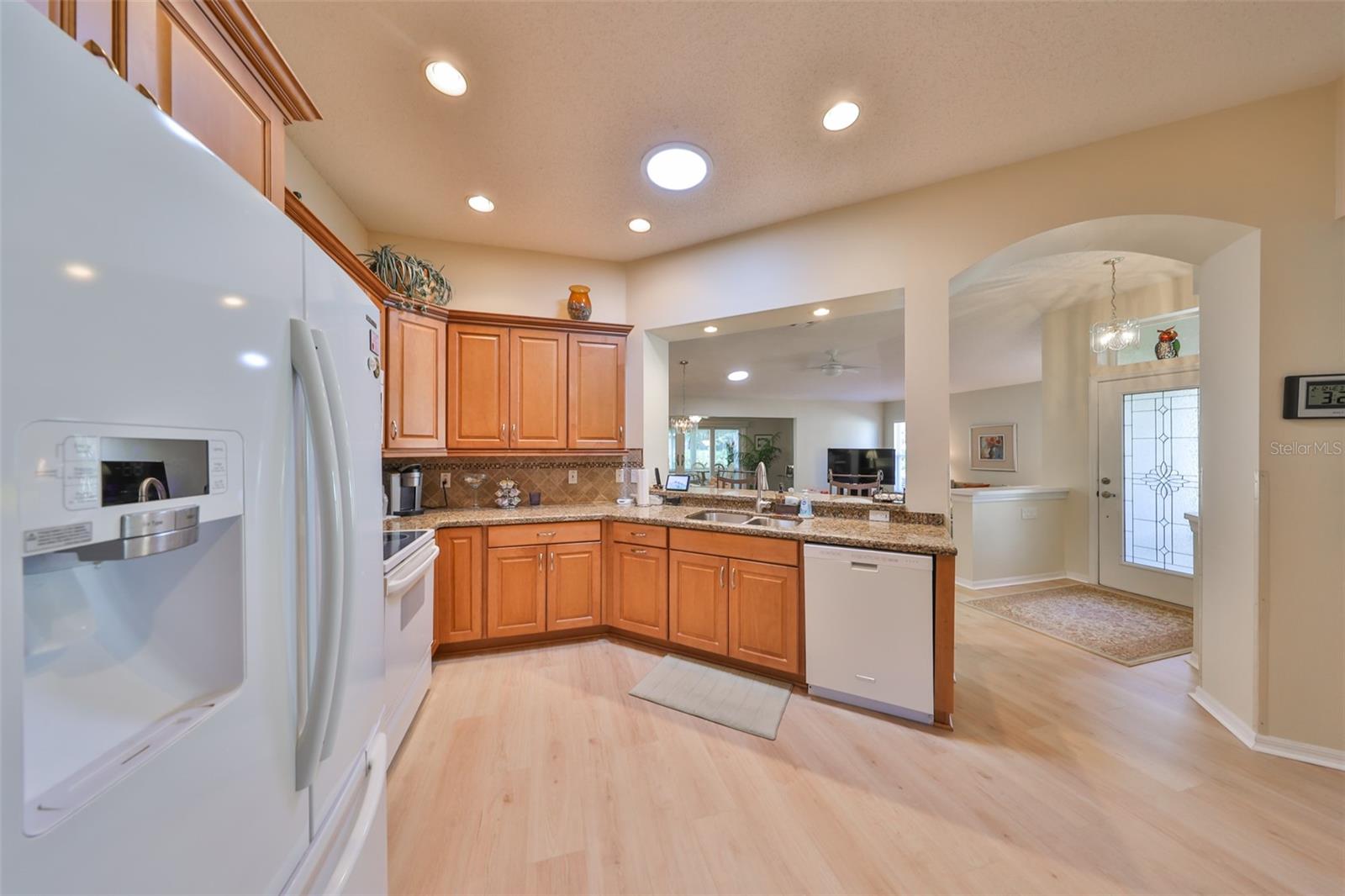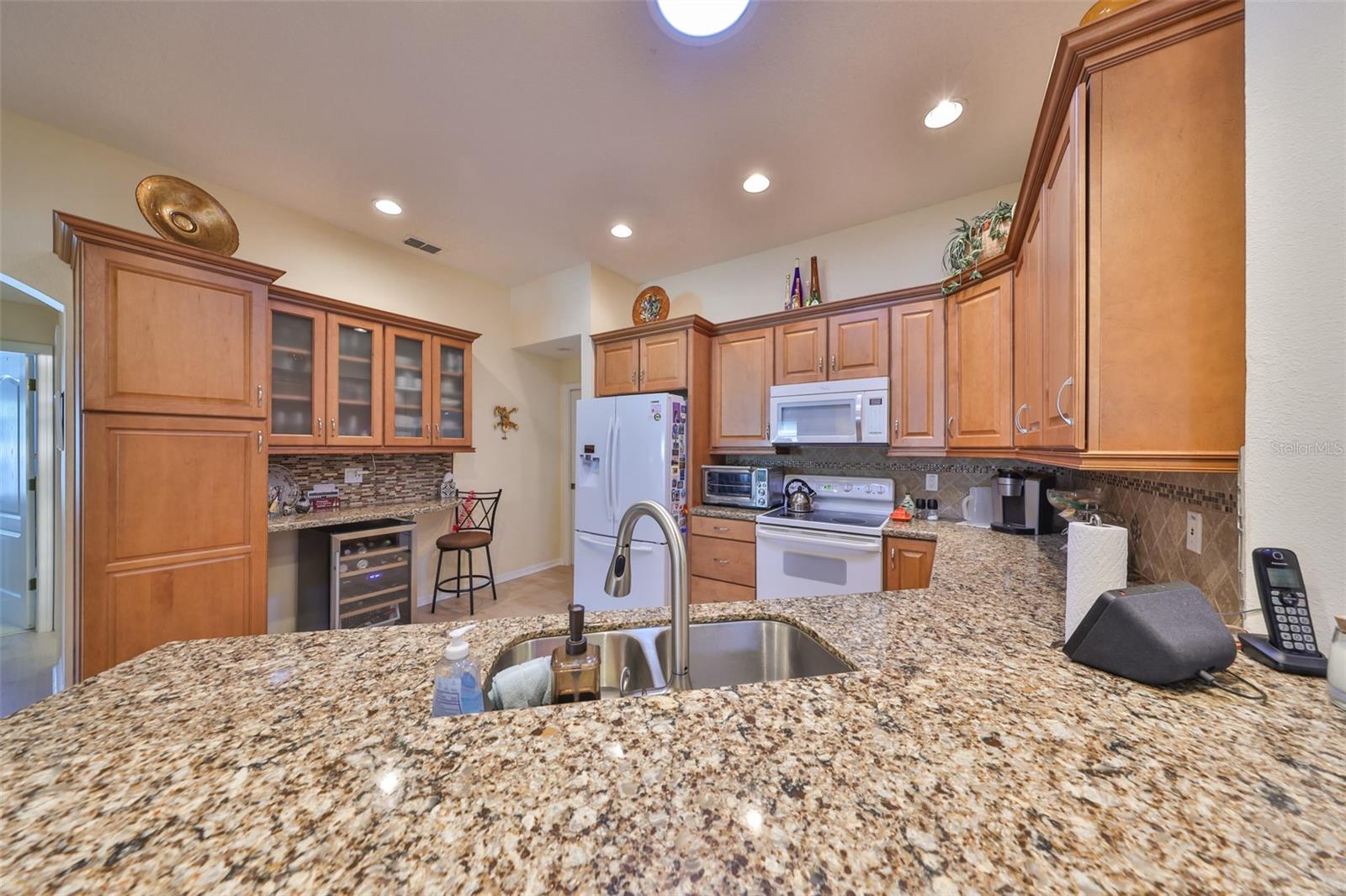 TERRIFIC PRICE IMPROVEMENT FOR THIS BEAUTIFULLY UPDATED CONDO FEATURING AN 8 X 20 NEWER FLORIDA ROOM, PLUS GOLF CART! Enjoy the fun Florida lifestyle in the GATED & MAINTENANCE FREE 55+ community of Kings Point in Sun City Center, FL, where you'll feel like you're on vacation every day. Nestled in a lovely, "pet friendly" neighborhood, this immaculate & well maintained, 2 bed/2 bath & den, FULLY FURNISHED condo has a modern, open floorplan, high ceilings, 3 SOLAR TUBES for extra natural light, LUXURY VINYL FLOORING (2024) and IMPACT WINDOWS (2024). The UPDATED KITCHEN is a cook's dream with plenty of 42-inch wood cabinetry finished w/crown molding, pretty tile backsplash, quartz "Cambria" counters, and a breakfast bar for extra casual seating, all open to the huge living room/dining room combo. The private owner's suite has large dual closets, NEWER VANITY, FIXTURES, AND GORGEOUS TILED WALK-IN SHOWER. The spacious 2nd bedroom & UPDATED BATHROOM are at the opposite end of the condo, offering privacy for guests. The office/den is a great versatile space that can easily accommodate extra guests if needed. For added living space, this condo has a terrific 8 x 20 GLASSED ENCLOSED FLORIDA ROOM (2024) that has a SPLIT AC/HEAT UNIT, DOUBLE PANE WINDOWS, REINFORCED CEILING PANELS, CERAMIC TILE FLOORING and IMPACT SLIDERS. For extra storage, all cabinets in the 2-car garage will remain. Furniture may be available for sale on separate bill of sale. Kings Point is a wonderful community with numerous amenities, such as 2 clubhouses w/cafes, indoor/outdoor resort-style pools, tennis/pickleball courts, lawn bowling, tons of social clubs, live theater, golf, and so much more, all accessible by golf cart. Kings Point is conveniently located on major highways, airports, award-winning beaches, Sarasota, Tampa, and Disney. So come and view this beauty today and see why you'll want to call it home!