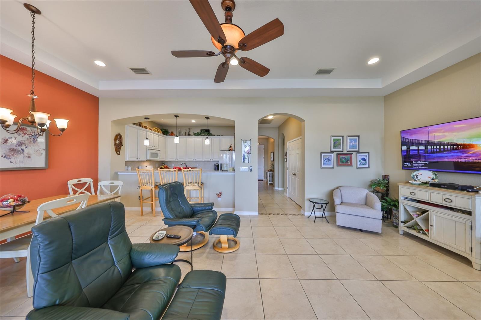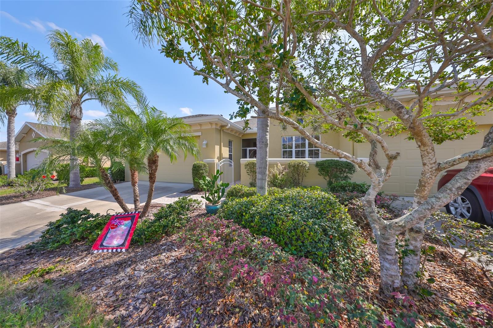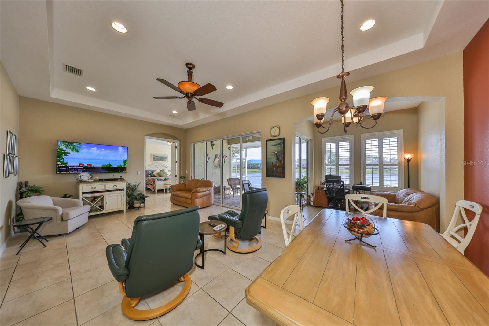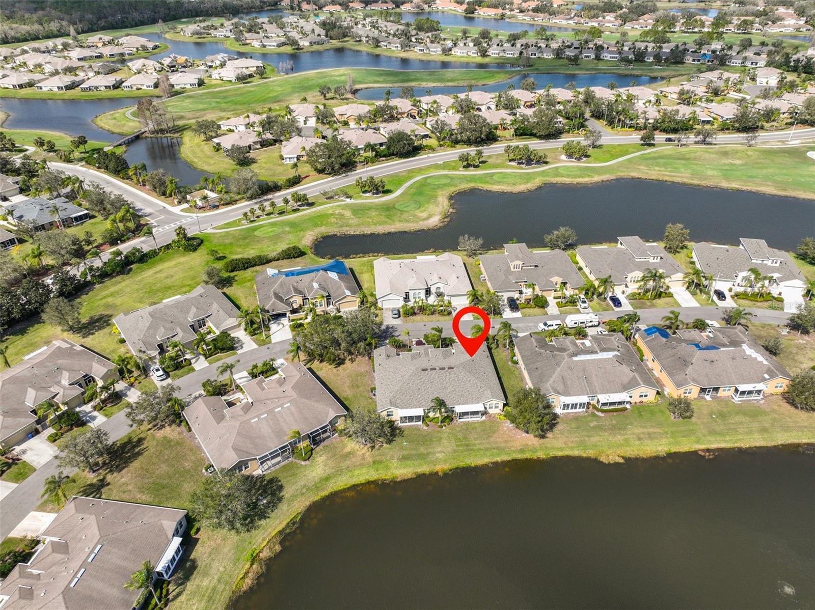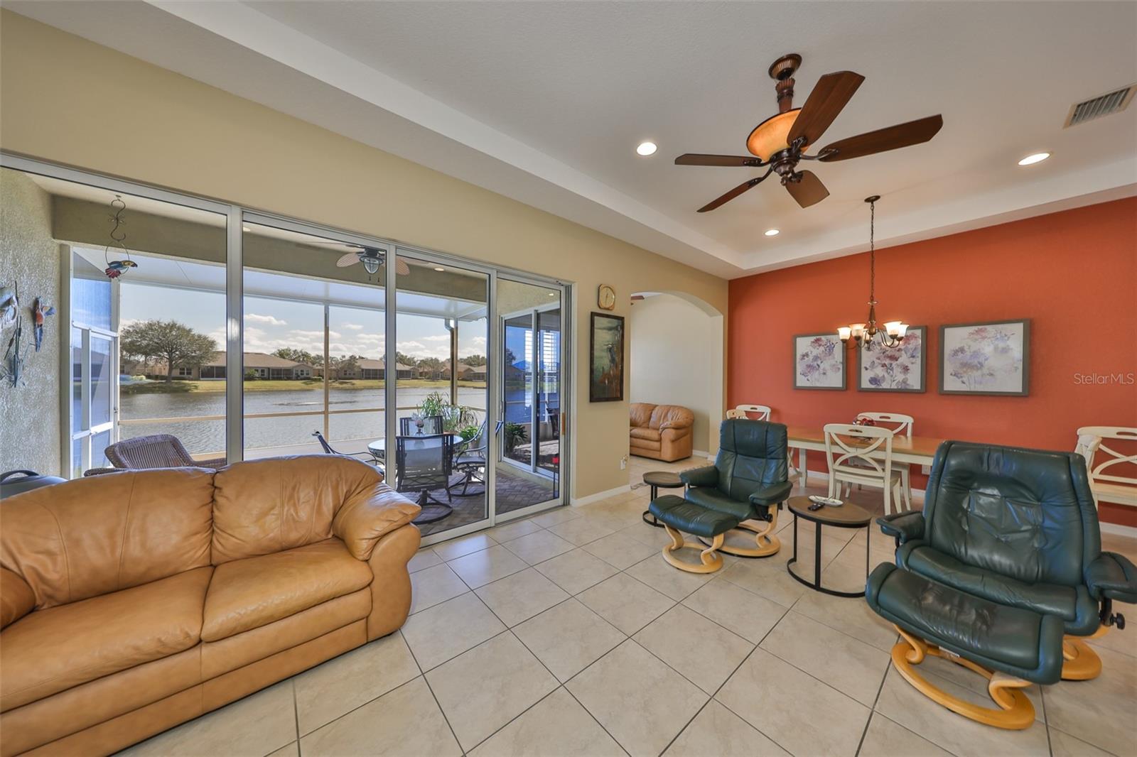 Breathtaking Waterviews from the Moment You Step Inside! Welcome to your dream home, featuring the highly sought-after Mayfair floor plan, the most popular 3-bedroom, 2-bathroom layout in this community. From the moment you walk through the front door, you'll be captivated by stunning water views that create a tranquil and picturesque setting. Enhanced Outdoor Living The expanded screened lanai is perfect for enjoying the serene backdrop, designed with a heavy-duty insulated roof that offers the option to upgrade to a fully glassed-in space. Thanks to the strategic orientation of the home, you can relax on the lanai without the inconvenience of the afternoon sun. Elegant Interior Features Step inside to find ceramic tile flooring throughout the main living areas, ensuring durability and easy maintenance, while the two guest bedrooms offer the comfort of plush carpeting. Plantation shutters and wood blind treatments adorn every window, adding a touch of sophistication to each room. The home is accented with decorative remote-controlled ceiling fans, enhancing comfort and style. Recent Updates and Thoughtful Details Freshly painted interiors provide a bright and welcoming ambiance. New water softener installed in February 2025, ensuring high-quality water throughout the home. Beautiful brick pavers enhance the appeal of the lanai and front courtyard, offering a polished and cohesive look. Resort-Style Living in Award-Winning Community Nestled in Sun City Center, voted the #1 Retirement Community for 2024 by Realtor.com and Travel + Leisure Magazine, this home offers an unparalleled lifestyle. In the vibrant Kings Point community, you'll find endless opportunities for recreation and social engagement, including: Two Clubhouses (South and North) State-of-the-art 20/20 Fitness/Spa facility Multiple pools and spas for relaxation Veteran's Theater Entertainment, bingo, arts and crafts, cards, and woodshop Fine dining, pickleball, golf, tennis, and lawn bowling 24-hour golf cart accessibility throughout the community Live the Good Life! With its ideal layout, beautiful finishes, and an unbeatable location in a top-rated retirement community, this home truly offers the best of Florida living. Welcome to your new home, where every day feels like a vacation!