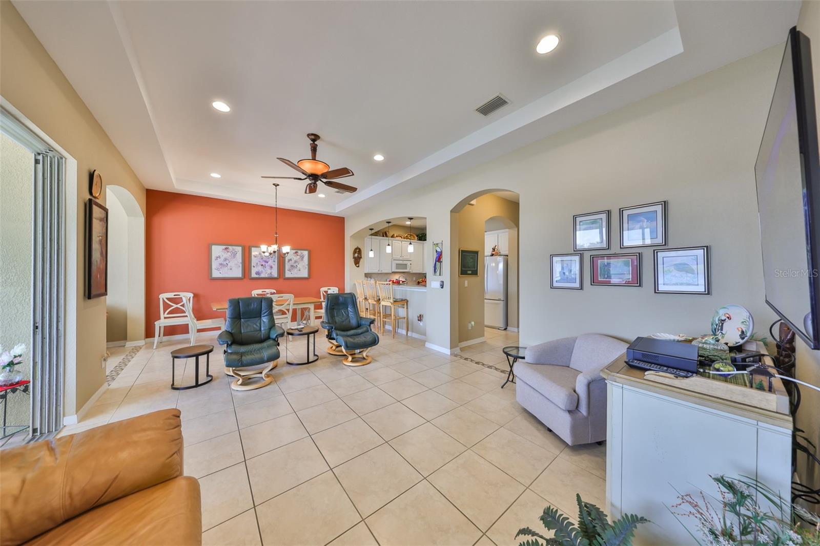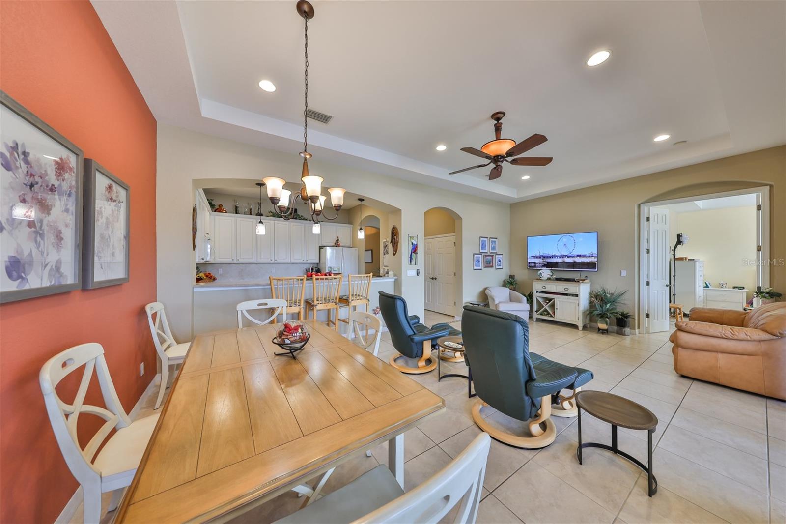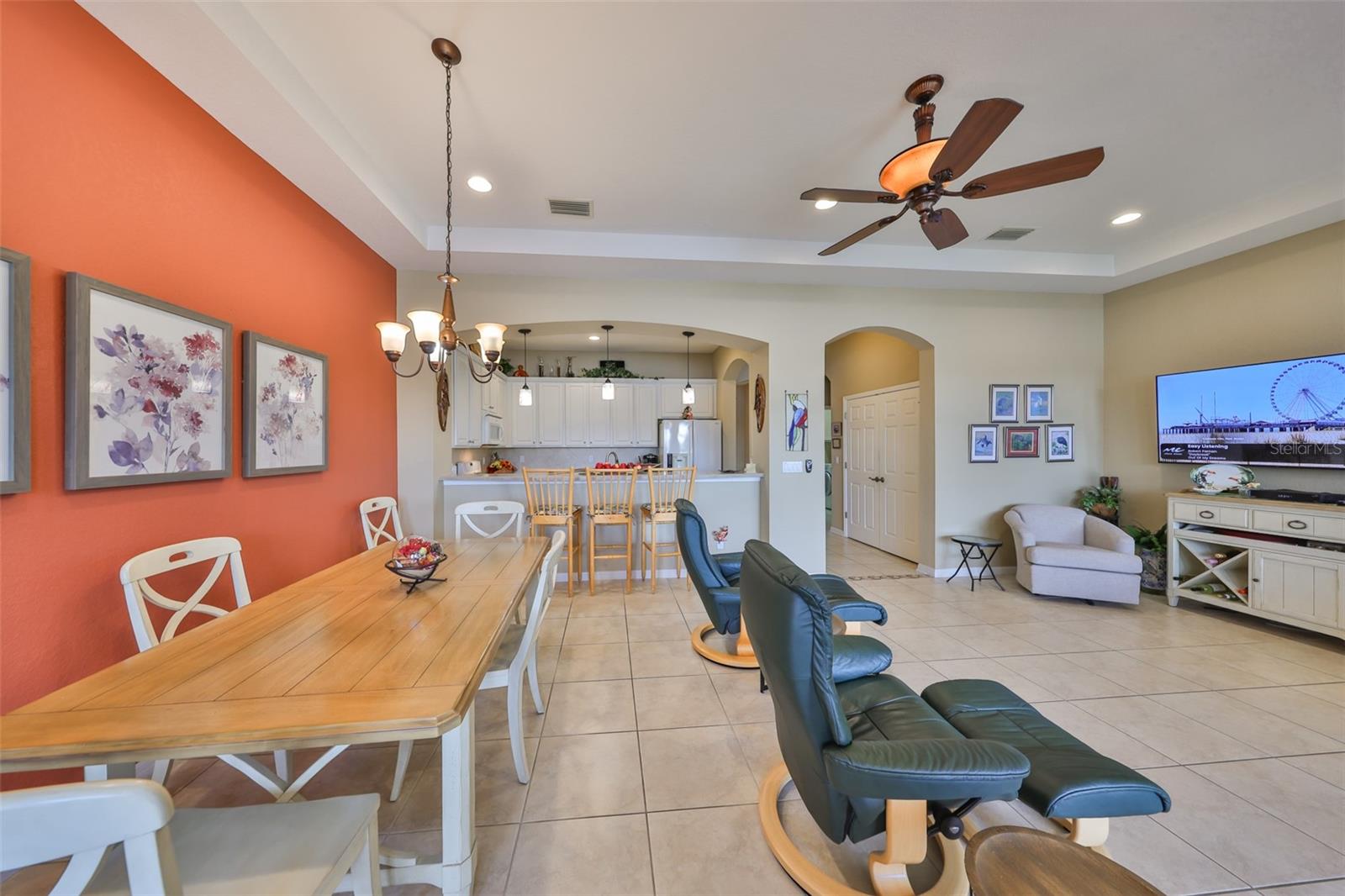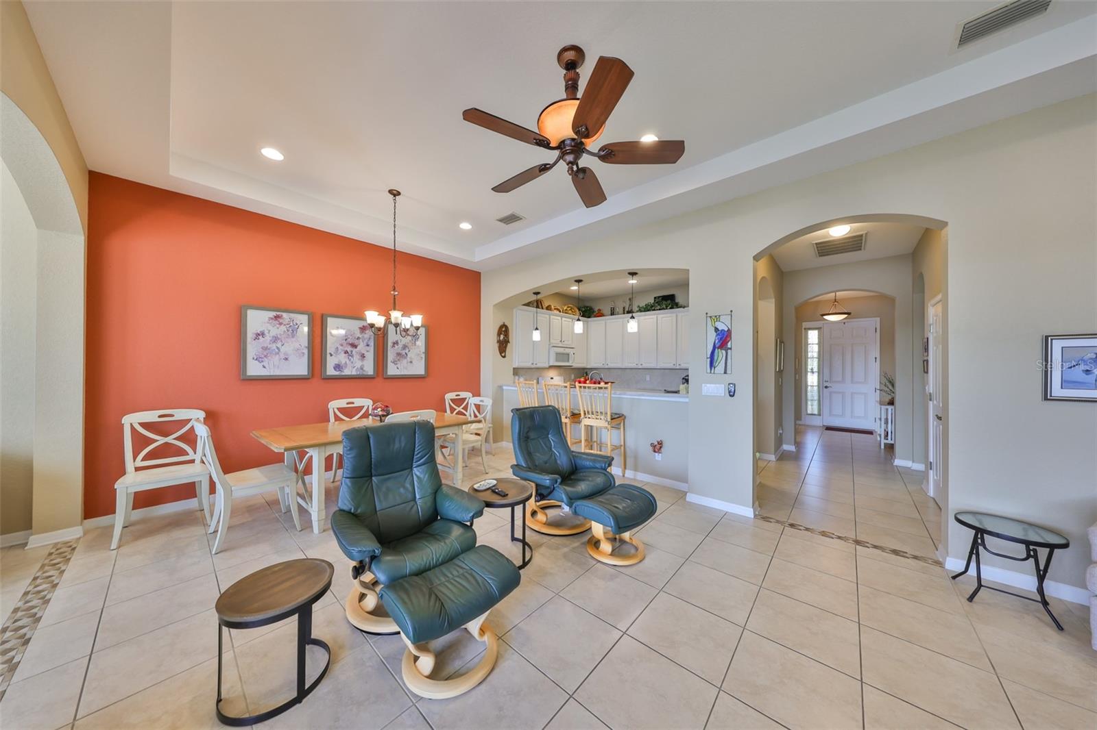 Breathtaking Waterviews from the Moment You Step Inside! Welcome to your dream home, featuring the highly sought-after Mayfair floor plan, the most popular 3-bedroom, 2-bathroom layout in this community. From the moment you walk through the front door, you'll be captivated by stunning water views that create a tranquil and picturesque setting. Enhanced Outdoor Living The expanded screened lanai is perfect for enjoying the serene backdrop, designed with a heavy-duty insulated roof that offers the option to upgrade to a fully glassed-in space. Thanks to the strategic orientation of the home, you can relax on the lanai without the inconvenience of the afternoon sun. Elegant Interior Features Step inside to find ceramic tile flooring throughout the main living areas, ensuring durability and easy maintenance, while the two guest bedrooms offer the comfort of plush carpeting. Plantation shutters and wood blind treatments adorn every window, adding a touch of sophistication to each room. The home is accented with decorative remote-controlled ceiling fans, enhancing comfort and style. Recent Updates and Thoughtful Details Freshly painted interiors provide a bright and welcoming ambiance. New water softener installed in February 2025, ensuring high-quality water throughout the home. Beautiful brick pavers enhance the appeal of the lanai and front courtyard, offering a polished and cohesive look. Resort-Style Living in Award-Winning Community Nestled in Sun City Center, voted the #1 Retirement Community for 2024 by Realtor.com and Travel + Leisure Magazine, this home offers an unparalleled lifestyle. In the vibrant Kings Point community, you'll find endless opportunities for recreation and social engagement, including: Two Clubhouses (South and North) State-of-the-art 20/20 Fitness/Spa facility Multiple pools and spas for relaxation Veteran's Theater Entertainment, bingo, arts and crafts, cards, and woodshop Fine dining, pickleball, golf, tennis, and lawn bowling 24-hour golf cart accessibility throughout the community Live the Good Life! With its ideal layout, beautiful finishes, and an unbeatable location in a top-rated retirement community, this home truly offers the best of Florida living. Welcome to your new home, where every day feels like a vacation!