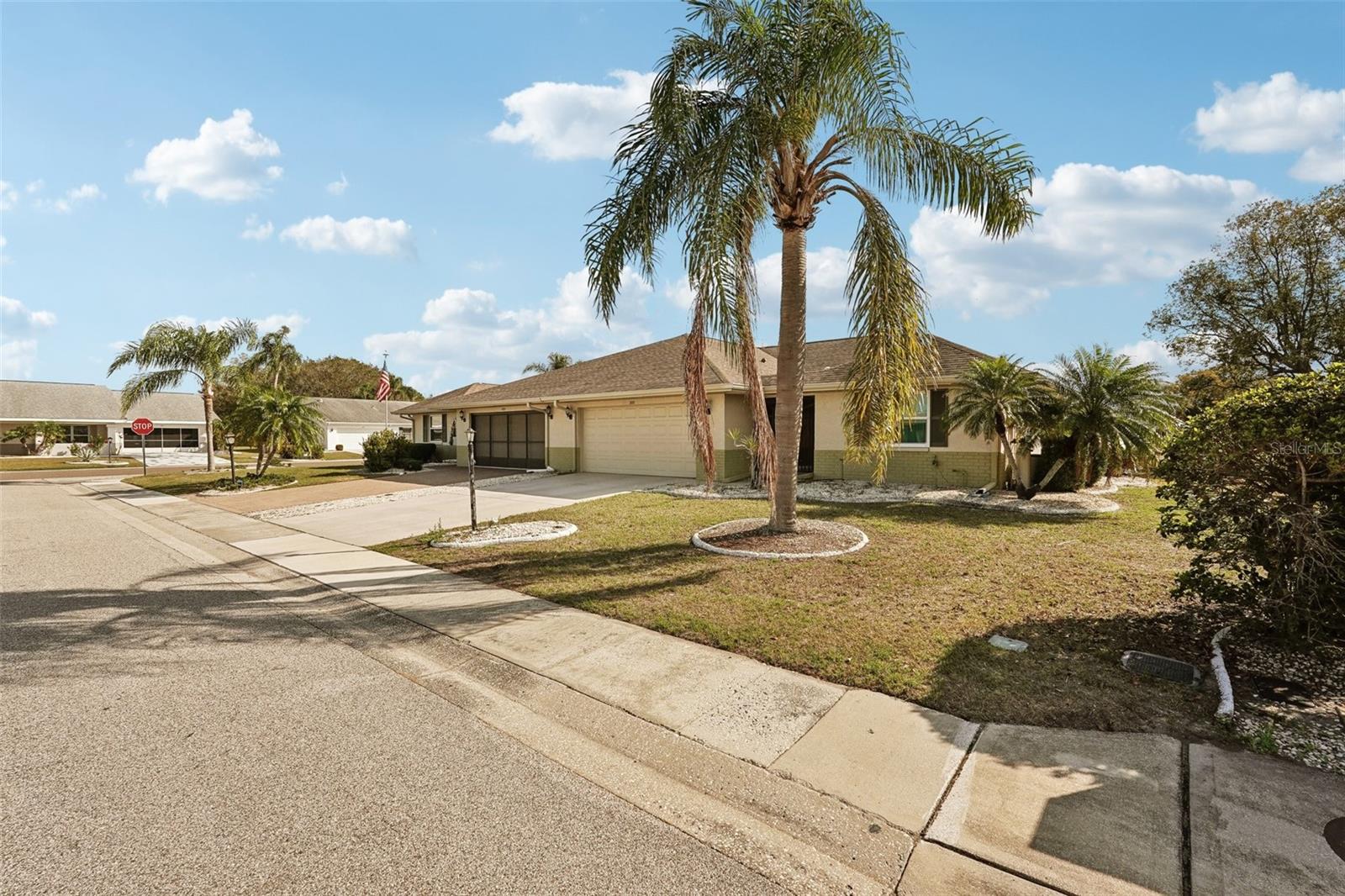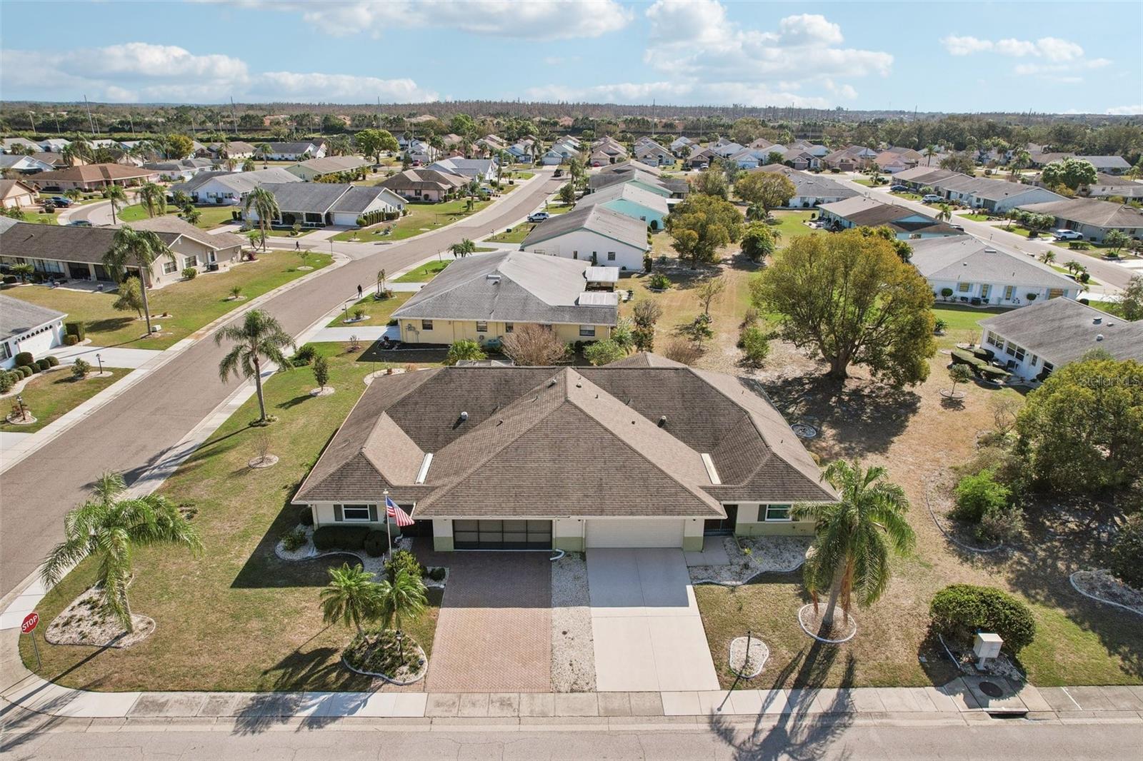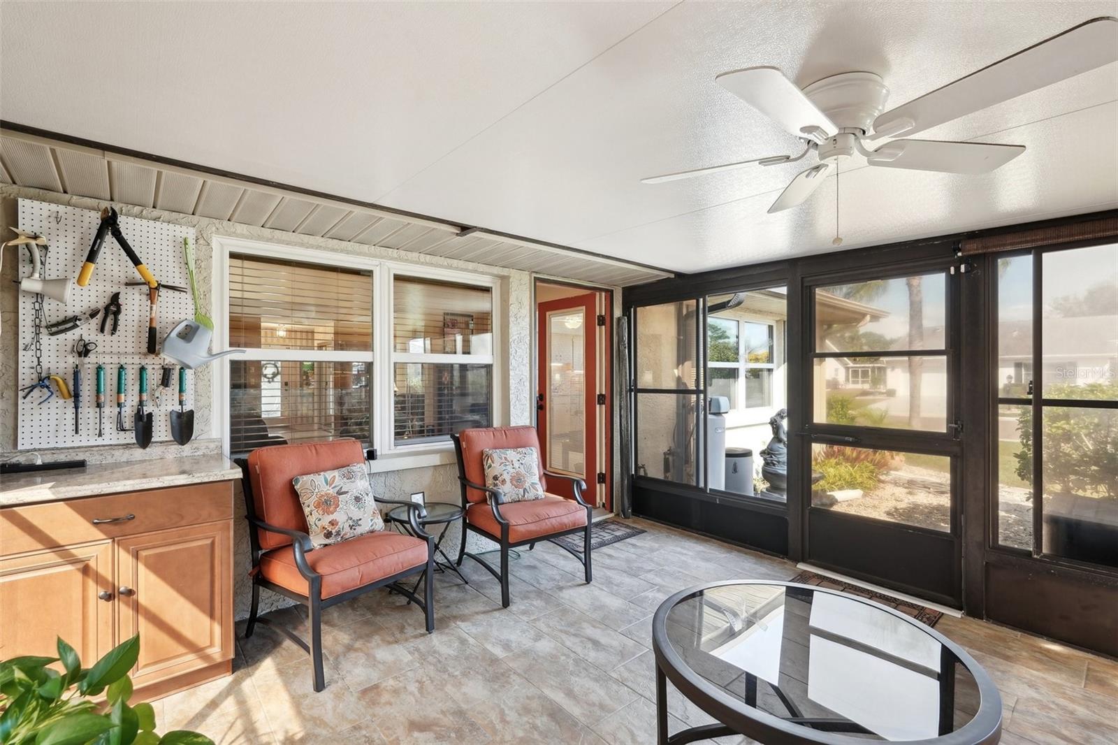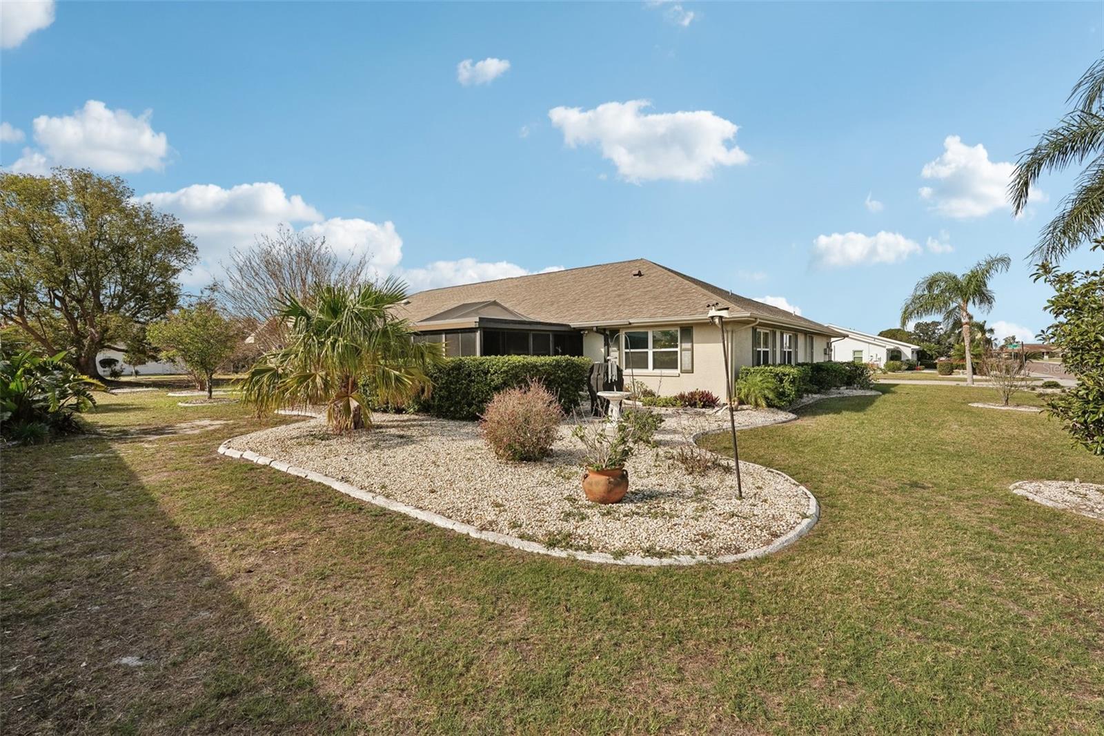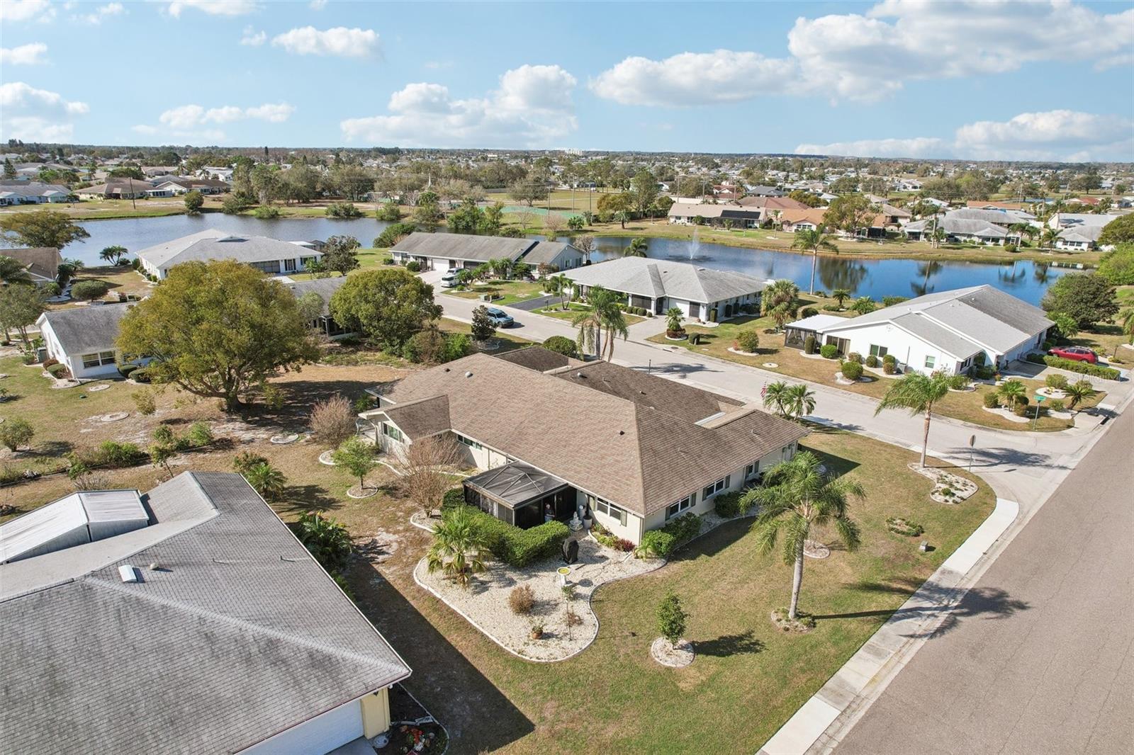 Charming 2-Bedroom, 2-Bath Home in the Heart of Sun City Center! Nestled on a spacious corner lot, this beautifully maintained home offers comfort, convenience, and versatility. Both bedrooms feature en suite bathrooms, ensuring privacy and ease. The front bedroom's special feature is a built-in, wall-to-wall queen size Murphy bed, with bookshelves, and a work station with cabinet that opens up with an additional drop down work table. The bright and airy kitchen includes a cozy dinette area, while a separate dining room provides ample space for entertaining. Recent updates include a 2024 refrigerator and range, a 2023 microwave, and a 2019 washer and dryer, new interior and exterior electrical panels in 2020, 2018 water heater and 2014 roof. Plus windows replaced in 2009, replaced polypropylene water piping in 2012 and a new HVAC system in 2023 with transferrable 10 year warranty for parts and unit replacement. A flexible bonus space can be used as an office, sitting area, or expanded living space to suit your needs. Enjoy Florida living year-round in the enclosed screened-in back porch with vinyl windows so you can enjoy the lanai on those rainy days too. Additional highlights include a 2-car garage and an inside utility room off the garage. You’ll love Sun City Center with its amazing facilities, pools, and clubs just waiting for you to enjoy. Nestled between Sarasota and Tampa, this location offers a convenient ride to airports, great shopping, dining, and professional entertainment. With easy access to award-winning, sandy beaches, this home provides the best of all worlds without the stress of big city life. Leave it all behind and enjoy your new life here in one of Florida’s most affordable 55-and-better communities! Enjoy all this has to offer in this inviting home!