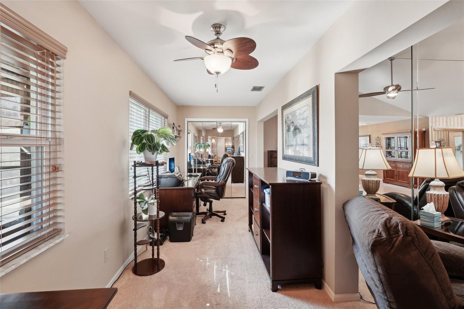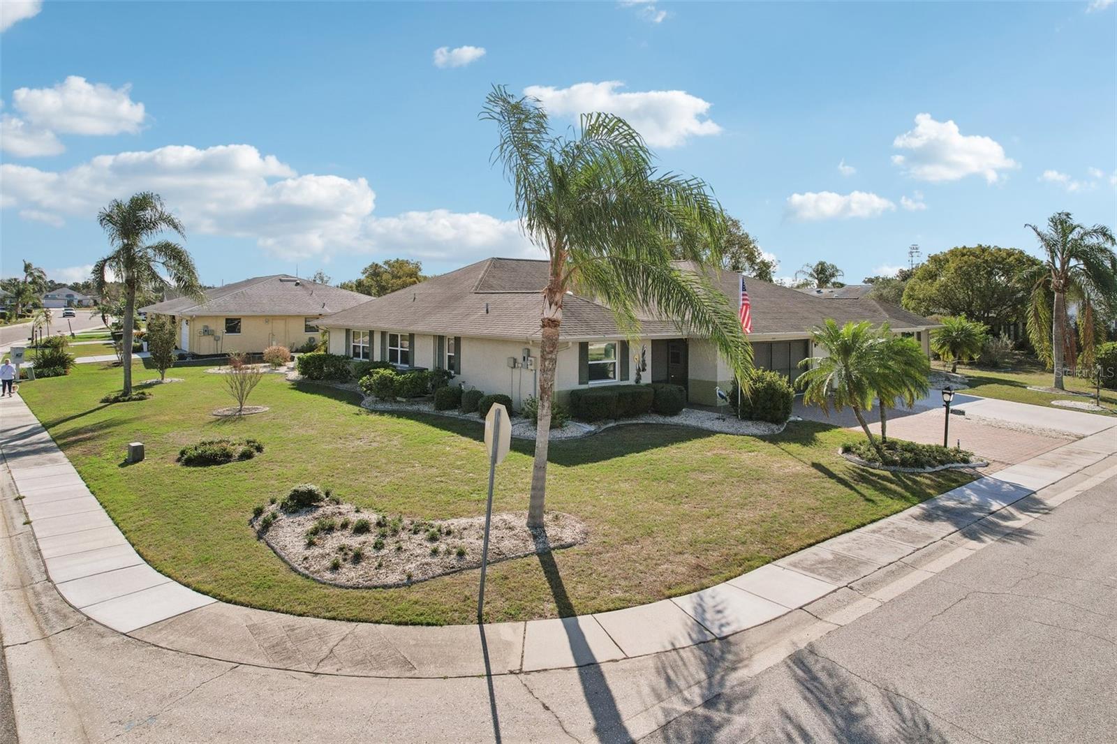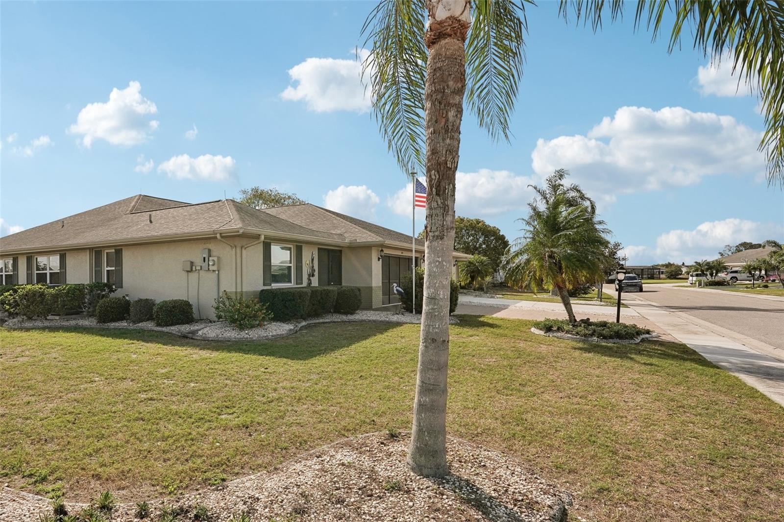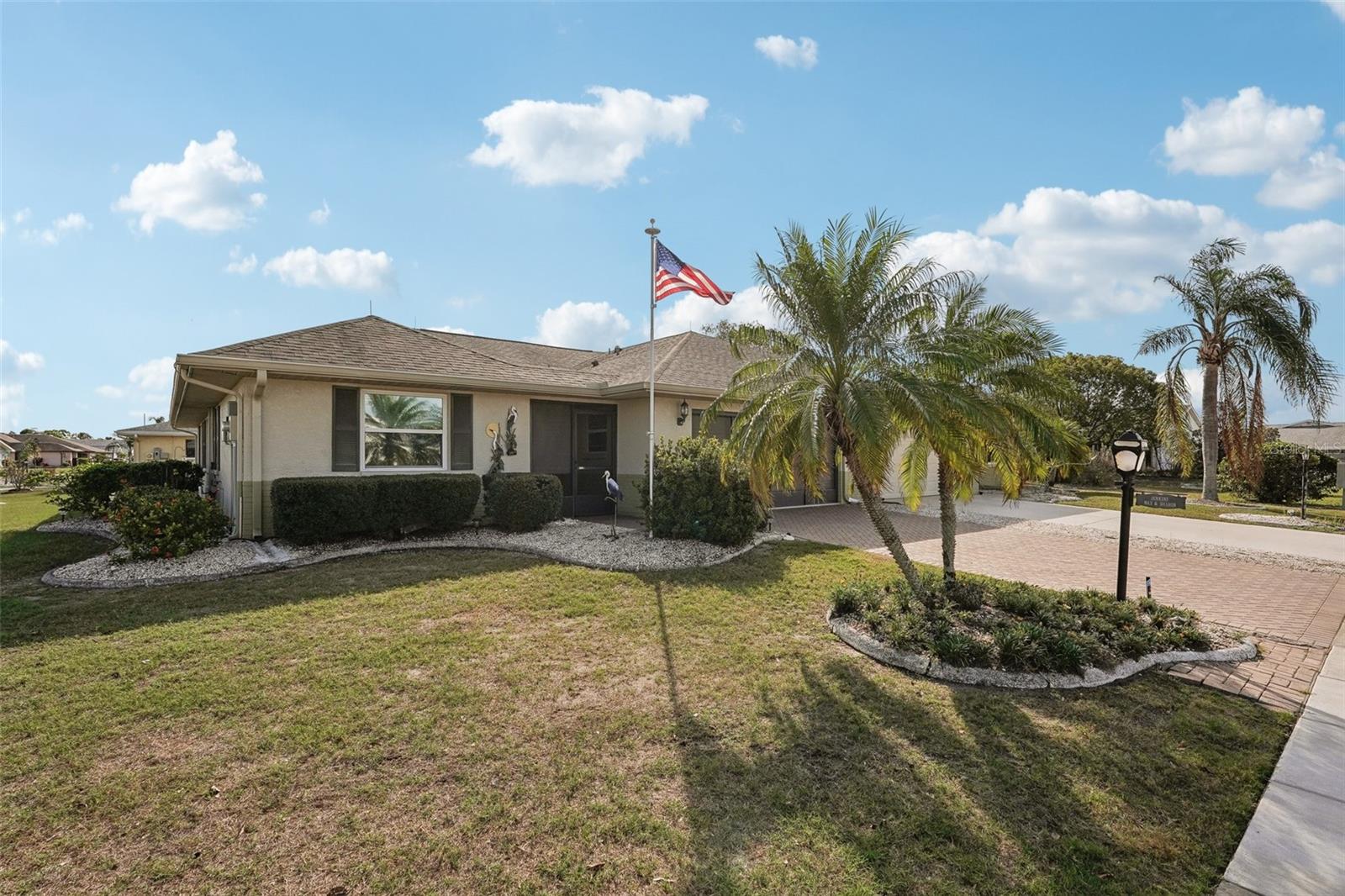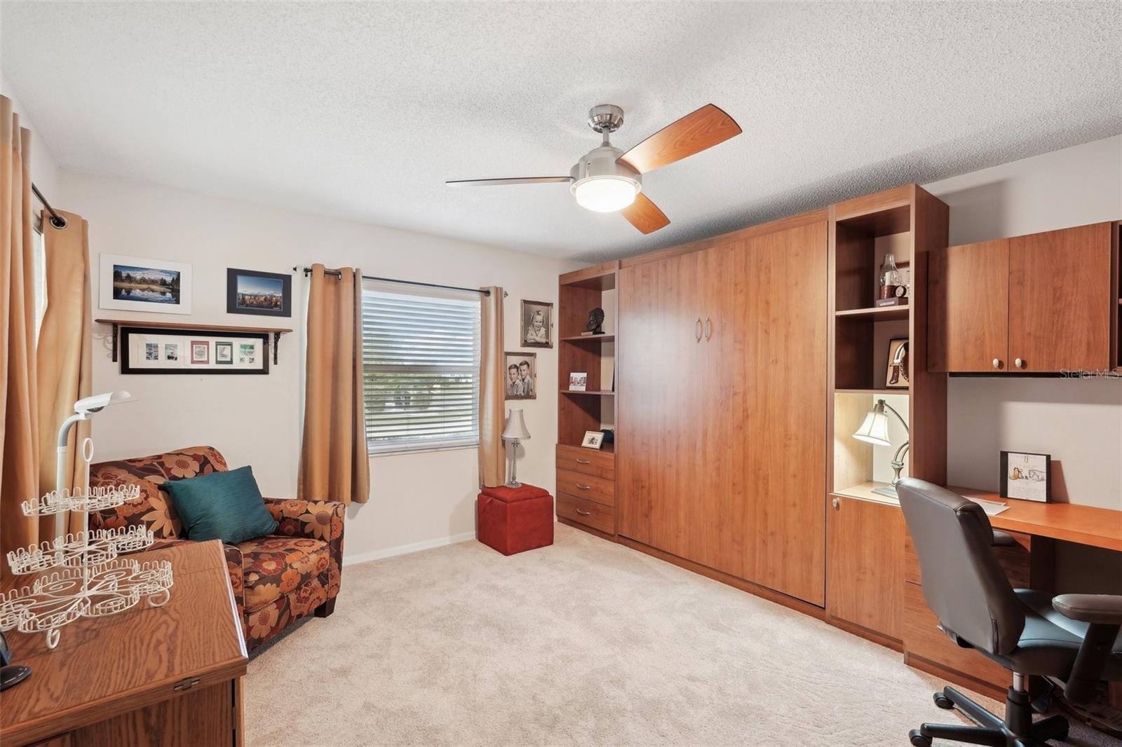 Charming 2-Bedroom, 2-Bath Home in the Heart of Sun City Center! Nestled on a spacious corner lot, this beautifully maintained home offers comfort, convenience, and versatility. Both bedrooms feature en suite bathrooms, ensuring privacy and ease. The front bedroom's special feature is a built-in, wall-to-wall queen size Murphy bed, with bookshelves, and a work station with cabinet that opens up with an additional drop down work table. The bright and airy kitchen includes a cozy dinette area, while a separate dining room provides ample space for entertaining. Recent updates include a 2024 refrigerator and range, a 2023 microwave, and a 2019 washer and dryer, new interior and exterior electrical panels in 2020, 2018 water heater and 2014 roof. Plus windows replaced in 2009, replaced polypropylene water piping in 2012 and a new HVAC system in 2023 with transferrable 10 year warranty for parts and unit replacement. A flexible bonus space can be used as an office, sitting area, or expanded living space to suit your needs. Enjoy Florida living year-round in the enclosed screened-in back porch with vinyl windows so you can enjoy the lanai on those rainy days too. Additional highlights include a 2-car garage and an inside utility room off the garage. You’ll love Sun City Center with its amazing facilities, pools, and clubs just waiting for you to enjoy. Nestled between Sarasota and Tampa, this location offers a convenient ride to airports, great shopping, dining, and professional entertainment. With easy access to award-winning, sandy beaches, this home provides the best of all worlds without the stress of big city life. Leave it all behind and enjoy your new life here in one of Florida’s most affordable 55-and-better communities! Enjoy all this has to offer in this inviting home!