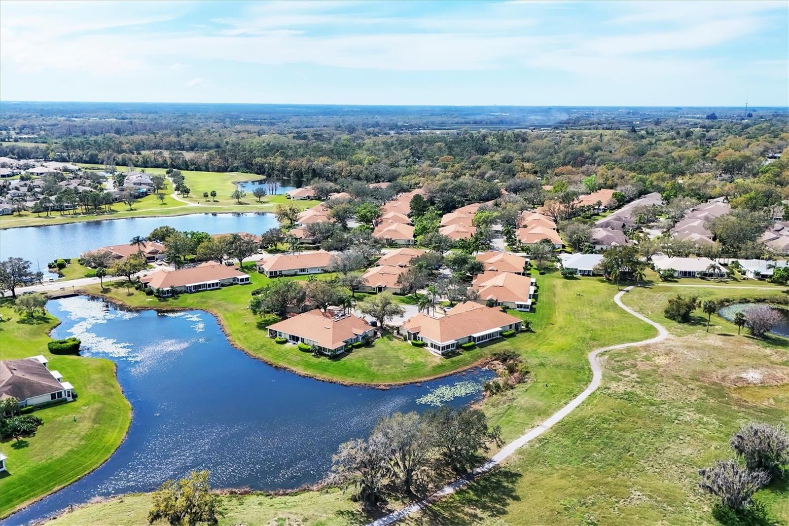 Bring a toothbrush...this one is Turn-Key ready in Kings Point Active Adult 55+ Community! This beautifully updated, FULLY FURNISHED and fitted, 2 bed/2 full bath condo has a 1 1/2 car garage AND the golf cart is included! Vaulted living room ceilings, open concept kitchen, and lovely decor give this home an airy coastal feel. Kitchen has been completely upgraded with gorgeous stainless appliances, stunning cabinetry, stone countertops, and shiny fixtures. Primary bedroom is spacious and ensuite has a lovely new shower and fixtures. A split floorplan allows your guests privacy and access to a separate full bath. Laundry is inside. A large multi-season Florida room has a peaceful pond view, ceiling fan, and windows that can keep the heat out or let the breeze in. HVAC is one year old with 9 year remaining transferrable warranty. Worry Free Monthly condo fee includes: gated security, exterior paint, exterior insurance, roofing, irrigation, water, yard maintenance, common area taxes, private road maintenance, cable tv, high speed internet, and wonderful recreational and social facilities. Special interest club annual membership fees are nominal. Check out this AMAZING community and start living the life you always dreamed!