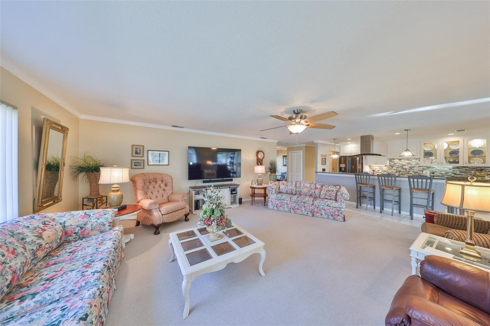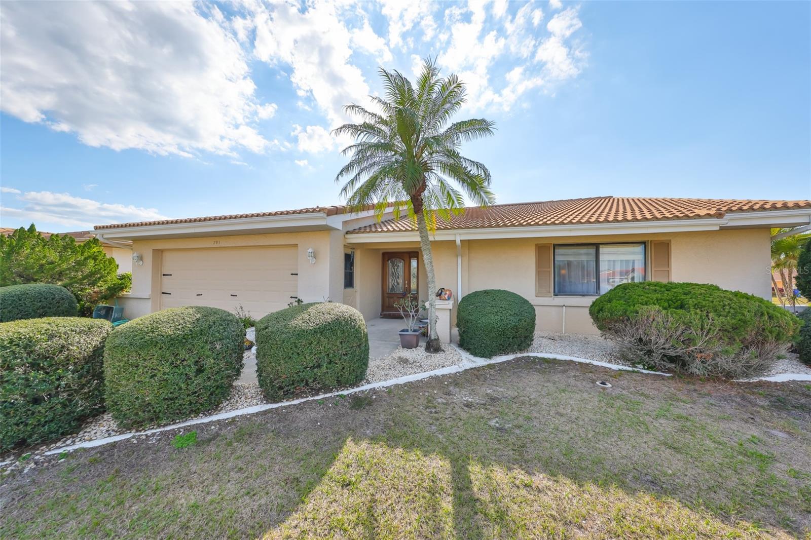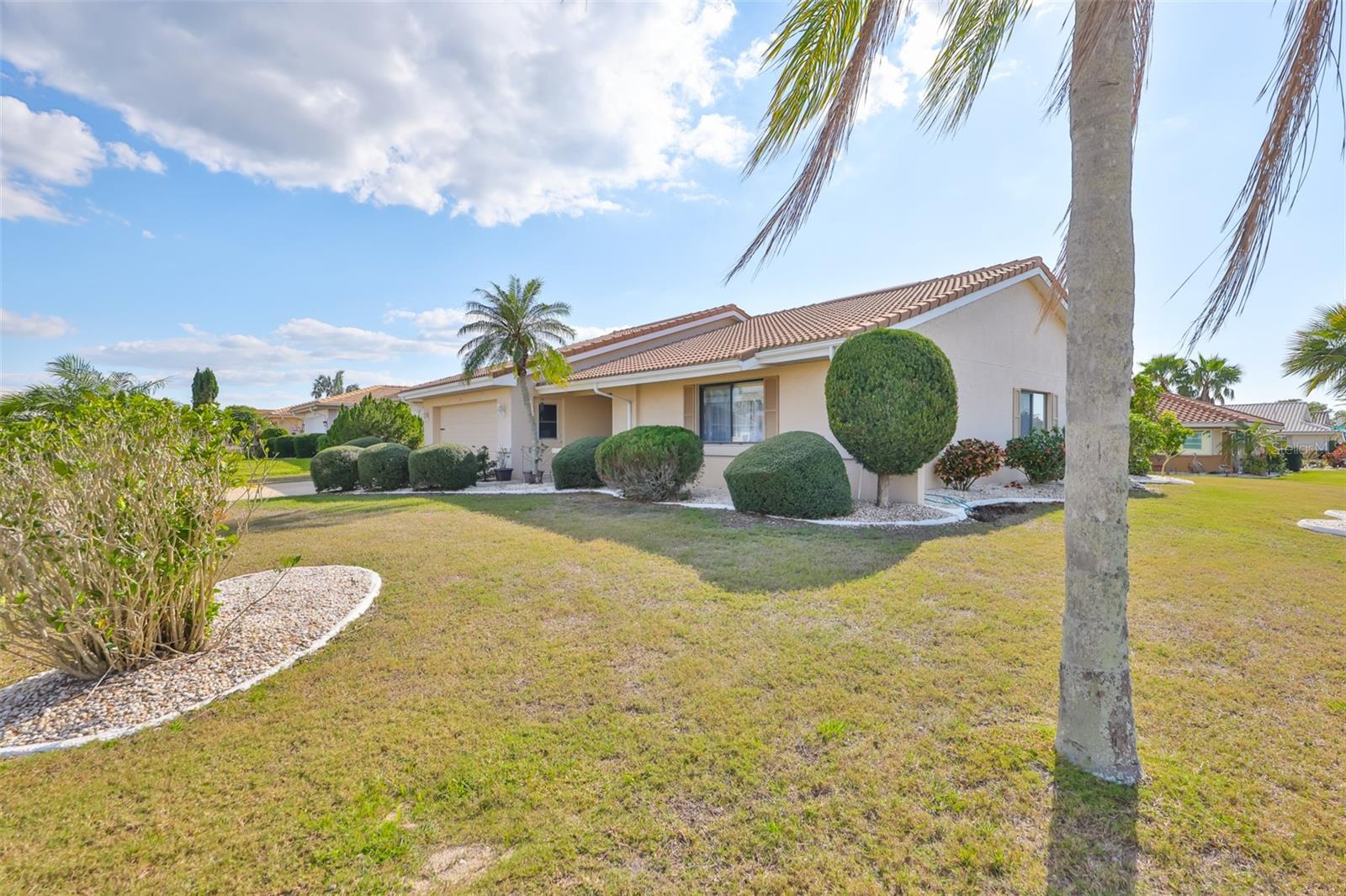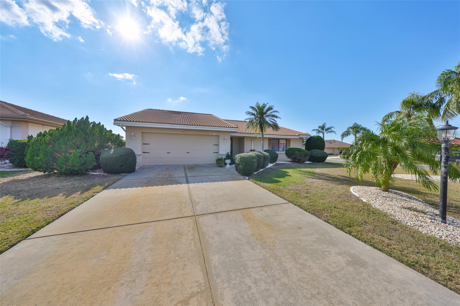 MOVE-IN READY, CORNER LOT, OPEN FLOOR CONCEPT, meticulously CLEAN and BEAUTIFUL 2 bedroom, 2 bath Sahara Model Home, situated on a CUL-DE-SAC STREET in the beautiful GREENBRIAR Neighborhood. This QUIET AND SECLUDED neighborhood is off the main road traffic, yet only 5 minutes away from the Sun City Center Plaza, Community Center, and more. Walk through the custom LEAD GLASS front door and the home opens into a SPACIOUS GREAT ROOM, which leads into the Kitchen or Family room. ELEGANT PORCELIAN TILE compliments the CONTEMPORARY kitchen which is STUNNING with all of the UPDATED FEATURES (White Cabinets (some with glass doors), GRANITE COUNTERS, NEWER Appliances and a modern HOOD EXHAUST). The is part of the Great room, so you are always part of the action. The Great room is HUGE with large windows for sunlight, CROWN MOLDING and the Berber carpet is like new. This space is perfect for entertaining friends and family. The primary bedroom has TWO WALK-IN CLOSETS and an en-suite bathroom for maximum privacy. The Guest bedroom is on the other side of the house with an adjacent second bath. The Family room is bright with wall-to-wall windows surrounding the entire room and is HVAC ventilated to ensure comfort. This home boasts of lots of closets for maximum storage capability, along with a large indoor laundry room. The Sun City Center Community offers numerous golf courses, lawn bowling, shuffleboard, Bridge, tennis, pickle-ball, horseshoes, softball, community pool (outdoor & indoor), and more. In addition to all the amenities of the Central (North) Campus including multiple activity rooms and a 6000 sq. ft. Fitness Center, you can join one or more of over 200 clubs and activities, Golf carts are a secondary means of transportation and you can easily access grocery stores, restaurants, doctor and dentist offices, banks, hardware & super center stores, various Houses of Worship and South Bay Hospital. With Tampa, St. Petersburg, Clearwater, Sarasota, and Orlando all close by, there is never a shortage of professional/college sporting events, cultural & theatrical venues, Top Ten Beaches, and plenty of Family Fun! The Magic of Disney is 90 minutes away! This home is PET AND SMOKE FREE. TILE ROOF 2015; HVAC SYSTEM 2022; ELECTRICAL PANEL 2019