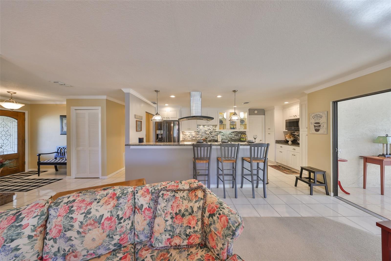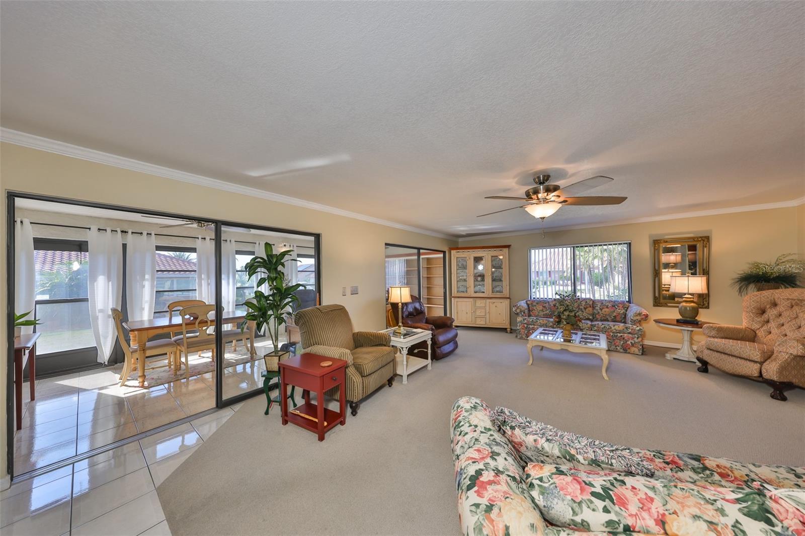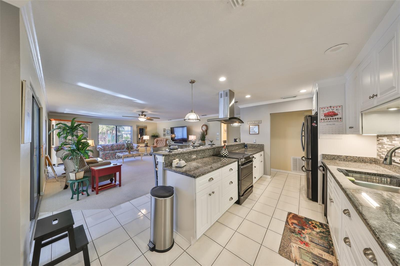 MOVE-IN READY, CORNER LOT, OPEN FLOOR CONCEPT, meticulously CLEAN and BEAUTIFUL 2 bedroom, 2 bath Sahara Model Home, situated on a CUL-DE-SAC STREET in the beautiful GREENBRIAR Neighborhood. This QUIET AND SECLUDED neighborhood is off the main road traffic, yet only 5 minutes away from the Sun City Center Plaza, Community Center, and more. Walk through the custom LEAD GLASS front door and the home opens into a SPACIOUS GREAT ROOM, which leads into the Kitchen or Family room. ELEGANT PORCELIAN TILE compliments the CONTEMPORARY kitchen which is STUNNING with all of the UPDATED FEATURES (White Cabinets (some with glass doors), GRANITE COUNTERS, NEWER Appliances and a modern HOOD EXHAUST). The is part of the Great room, so you are always part of the action. The Great room is HUGE with large windows for sunlight, CROWN MOLDING and the Berber carpet is like new. This space is perfect for entertaining friends and family. The primary bedroom has TWO WALK-IN CLOSETS and an en-suite bathroom for maximum privacy. The Guest bedroom is on the other side of the house with an adjacent second bath. The Family room is bright with wall-to-wall windows surrounding the entire room and is HVAC ventilated to ensure comfort. This home boasts of lots of closets for maximum storage capability, along with a large indoor laundry room. The Sun City Center Community offers numerous golf courses, lawn bowling, shuffleboard, Bridge, tennis, pickle-ball, horseshoes, softball, community pool (outdoor & indoor), and more. In addition to all the amenities of the Central (North) Campus including multiple activity rooms and a 6000 sq. ft. Fitness Center, you can join one or more of over 200 clubs and activities, Golf carts are a secondary means of transportation and you can easily access grocery stores, restaurants, doctor and dentist offices, banks, hardware & super center stores, various Houses of Worship and South Bay Hospital. With Tampa, St. Petersburg, Clearwater, Sarasota, and Orlando all close by, there is never a shortage of professional/college sporting events, cultural & theatrical venues, Top Ten Beaches, and plenty of Family Fun! The Magic of Disney is 90 minutes away! This home is PET AND SMOKE FREE. TILE ROOF 2015; HVAC SYSTEM 2022; ELECTRICAL PANEL 2019