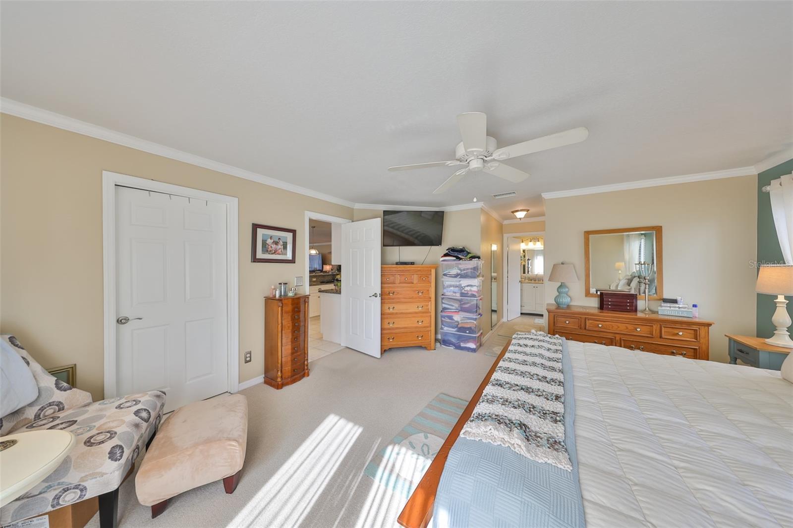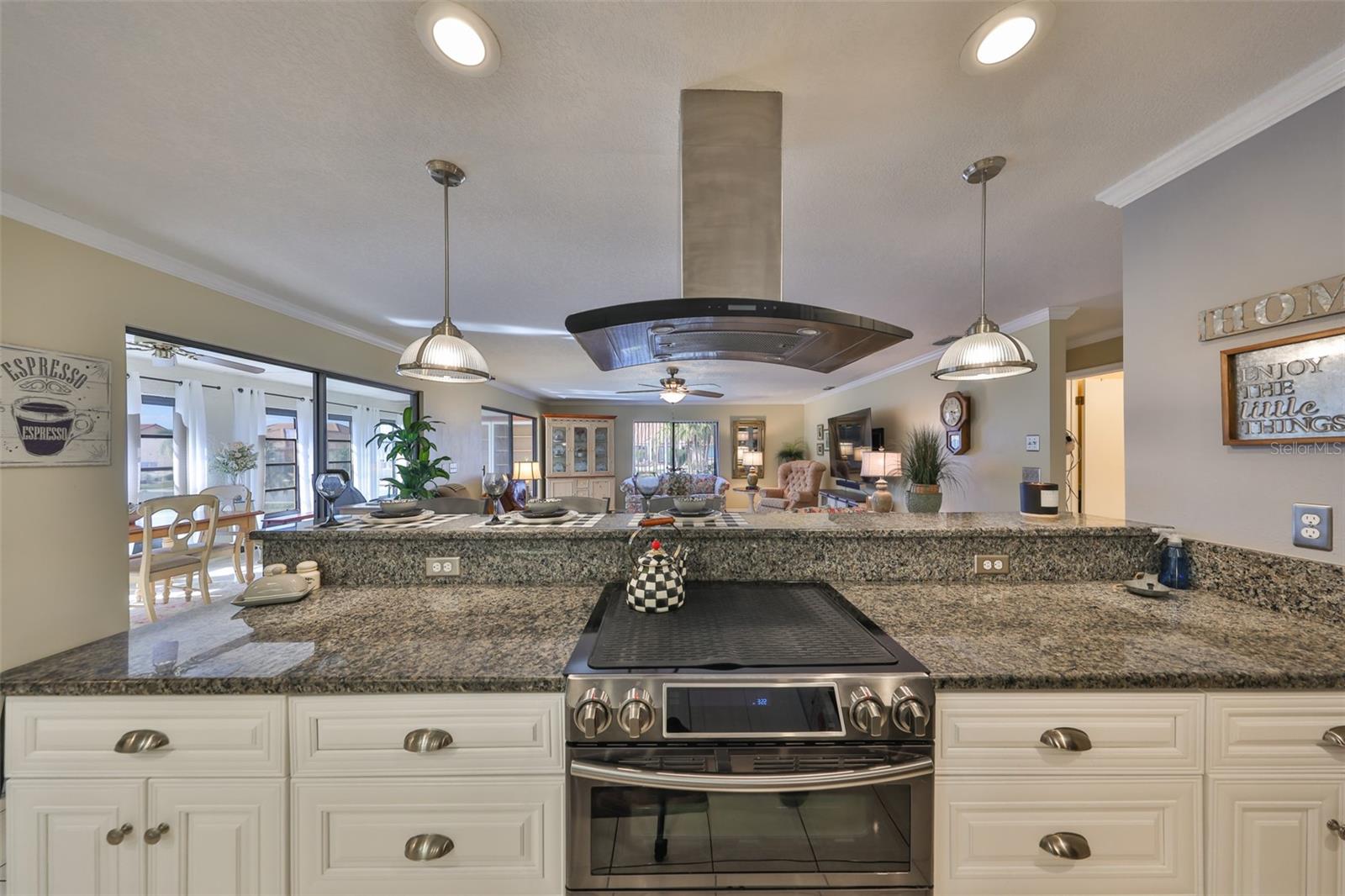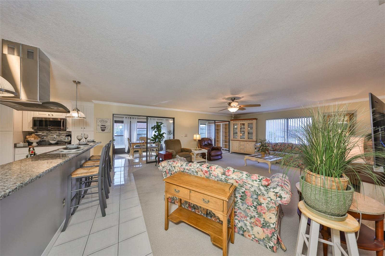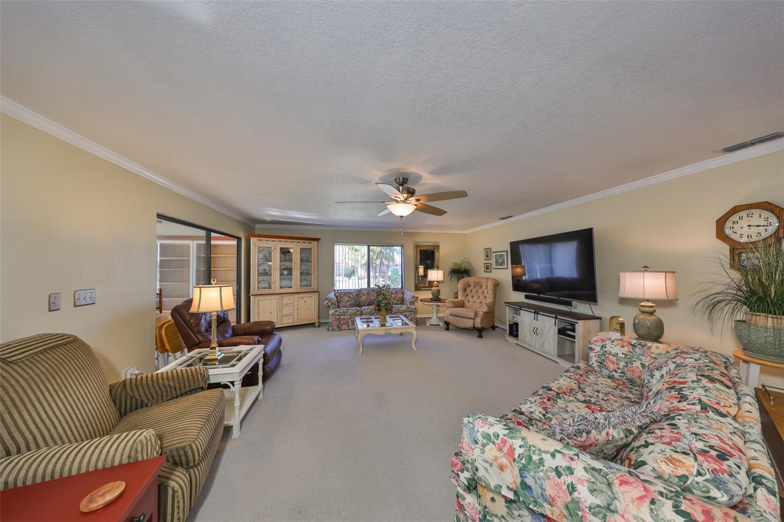 MOVE-IN READY, CORNER LOT, OPEN FLOOR CONCEPT, meticulously CLEAN and BEAUTIFUL 2 bedroom, 2 bath Sahara Model Home, situated on a CUL-DE-SAC STREET in the beautiful GREENBRIAR Neighborhood. This QUIET AND SECLUDED neighborhood is off the main road traffic, yet only 5 minutes away from the Sun City Center Plaza, Community Center, and more. Walk through the custom LEAD GLASS front door and the home opens into a SPACIOUS GREAT ROOM, which leads into the Kitchen or Family room. ELEGANT PORCELIAN TILE compliments the CONTEMPORARY kitchen which is STUNNING with all of the UPDATED FEATURES (White Cabinets (some with glass doors), GRANITE COUNTERS, NEWER Appliances and a modern HOOD EXHAUST). The is part of the Great room, so you are always part of the action. The Great room is HUGE with large windows for sunlight, CROWN MOLDING and the Berber carpet is like new. This space is perfect for entertaining friends and family. The primary bedroom has TWO WALK-IN CLOSETS and an en-suite bathroom for maximum privacy. The Guest bedroom is on the other side of the house with an adjacent second bath. The Family room is bright with wall-to-wall windows surrounding the entire room and is HVAC ventilated to ensure comfort. This home boasts of lots of closets for maximum storage capability, along with a large indoor laundry room. The Sun City Center Community offers numerous golf courses, lawn bowling, shuffleboard, Bridge, tennis, pickle-ball, horseshoes, softball, community pool (outdoor & indoor), and more. In addition to all the amenities of the Central (North) Campus including multiple activity rooms and a 6000 sq. ft. Fitness Center, you can join one or more of over 200 clubs and activities, Golf carts are a secondary means of transportation and you can easily access grocery stores, restaurants, doctor and dentist offices, banks, hardware & super center stores, various Houses of Worship and South Bay Hospital. With Tampa, St. Petersburg, Clearwater, Sarasota, and Orlando all close by, there is never a shortage of professional/college sporting events, cultural & theatrical venues, Top Ten Beaches, and plenty of Family Fun! The Magic of Disney is 90 minutes away! This home is PET AND SMOKE FREE. TILE ROOF 2015; HVAC SYSTEM 2022; ELECTRICAL PANEL 2019