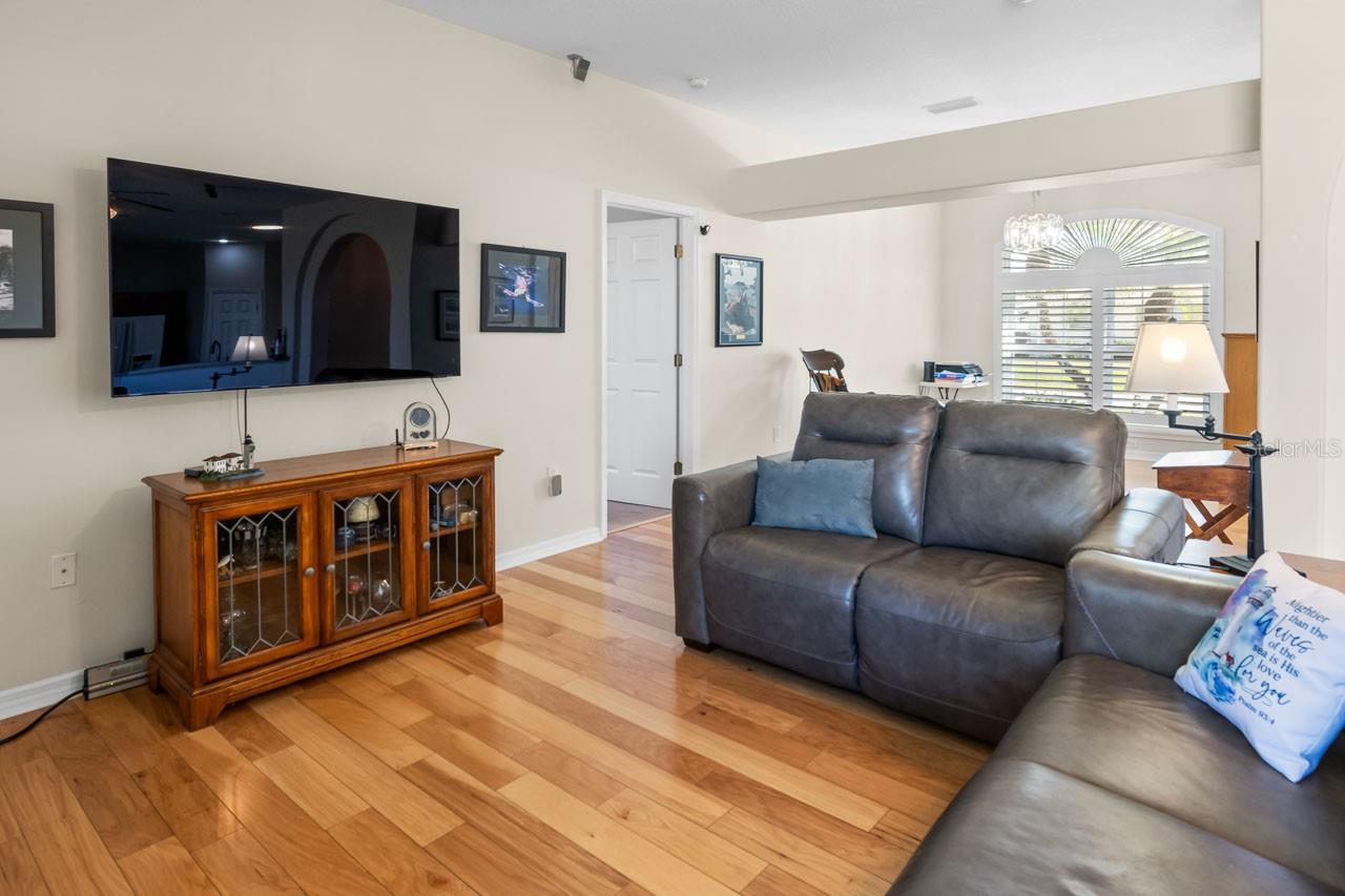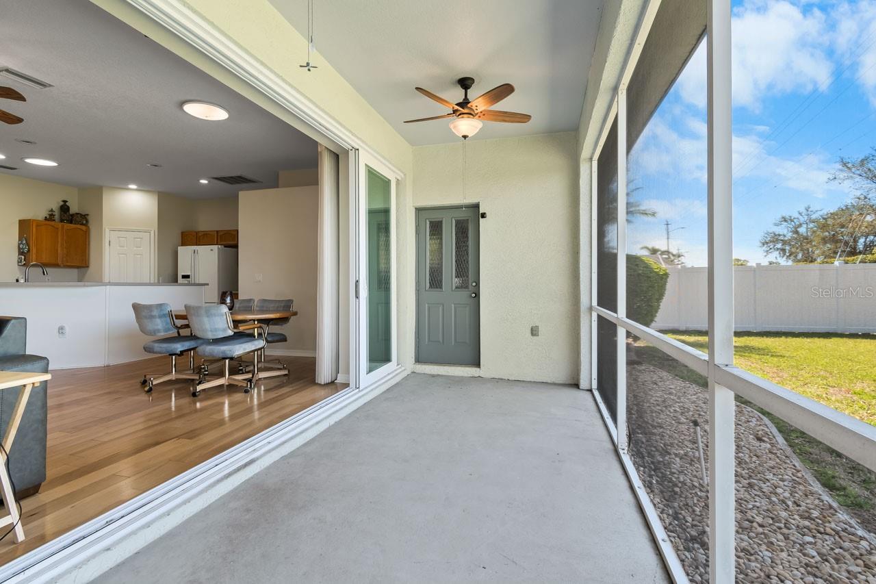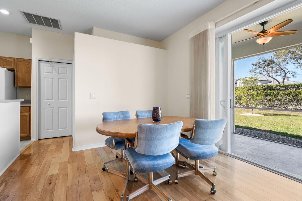 Welcome to this charming three-bedroom, two-bathroom, two-car attached garage home located in a golf-friendly neighborhood! NEW WATER HEATER (2024), NEW WATER SOFTENER (2024), NO CDD, and LOW HOA! This well-maintained property offers a comfortable and functional SPLIT-BEDROOM layout, making it perfect for both relaxation and entertaining. Step inside to discover beautiful WOOD FLOORING throughout the main living areas, while the wet areas are finished with easy-to-maintain tile. The spacious kitchen features all major appliances, a convenient BREAKFAST BAR, and a pantry for added storage. The adjacent dinette area off the kitchen provides a cozy spot for casual dining, while the separate dining room offers the perfect space for formal meals. Relax in the inviting living room or unwind on the COVERED & SCREENED LANAI, which boasts wall-to-wall sliders and dual ceiling fans to keep the air flowing on those warm Florida evenings. The home also comes equipped with a laundry room featuring a washer, dryer, and a DEEP SINK. The primary bedroom is a true retreat, offering DUAL WALK-IN CLOSETS and an EN-SUITE BATHROOM with a DUAL SINK VANITY, a SHOWER STALL, and a SEPARATE SOAKING TUB for ultimate relaxation. Both secondary bedrooms feature ADDITIONAL STORAGE above the closets! Wind resistant windows sliding glass doors (150 mph winds) bring additional value to this great property! The Villages at Cypress Creek is a vibrant and diverse, planned community embraced by a beautiful Championship Golf Course, the Golf Club at Cypress Creek, and a 640-acre Nature Preserve. Don’t miss your chance to make this house your new home!