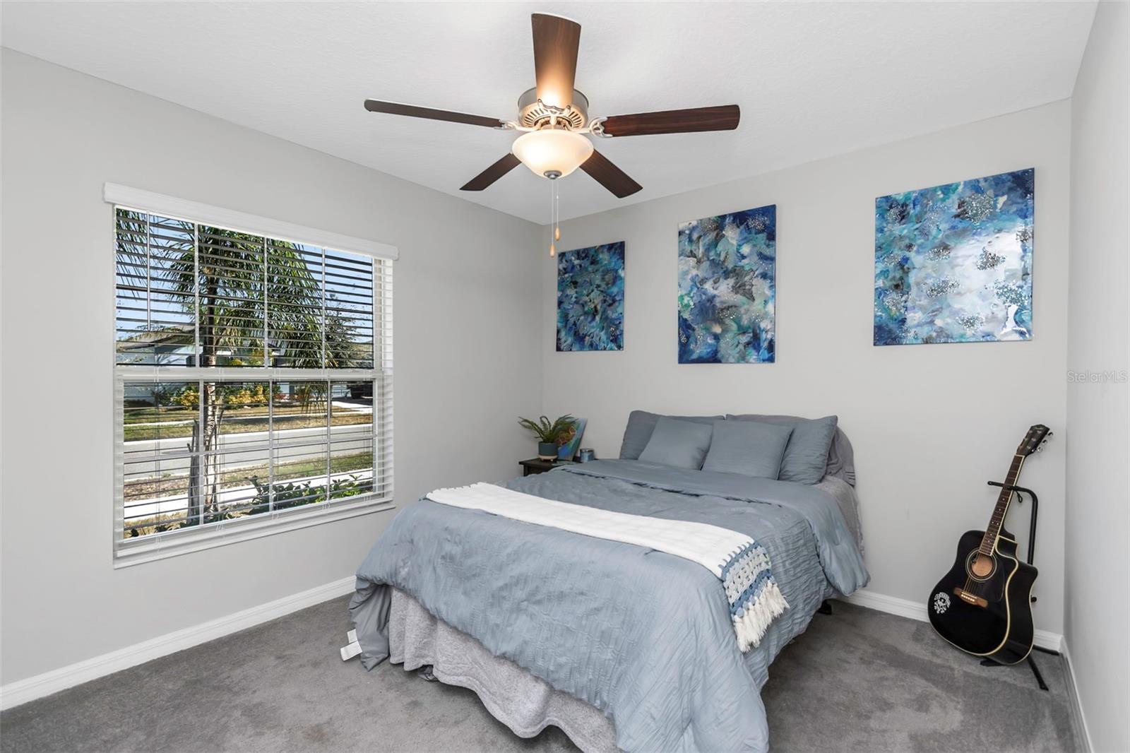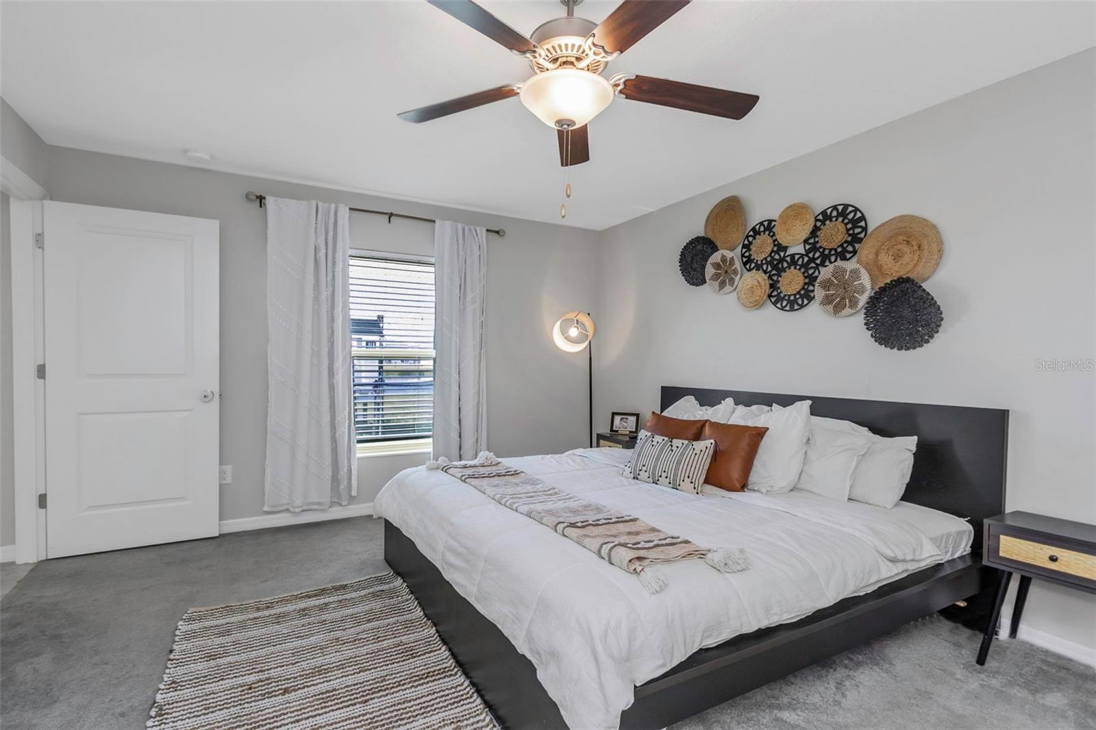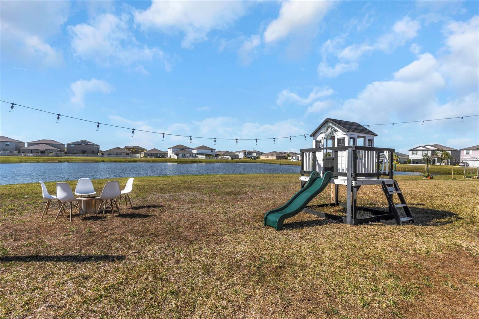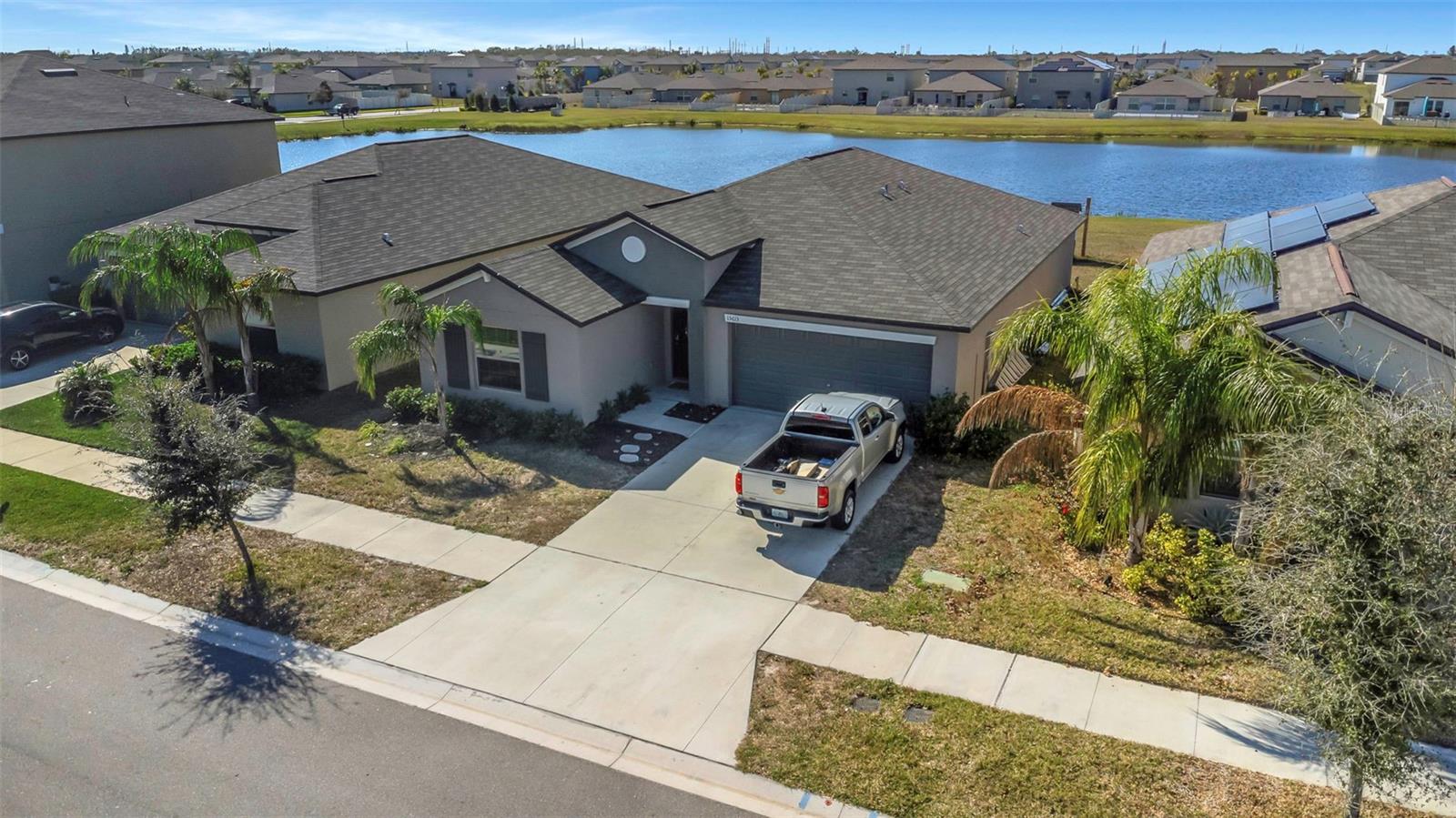Reduced Price on this Stunning 4-Bedroom Home with Pond Views in Cypress Mill Built in 2021, this beautiful 4-bedroom, 2-bathroom home features a thoughtfully designed split-bedroom layout and an open floor plan, perfect for modern living. The spacious kitchen seamlessly connects to the expansive dining and living areas, comfortably accommodating an oversized sectional sofa. A large pantry closet provides ample storage for all your cooking needs. Sliding glass doors off the dining area lead to a generously sized backyard overlooking a picturesque pond—ideal for outdoor gatherings and relaxation. The main living areas feature ceramic tile flooring, while carpeting adds comfort to the bedrooms. The primary suite offers serene backyard and pond views, an extra-large walk-in closet, and an en-suite bathroom complete with double sinks and a spacious step-in shower. Down the entry hallway, you'll find three additional bedrooms and a full bathroom. One of the bedrooms showcases a beautifully designed custom accent wall. Opposite the hallway, the laundry room provides convenient access to the attached two-car garage. This home is located in a no-flood zone and is equipped with hurricane shutters for all windows, while the garage door is also hurricane-rated for added protection. Cypress Mill offers Resort-Style Living with many amenities, including a clubhouse, fitness center, resort-style swimming pool with cabanas, splash pad, dog park, playgrounds, basketball courts, Tennis courts, pickleball courts, and scenic walking trails—perfect for enjoying Florida’s beautiful weather. The community also provides convenient access to major highways, shopping centers, schools, golf courses, beaches, airports, and more Don’t miss out—schedule your showing today!