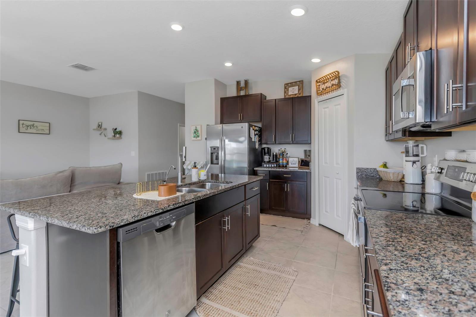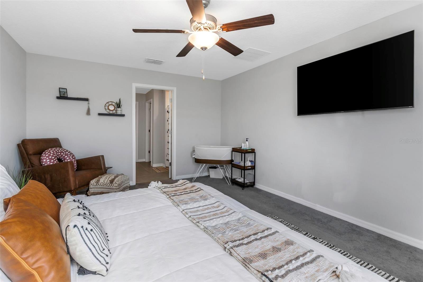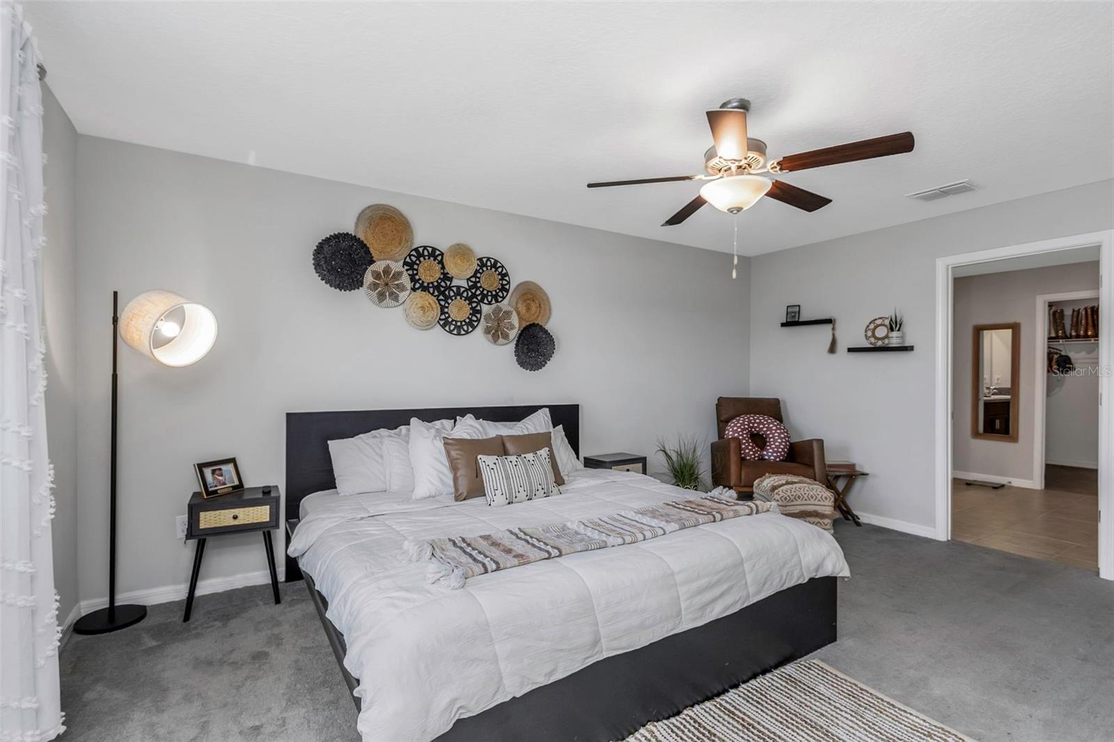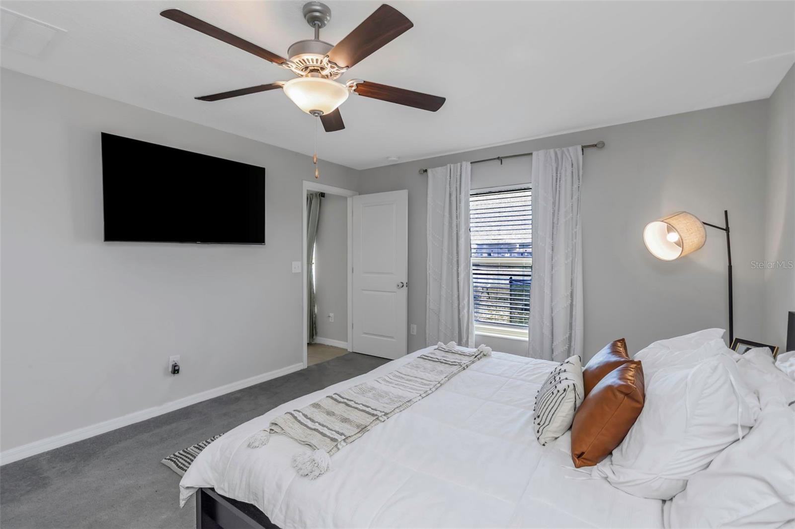 Reduced Price on this Stunning 4-Bedroom Home with Pond Views in Cypress Mill Built in 2021, this beautiful 4-bedroom, 2-bathroom home features a thoughtfully designed split-bedroom layout and an open floor plan, perfect for modern living. The spacious kitchen seamlessly connects to the expansive dining and living areas, comfortably accommodating an oversized sectional sofa. A large pantry closet provides ample storage for all your cooking needs. Sliding glass doors off the dining area lead to a generously sized backyard overlooking a picturesque pond—ideal for outdoor gatherings and relaxation. The main living areas feature ceramic tile flooring, while carpeting adds comfort to the bedrooms. The primary suite offers serene backyard and pond views, an extra-large walk-in closet, and an en-suite bathroom complete with double sinks and a spacious step-in shower. Down the entry hallway, you'll find three additional bedrooms and a full bathroom. One of the bedrooms showcases a beautifully designed custom accent wall. Opposite the hallway, the laundry room provides convenient access to the attached two-car garage. This home is located in a no-flood zone and is equipped with hurricane shutters for all windows, while the garage door is also hurricane-rated for added protection. Cypress Mill offers Resort-Style Living with many amenities, including a clubhouse, fitness center, resort-style swimming pool with cabanas, splash pad, dog park, playgrounds, basketball courts, Tennis courts, pickleball courts, and scenic walking trails—perfect for enjoying Florida’s beautiful weather. The community also provides convenient access to major highways, shopping centers, schools, golf courses, beaches, airports, and more Don’t miss out—schedule your showing today!