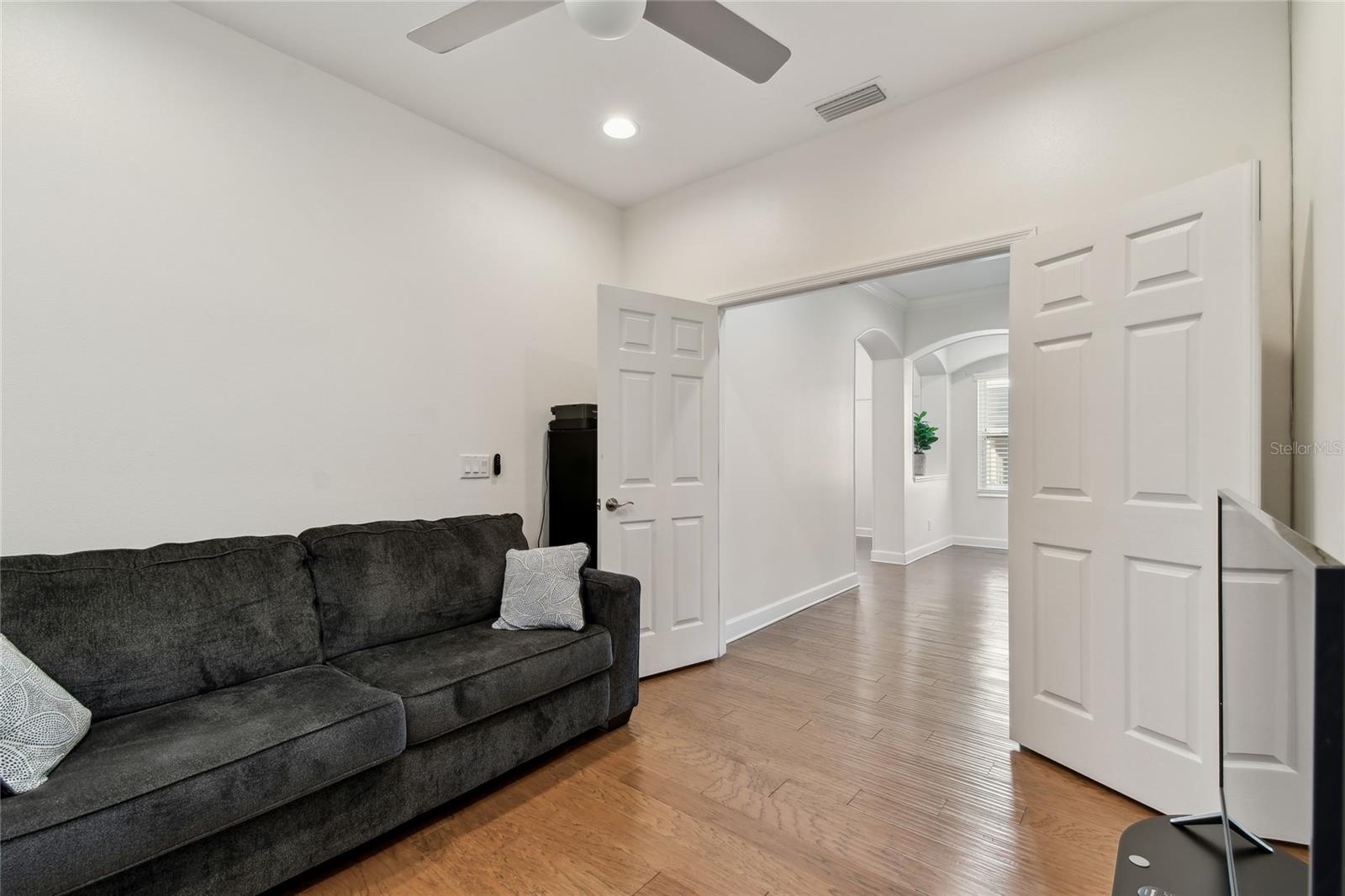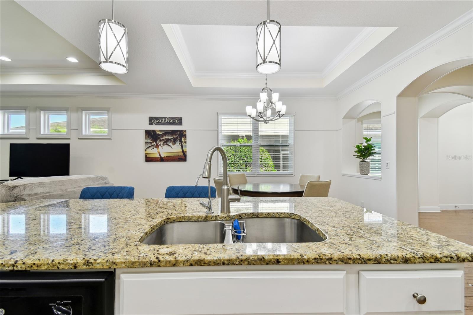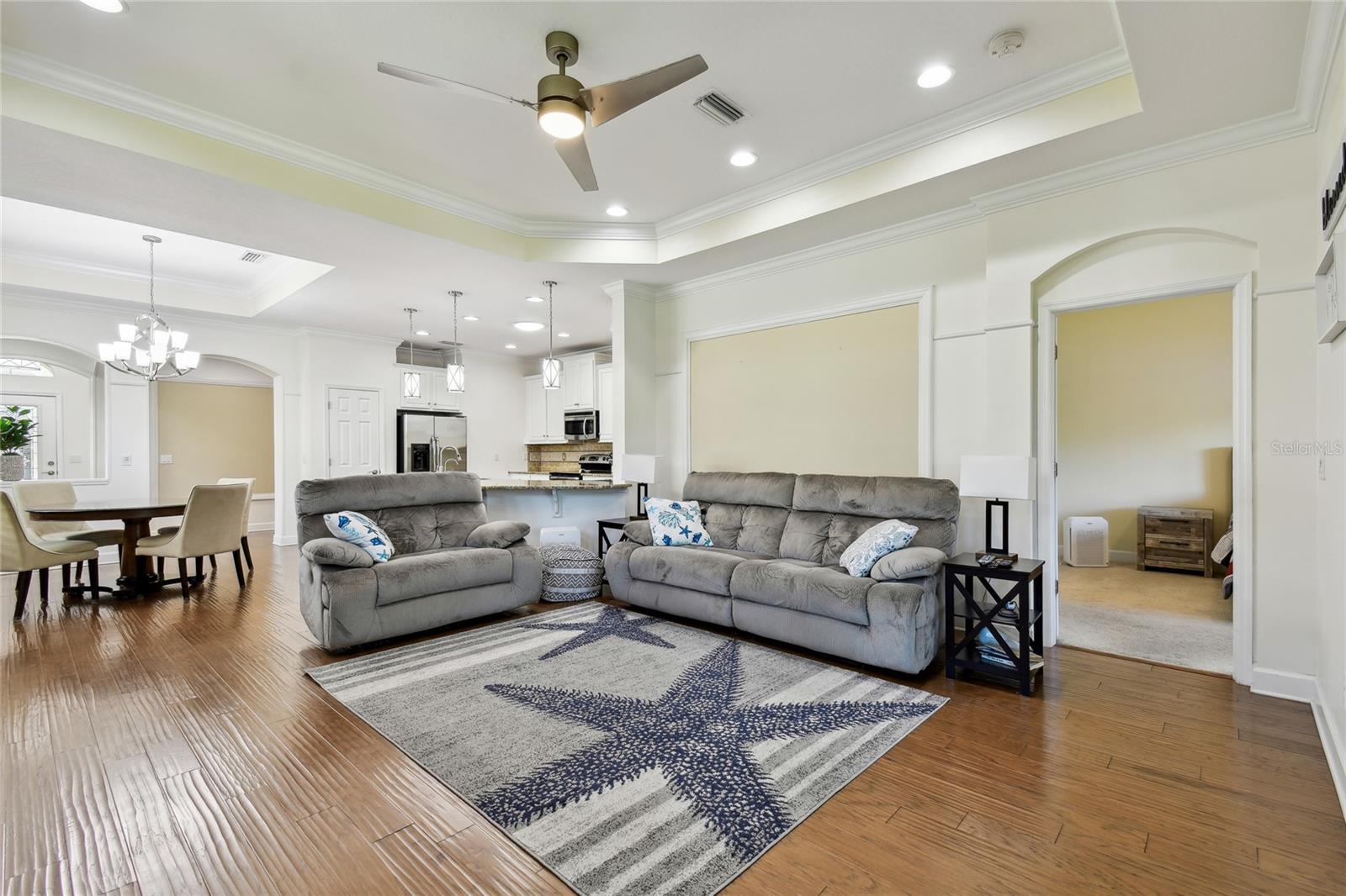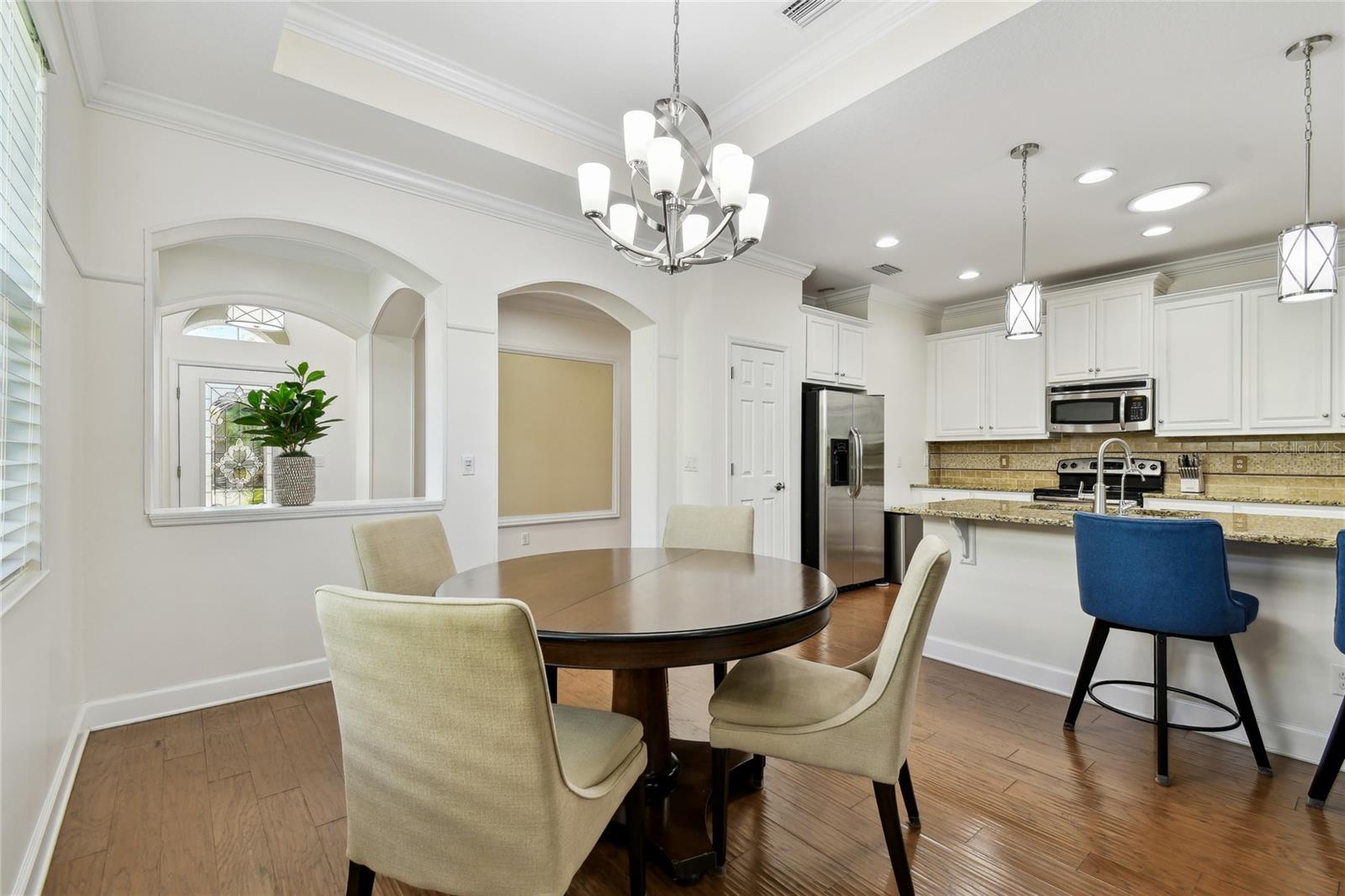 Price reduced! You'll see the beauty of this home as you enter through the screened entry and beautiful leaded glass door into this bright and cheery home. The open floor plan allows wonderful space for you and your guests. The kitchen has granite counters, 42 inch cabinets, a solar light and pretty Pendant lights. Stainless steel appliances and cabinets with sliding shelfs that compliment the kitchen Next to the kitchen is the dining area. The living room is spacious and from it you walk directly into the Florida room. There are Engineered Hardwood Floors through the living area and Crown Molding throughout! The Master Bedroom has a nice view of the pond and has en-suite bathroom The bathroom has a double vanity, private water closet, a large walk-in tiled shower and a walk-in closet! The second bedroom is on the front of the condo which allows privacy for guests and the owner. The Den is just right to spend quiet time relaxing and also can serve as extra bedroom for guests. The laundry room has a utility sink, many cabinets and a washer dryer. The Florida Room has a majestic view overlooking a pond and a ceramic tile floor. Kings Point community has many actives including arts and crafts, various clubs to consider as well as Pickle Ball , Golf, Lawn Bowling, Shuffle Board and SO much more! Don't wait to see this beautiful condo it won't last long!!