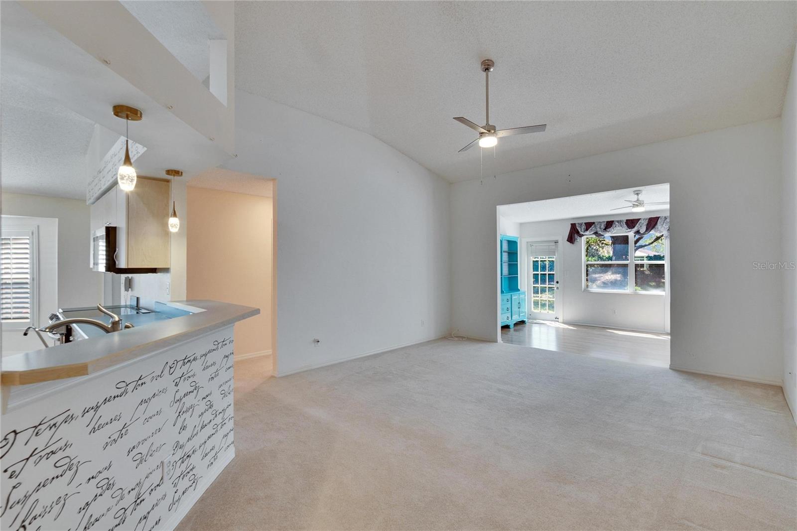 BRAND NEW ROOF!!!!!!!!! PRICE REDUCED......Welcome home to one if the top rated retirement communities in the country, where everyone and their golf carts are welcome….. Don't miss out on your chance for this lovely home located in the GATED community of Kings Point. This property is waiting for your decorating touches to make it uniquely yours. This 2 Bedroom, 2 Bathroom floor plan is highly sought after and features high ceilings, an inviting eat-in area in the kitchen and flex space which can be used as a dining room, office or third bedroom. The entry is spacious, with high ceilings and provides room for a drop zone before entering into the living room. The kitchen is spacious, with light wood tone cabinetry, a center island with extra storage and food prep space, and a bar height counter top space open to the living area for casual seating. The in kitchen casual dining area is tucked into the bay window and makes for a great space for morning coffee. The Florida Room serves whatever purpose the new owner chooses, and can be easily separated from the rest of the home. The split-floor plan ensures privacy and boasts a spacious primary bedroom, with two walk-in closets, and an en-suite bathroom featuring dual sinks, a garden tub, and a walk-in shower. The second bedroom is spacious with convenient access to the second full bathroom. The garage has a second refrigerator, a utility sink and space for 2 cars or one car and a golf cart. Kings Point's is a maintenance-free, resort style community with virtually everything included such as gated security with 24-hour guard, premium cable, internet, exterior property maintenance, grounds maintenance, pest control, sewer, trash, and water. That's not all, there are two beautiful clubhouses, an 850-seat theater, 6 heated pools, 2 hot tubs, an elegant spa, tennis courts, pickle ball, state-of-the-art fitness centers, billiards, bingo and much more. There are scores clubs with all sorts of activities that will keep you busy year-round and this community also has its own free transportation system.