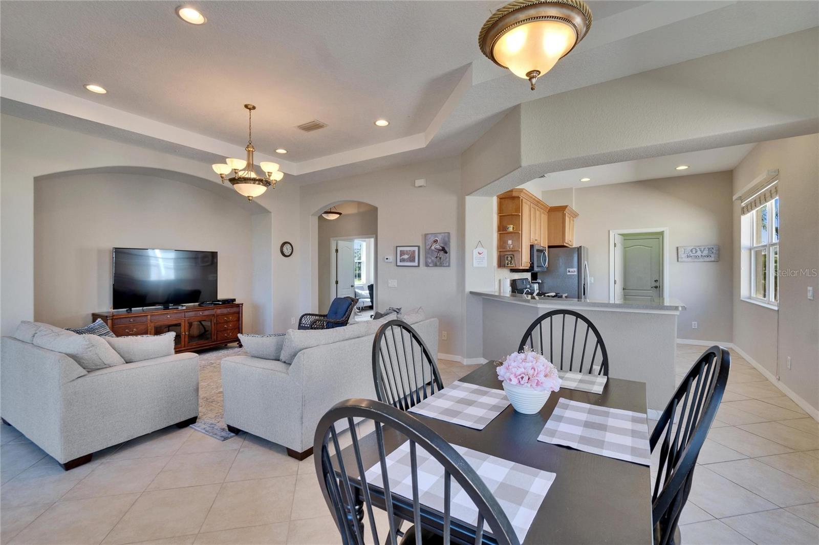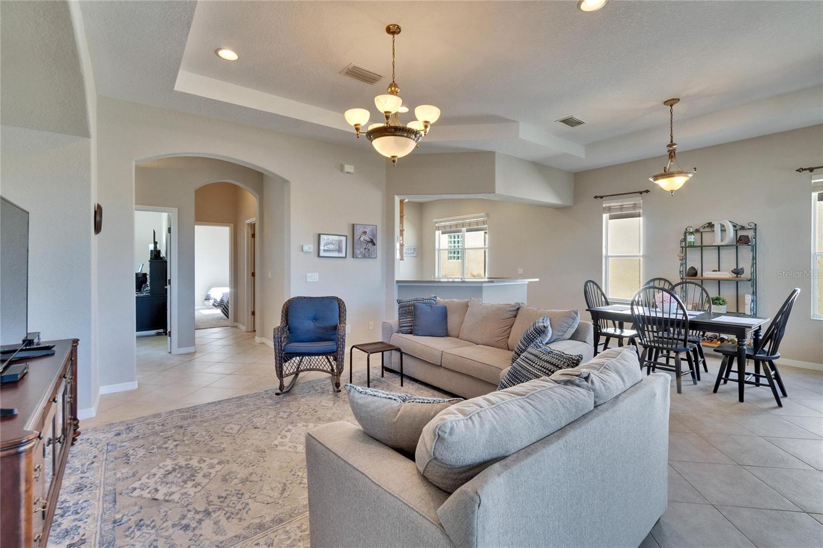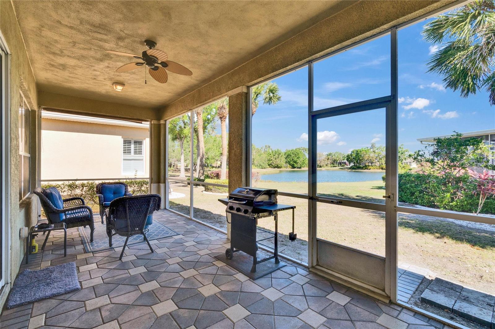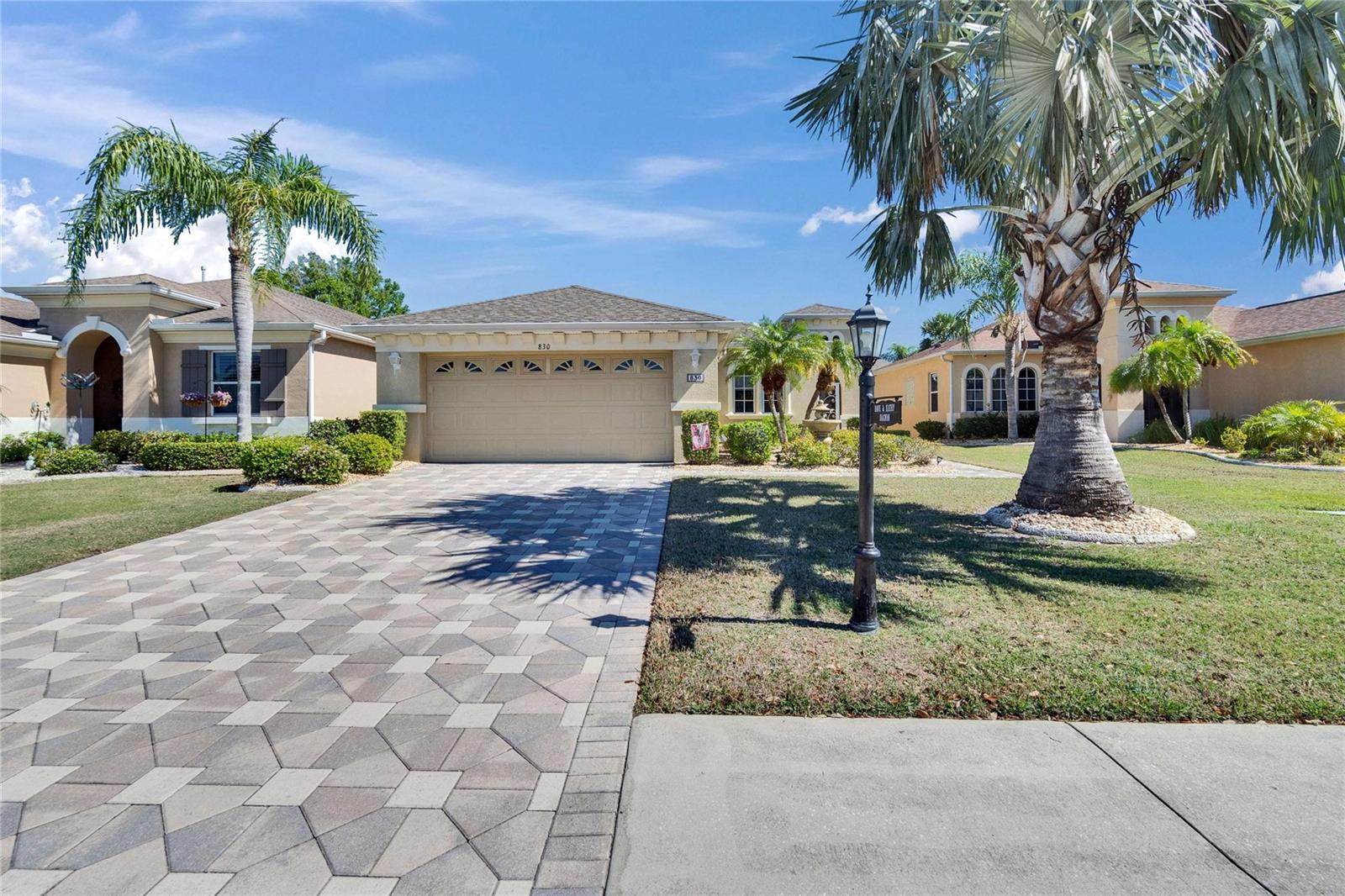 Beautifully Updated 3-Bedroom Home with Pond Views in a 55+ Community! Discover the perfect blend of comfort, style, and convenience in this well-maintained 3-bedroom, 2-bathroom home located in a highly desirable 55+ community. With a brand-new roof (2024) and fresh updates, this home is truly move-in ready! Inside, you'll love the open-concept layout featuring elegant tray ceilings in the living room and master bedroom. The master suite is a true retreat, offering a walk-in bathroom with a dual vanity, soaker tub, and separate shower. The kitchen is a chef’s delight with a gas stove, stainless steel appliances, and plenty of counter space. Relax and take in the peaceful pond views from the extended lanai, or enjoy a morning coffee on the screened-in front porch. The paver driveway adds a touch of sophistication, and the fresh interior paint gives the home a bright, welcoming feel. The garage is equipped with a convenient garage screen, a built-in workbench, and overhead storage, offering both functionality and extra space. Enjoy a maintenance-free lifestyle with the HOA covering lawn care, giving you more time to take advantage of the fantastic community amenities—including an outdoor pool, indoor lap and walking pool, spa, gym, fitness center, and various clubs (with a small fee). This home is a must-see for those looking for easy living in an active community. Schedule your private showing today!