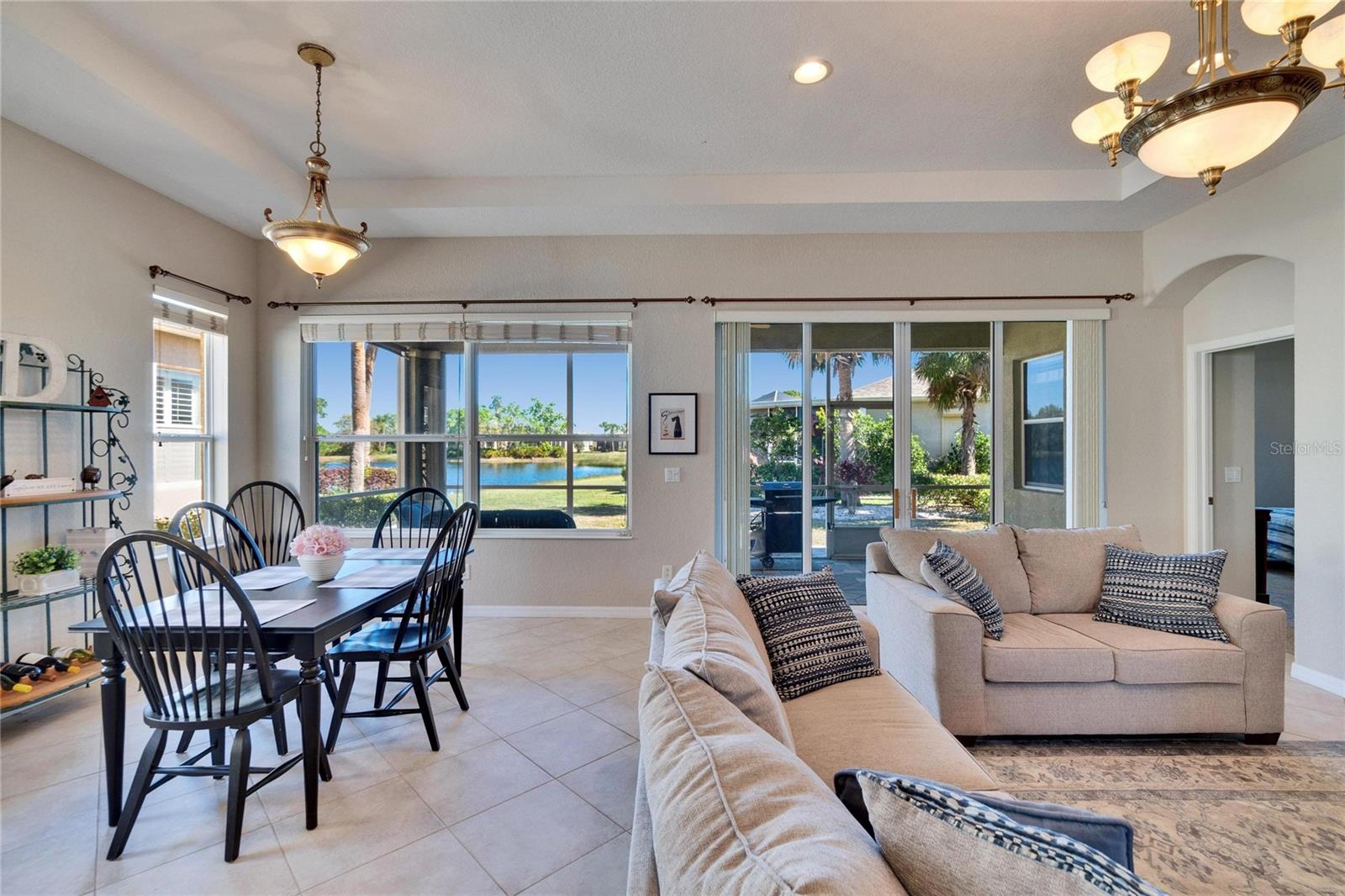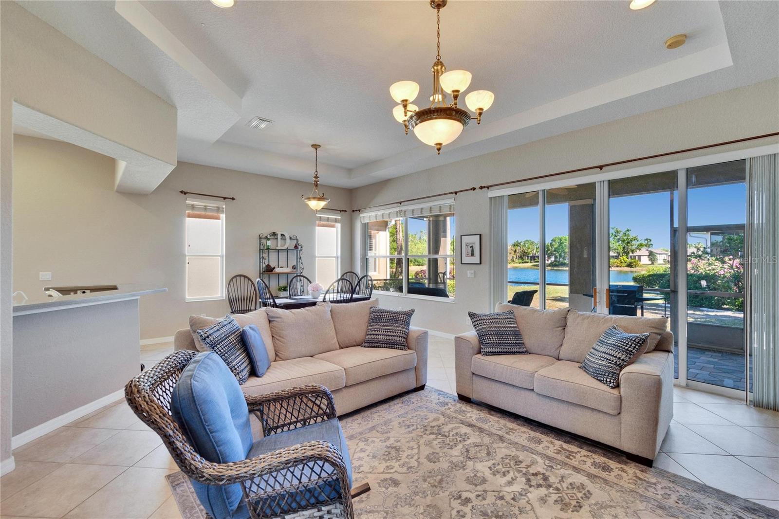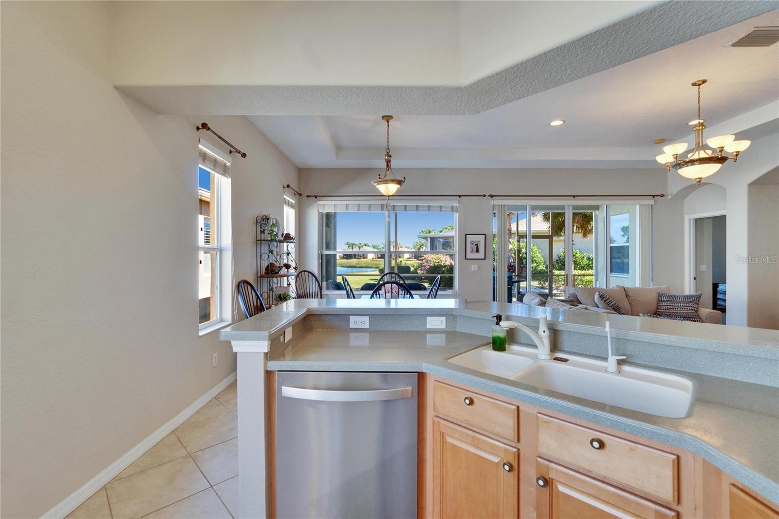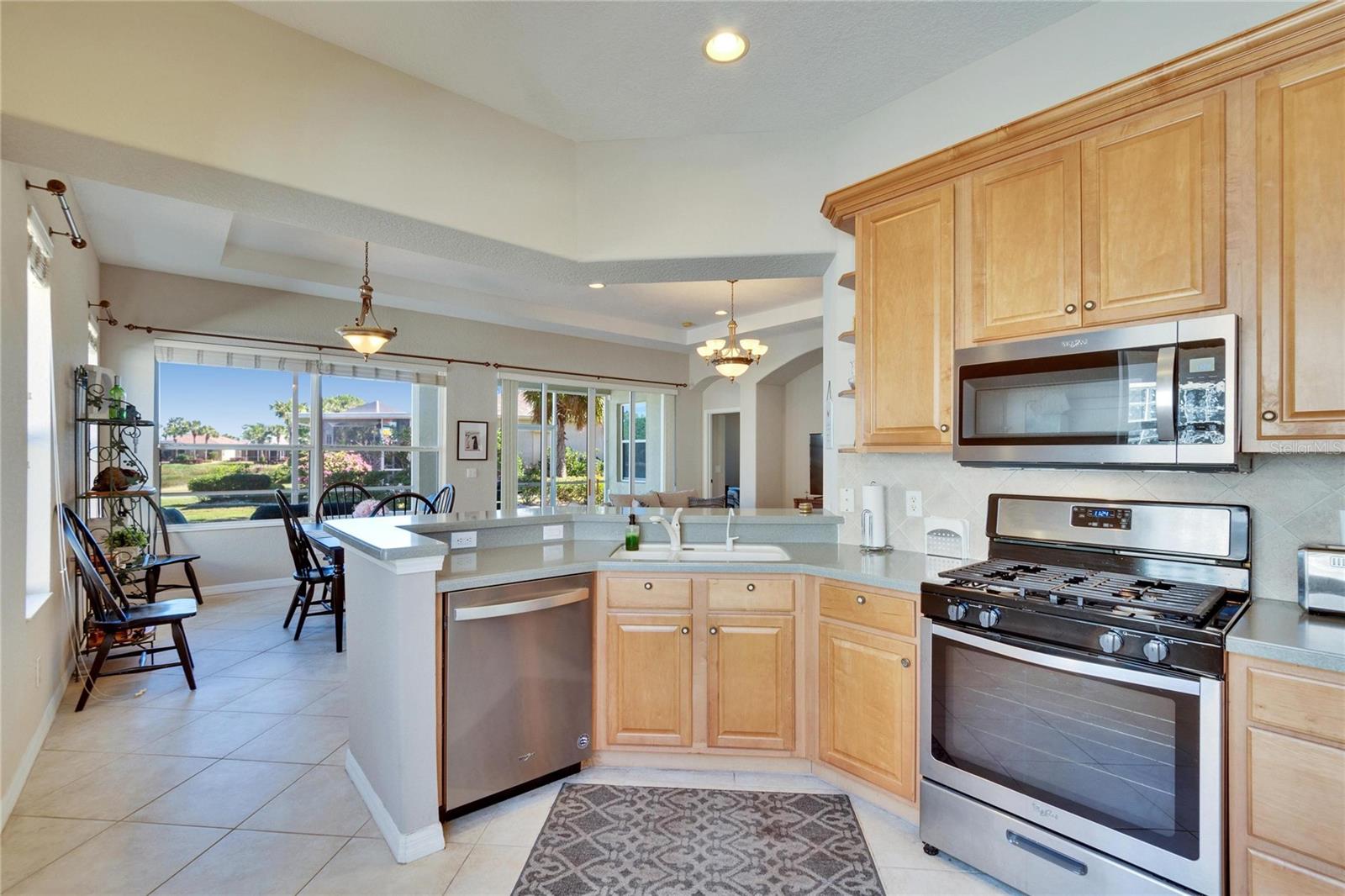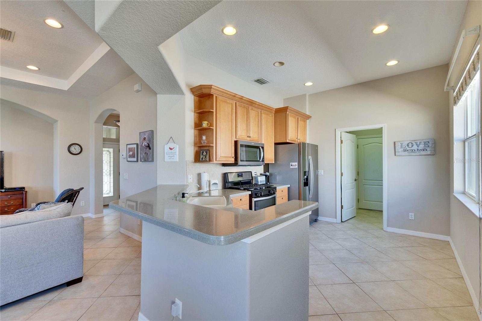 Beautifully Updated 3-Bedroom Home with Pond Views in a 55+ Community! Discover the perfect blend of comfort, style, and convenience in this well-maintained 3-bedroom, 2-bathroom home located in a highly desirable 55+ community. With a brand-new roof (2024) and fresh updates, this home is truly move-in ready! Inside, you'll love the open-concept layout featuring elegant tray ceilings in the living room and master bedroom. The master suite is a true retreat, offering a walk-in bathroom with a dual vanity, soaker tub, and separate shower. The kitchen is a chef’s delight with a gas stove, stainless steel appliances, and plenty of counter space. Relax and take in the peaceful pond views from the extended lanai, or enjoy a morning coffee on the screened-in front porch. The paver driveway adds a touch of sophistication, and the fresh interior paint gives the home a bright, welcoming feel. The garage is equipped with a convenient garage screen, a built-in workbench, and overhead storage, offering both functionality and extra space. Enjoy a maintenance-free lifestyle with the HOA covering lawn care, giving you more time to take advantage of the fantastic community amenities—including an outdoor pool, indoor lap and walking pool, spa, gym, fitness center, and various clubs (with a small fee). This home is a must-see for those looking for easy living in an active community. Schedule your private showing today!
