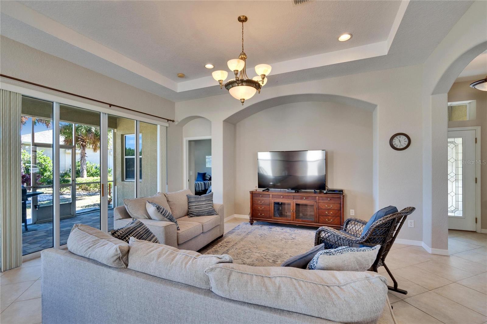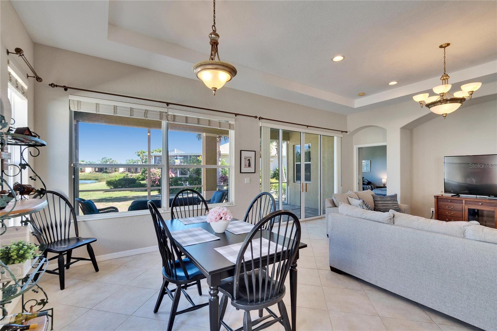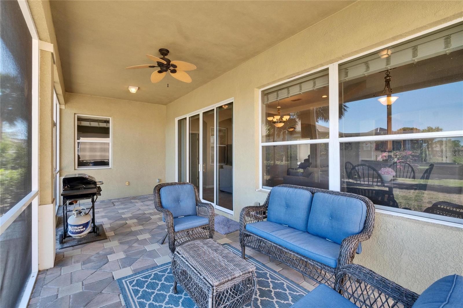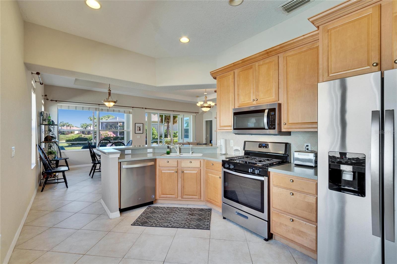 Beautifully Updated 3-Bedroom Home with Pond Views in a 55+ Community! Discover the perfect blend of comfort, style, and convenience in this well-maintained 3-bedroom, 2-bathroom home located in a highly desirable 55+ community. With a brand-new roof (2024) and fresh updates, this home is truly move-in ready! Inside, you'll love the open-concept layout featuring elegant tray ceilings in the living room and master bedroom. The master suite is a true retreat, offering a walk-in bathroom with a dual vanity, soaker tub, and separate shower. The kitchen is a chef’s delight with a gas stove, stainless steel appliances, and plenty of counter space. Relax and take in the peaceful pond views from the extended lanai, or enjoy a morning coffee on the screened-in front porch. The paver driveway adds a touch of sophistication, and the fresh interior paint gives the home a bright, welcoming feel. The garage is equipped with a convenient garage screen, a built-in workbench, and overhead storage, offering both functionality and extra space. Enjoy a maintenance-free lifestyle with the HOA covering lawn care, giving you more time to take advantage of the fantastic community amenities—including an outdoor pool, indoor lap and walking pool, spa, gym, fitness center, and various clubs (with a small fee). This home is a must-see for those looking for easy living in an active community. Schedule your private showing today!