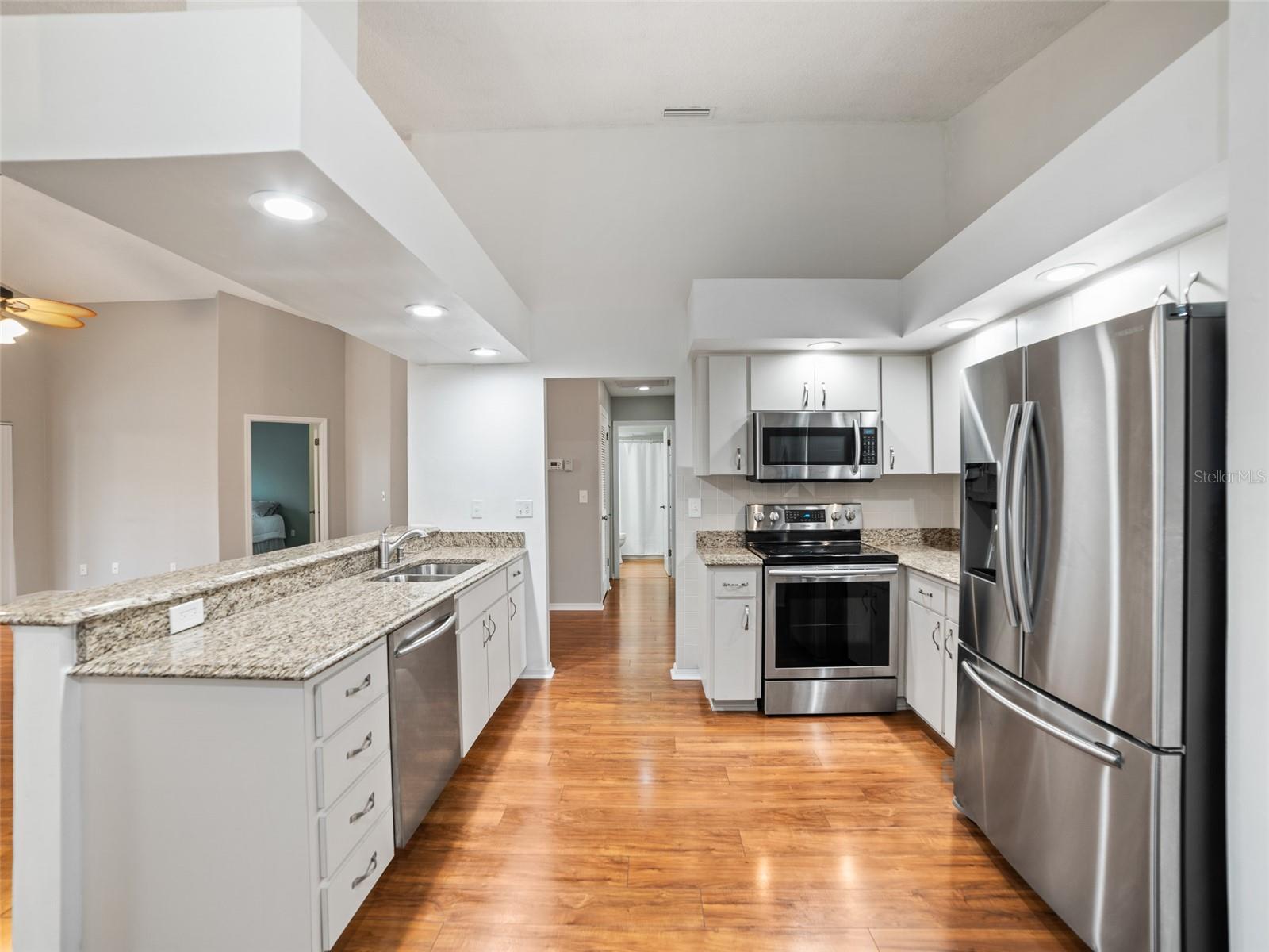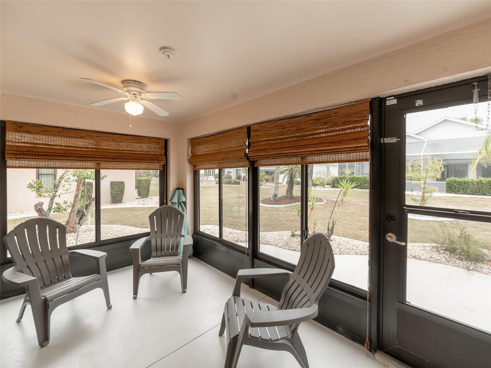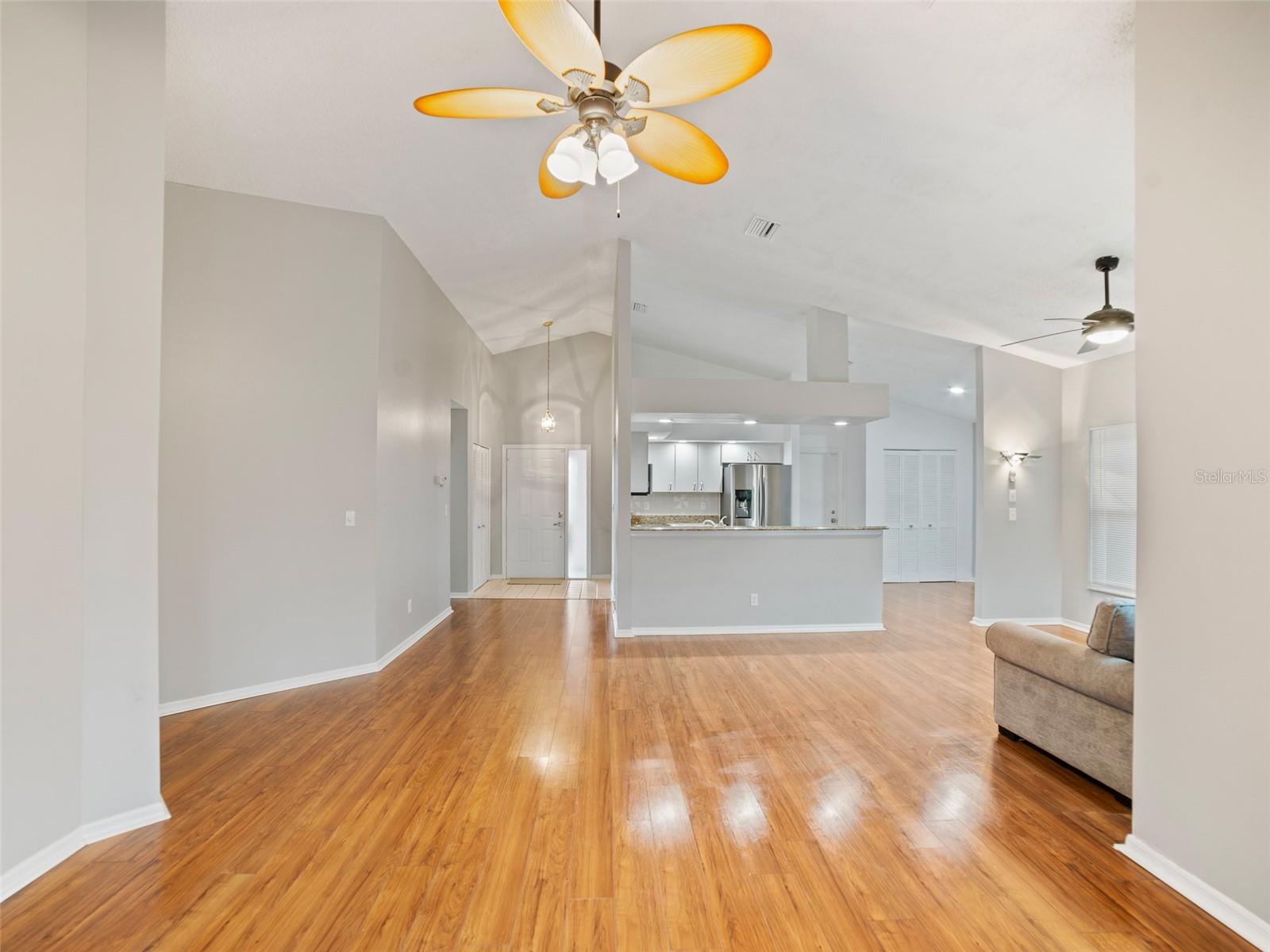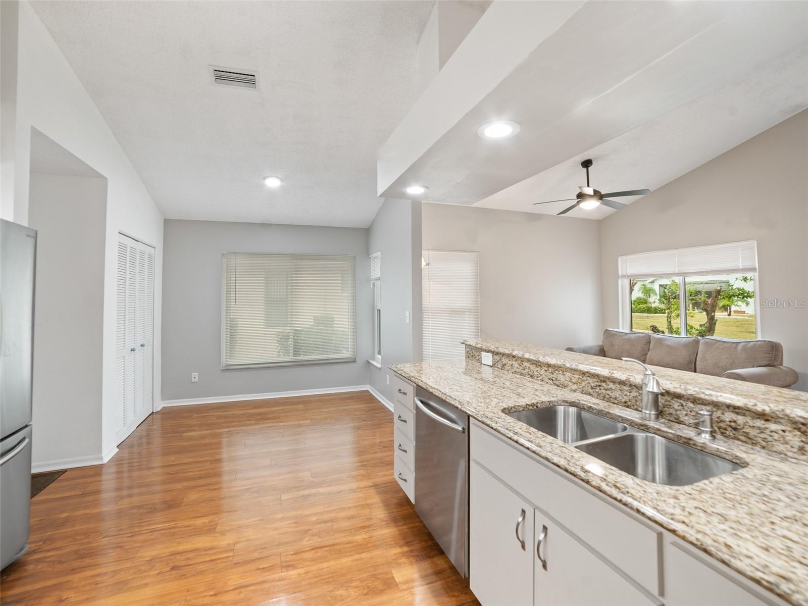 One or more photo(s) has been virtually staged. ** Seller has an assumable VA loan at 5.25%** Step into this beautifully maintained 2-bedroom, 2-bathroom Antigua model home in the heart of Sun City’s vibrant 55+ community! This inviting home boasts a spacious open floor plan with vaulted ceilings, filling the space with abundant natural light. The kitchen features stunning granite countertops, perfect for meal prep and entertaining. The primary suite is a peaceful retreat, complete with a tiled walk-in shower and ample closet space. Recent updates include impact windows (2013), A/C (2017), full home repiping (2013), fresh exterior and interior paint (2022), water heater (2022), and added attic insulation (2022)—ensuring efficiency and peace of mind. Enjoy low-maintenance living in this golf cart-friendly community with access to world-class amenities, clubs, and activities. Don't miss this opportunity to own a move-in-ready home in an active, thriving neighborhood! Schedule your showing today!