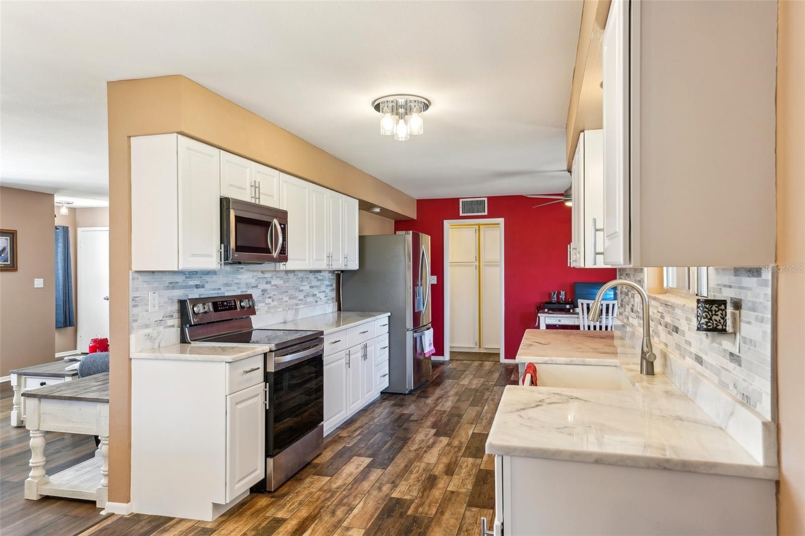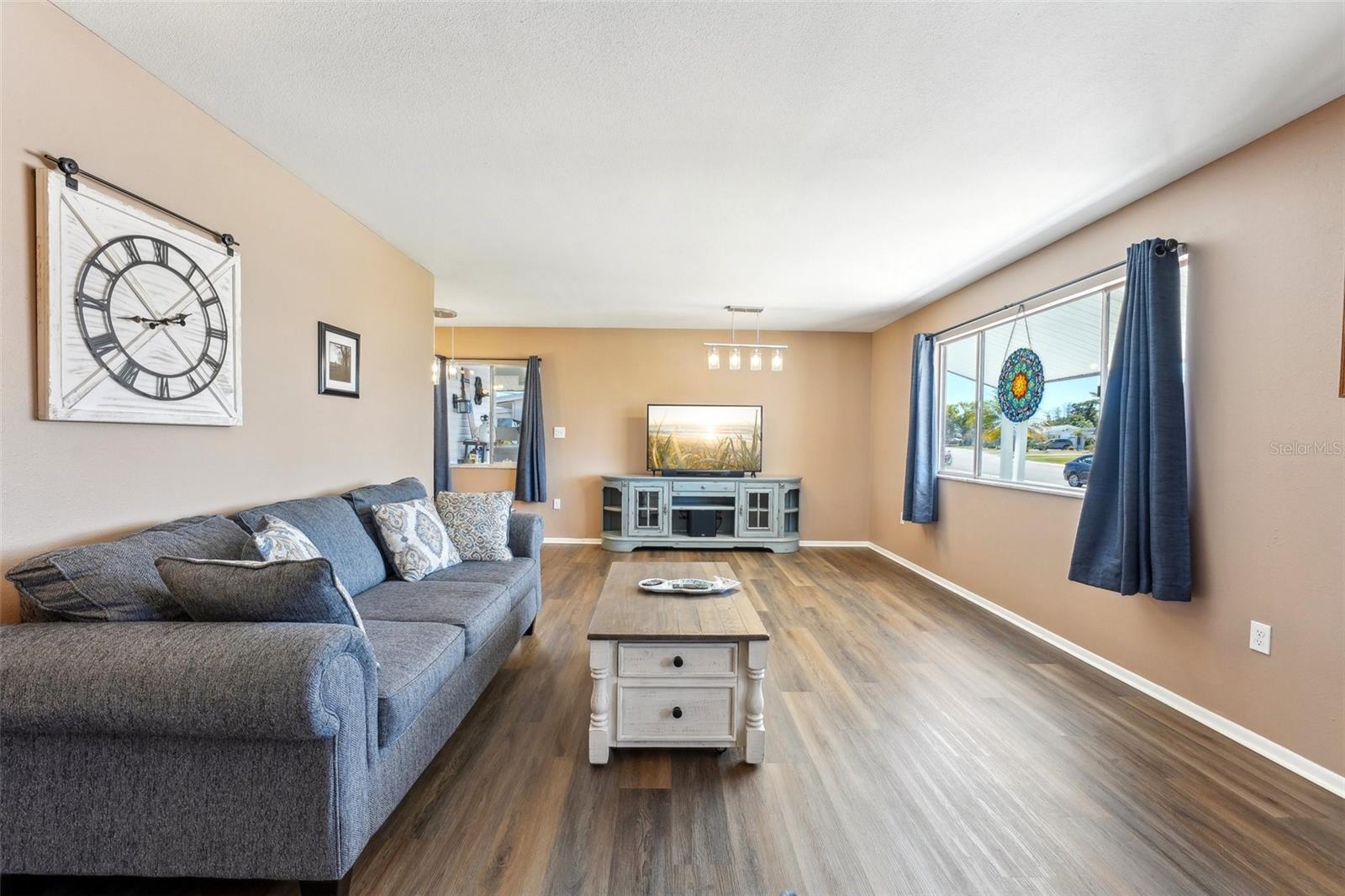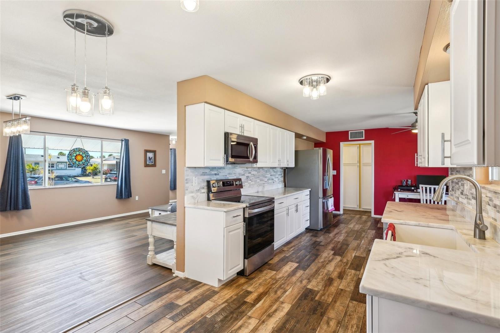 This well-kept 3 bedroom, 2 bath home in Sun City Center has been remodeled from top to bottom. It has a newer kitchen with white cabinetry, solid countertops, tile backsplash, stainless steel appliances, and a new luxury vinyl floor. The two bathrooms have been remodeled with new vanities, tile showers and glass doors, comfort height commodes, and more. There’s a very large family room in the rear of the home overlooking the rear yard. It’s perfect for a TV room, office, hobby room and more. It is quick and easy golf cart ride to the clubhouse and community facilities where you’ find pools, clubs, hobbies and events going on every day. Shopping, banks, restaurants and medical offices are also very close. You’ll love Sun City Center with its amazing facilities, pools, and clubs just waiting for you to enjoy. Nestled between Sarasota and Tampa, this location offers a convenient ride to airports, great shopping, dining, and professional entertainment. With easy access to award-winning, sandy beaches, this home provides the best of all worlds without the stress of big city life. Leave it all behind and enjoy your new life here in one of Florida’s most affordable 55-and-better communities!