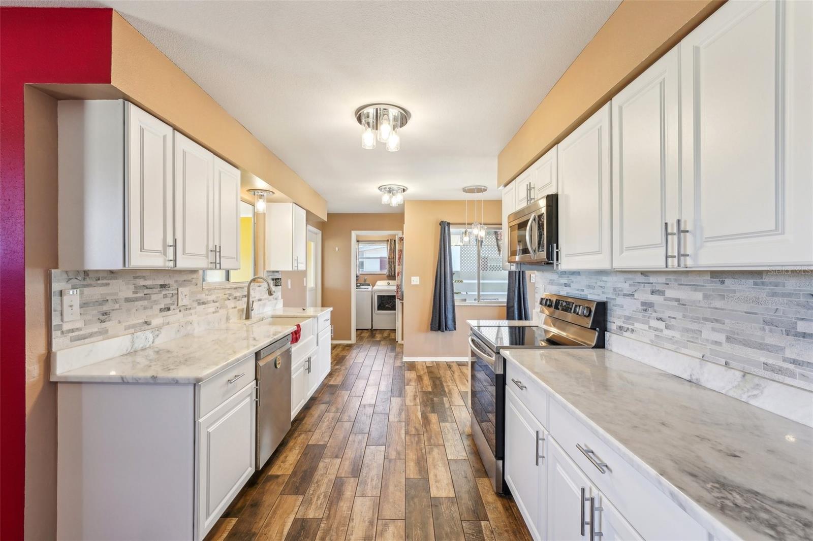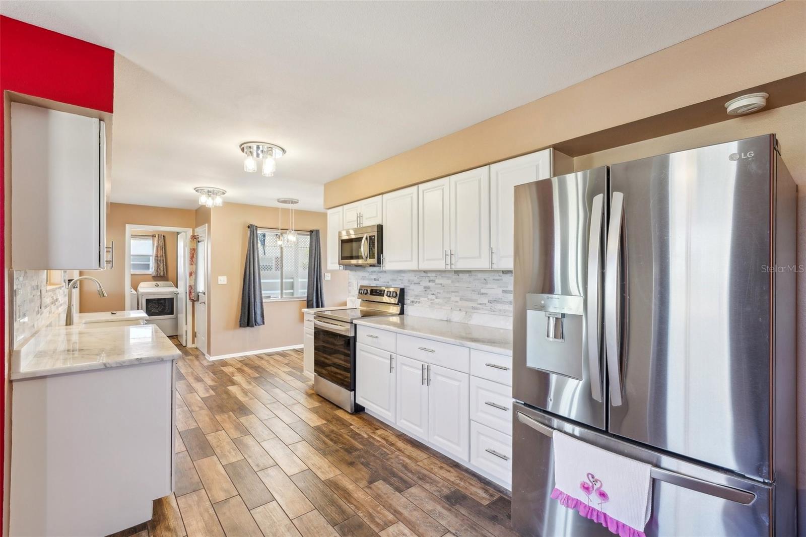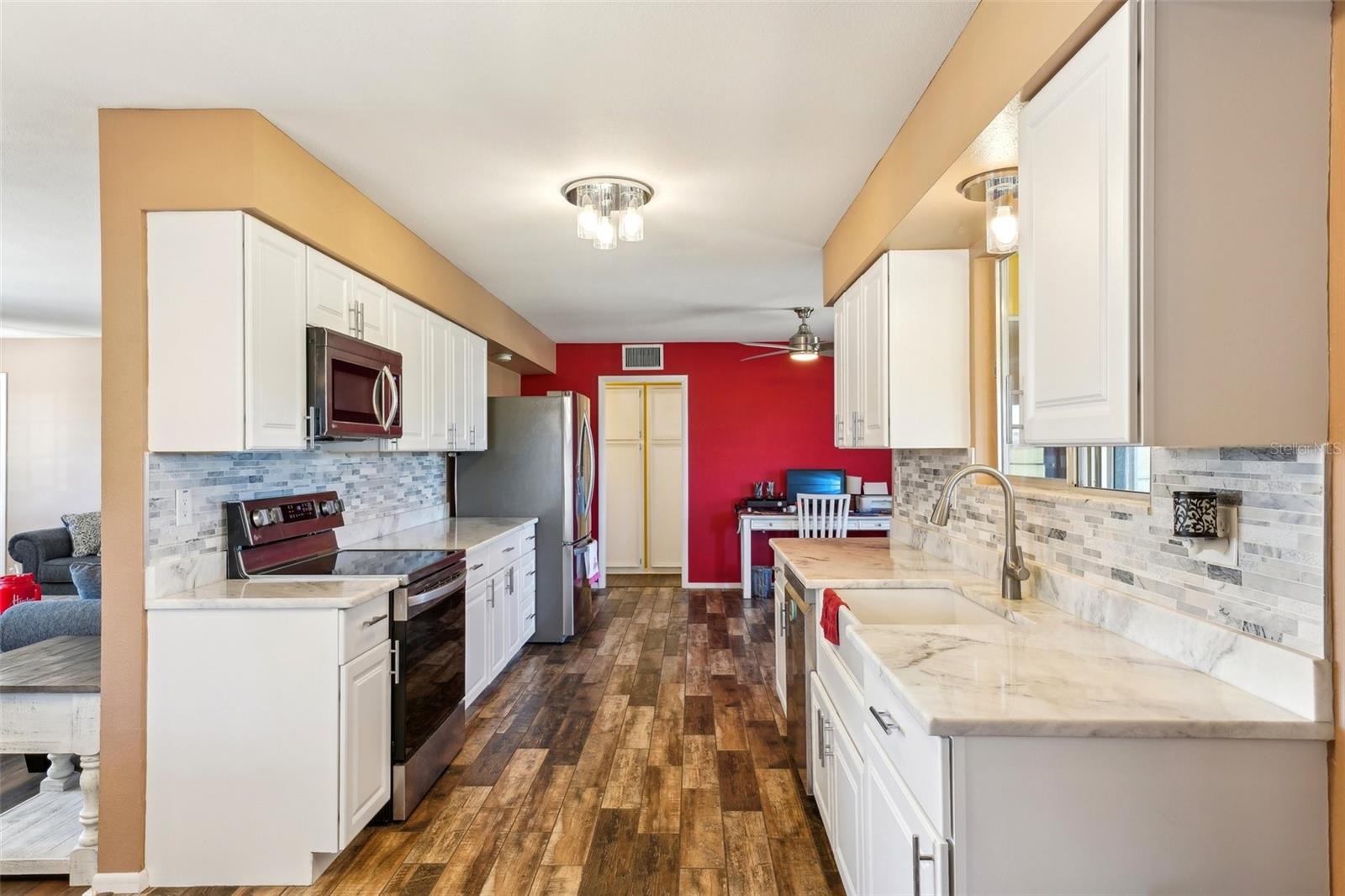 This well-kept 3 bedroom, 2 bath home in Sun City Center has been remodeled from top to bottom. It has a newer kitchen with white cabinetry, solid countertops, tile backsplash, stainless steel appliances, and a new luxury vinyl floor. The two bathrooms have been remodeled with new vanities, tile showers and glass doors, comfort height commodes, and more. There’s a very large family room in the rear of the home overlooking the rear yard. It’s perfect for a TV room, office, hobby room and more. It is quick and easy golf cart ride to the clubhouse and community facilities where you’ find pools, clubs, hobbies and events going on every day. Shopping, banks, restaurants and medical offices are also very close. You’ll love Sun City Center with its amazing facilities, pools, and clubs just waiting for you to enjoy. Nestled between Sarasota and Tampa, this location offers a convenient ride to airports, great shopping, dining, and professional entertainment. With easy access to award-winning, sandy beaches, this home provides the best of all worlds without the stress of big city life. Leave it all behind and enjoy your new life here in one of Florida’s most affordable 55-and-better communities!