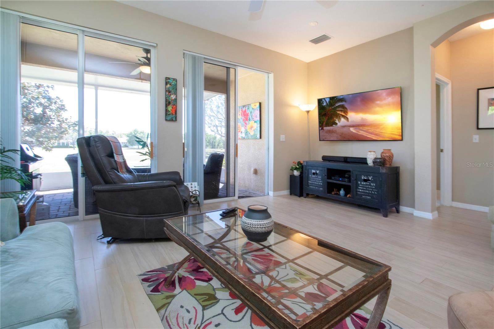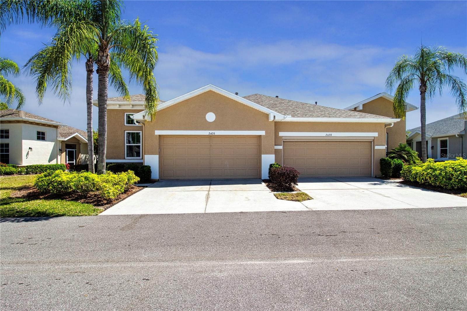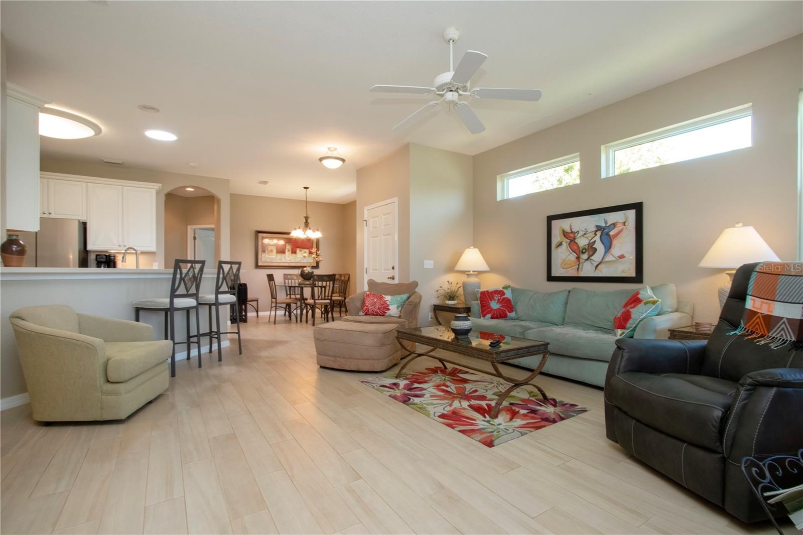 Price Improvement! Golf View! Pet Friendly! Turn Key! Beautiful Haddington Model Features 2 Bedrooms, 2 Bathrooms, Extended and Screened Lanai, Screened Entry and a 2 Car Garage with EV Charger. This Open Floor Plan with Expansive View of the Golf Course is the Perfect Size for Living and Entertaining Guests. The Kitchen has 42" Cabinets, Corian Counters, Touch Free Faucet, Breakfast Bar, Under Cabinet Lighting, Recessed Lighting, Stainless Steel Appliances, Including Gas Stove, Newer Fridge with Beverage Center and Newer Dishwasher and a Solar Tube. The Dining Area is Large Enough for your Table and Buffet. The Primary Suite is Will Accommodate a King Size Bedroom Set. There is a Walk-in Closet and En-Suite Bathroom with Tiled Walk-In Shower and Vanity with Corian Counter. Your Guest Will have Their Own Room with Guest Bathroom with Solar Tube Situated Just Outside their door. The Expanded, Pavered, and Screened Lanai with the Morning Sun and Afternoon Shade to Enjoy the Beautiful Weather, Scenery and Wildlife. Ceramic Tile Plank Flooring with Newer Carpet in the Bedrooms. IMPACT WINDOWS! Inside Laundry with Extra Cabinets for Storage. This Beautiful Home is Move-In Ready and Waiting for You. Kings Point is the guarded section of Sun City Center boasting 2 clubhouses in this fabulous 55 and older community, each with an outdoor heated pool, indoor pool, exercise room, craft rooms, large screen TV, bar, food service, and planned social activities. Maintenance Includes building exterior, premium cable, internet, escrow reserves fund, ground maintenance, private road, recreational facilities, roof, security, water and sewer. Sun City Center has a Central Location to Busch Gardens, Tampa and Sarasota's cultural and sporting amenities, and the Bay and Gulf Beaches. Don't let this one slip away!