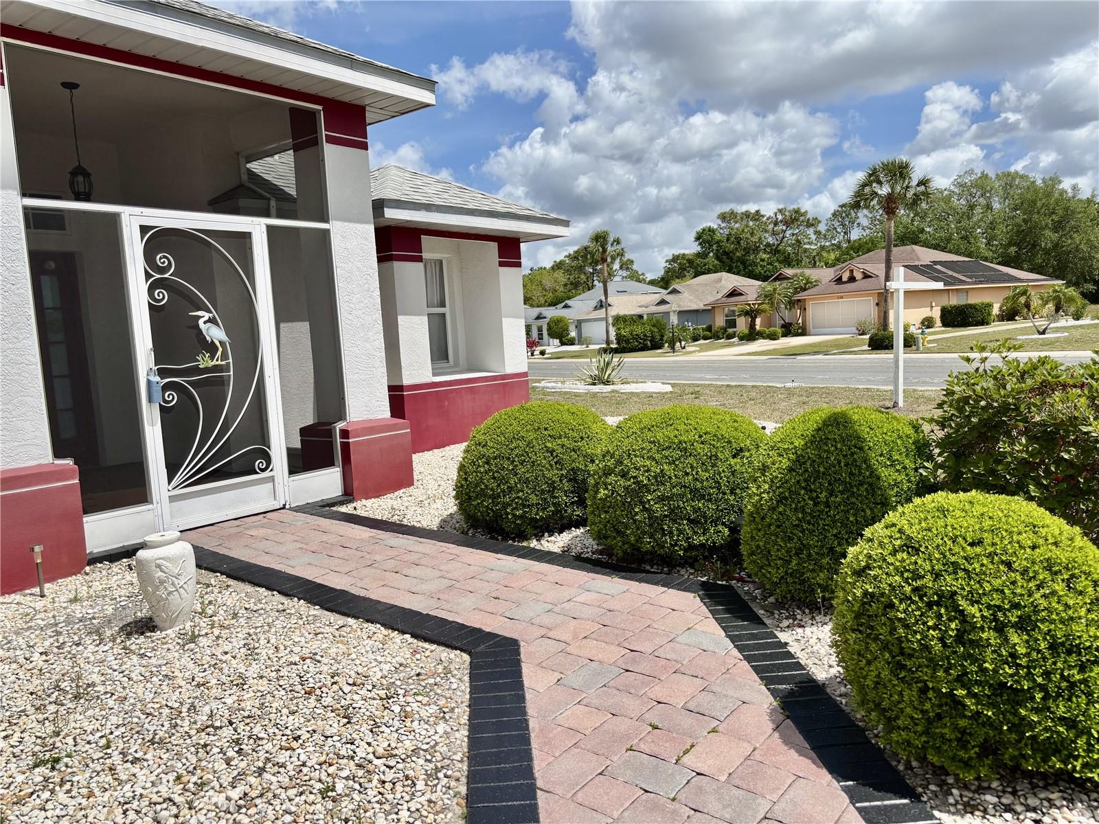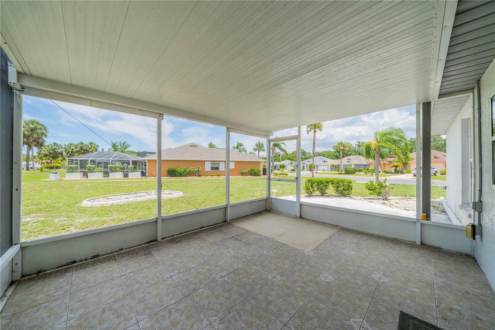 Welcome to a lovely home situated on a large corner lot in the very desirable Caloosa Golf and Country Club Community. This home backs up to open conservation and water view. Enter up the paver driveway into the newly screened front porch. This two bedroom/two bath home with split plan also includes a family room extended from the living area. The kitchen with lovely stone countertops has stainless appliances, microwave and convection oven. There is also an eat-in area which overlooks conservation and a pond. The large living area can be used as a living/dining combination or a great room. The family room or den has sliding doors onto the lanai. Relax on the newly screened lanai and view the birds and wildlife in the open area with water view. The master bedroom boasts of two walk-in closets specially designed with cabinets and shelves to amplify your space. The master bath includes a garden tub, double sinks, and a tiled walk-in shower. The guest bedroom with desk and murphy bed can be used as an office and/or guest suite and includes a privacy door. The main flooring is hard wood with carpet in the bedrooms and tile in the wet areas. You will love the spacious laundry room with washer/dryer, sink, and cabinet space. The two-car garage has an electric screen, new garage door opener and a side door for your entry convenience. This spacious lot also includes a new irrigation system. Sun City Center is a golf cart community with 200 clubs, activities, arts/crafts, tennis/pickle ball courts, pools, fitness center. We are located between Tampa and Sarasota and easily accessible to three international airports, professional sporting events, and several U.S. best beaches and resorts.