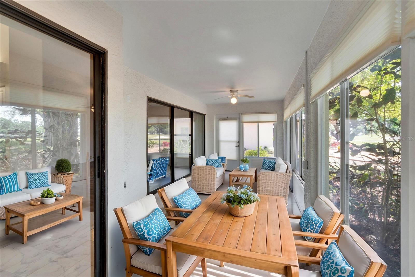 One or more photo(s) has been virtually staged. Florida living at it''s best in this beautiful 3 bedroom home with golf course and pond views in the amenity rich community of Sun City Center! This home has an assumable VA loan--save on interest rates. As you enter the home you will notice the cathedral ceilings in the dining room and living room and gorgeous view through the sliders to the Florida room. The eat-in galley kitchen with granite countertops, stainless appliances, vanilla cabinets and newly tiled floor. Large master bedroom with ample built-in closet space and master bath with private commode , shower and soaker tub. Take in the sunsets every evening as you relax in your Florida room with oversized windows---the perfect way to end the day. The home also has vinyl plank flooring through out, two additional bedrooms and guest bath laundry room. HVAC replaced 2022, freshly painted, updated light fixtures and fans, built in closet organizers. Sun City Center is a golf cart friendly 55+ community with 2 clubhouses, 3 pools, state-of-the-art fitness center, pickleball, tennis, over 200 clubs and activities and so much more! This property is also available for rent.