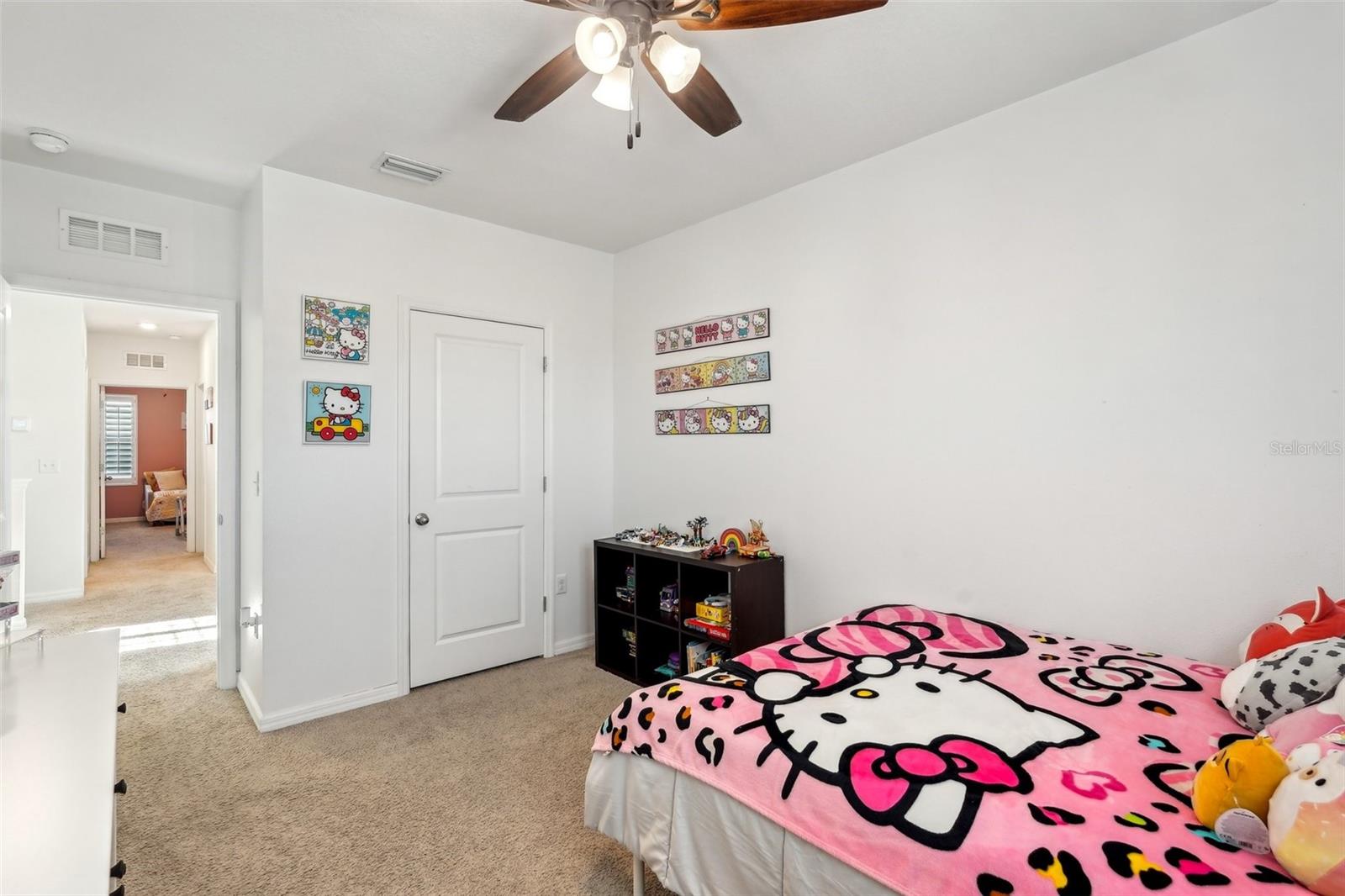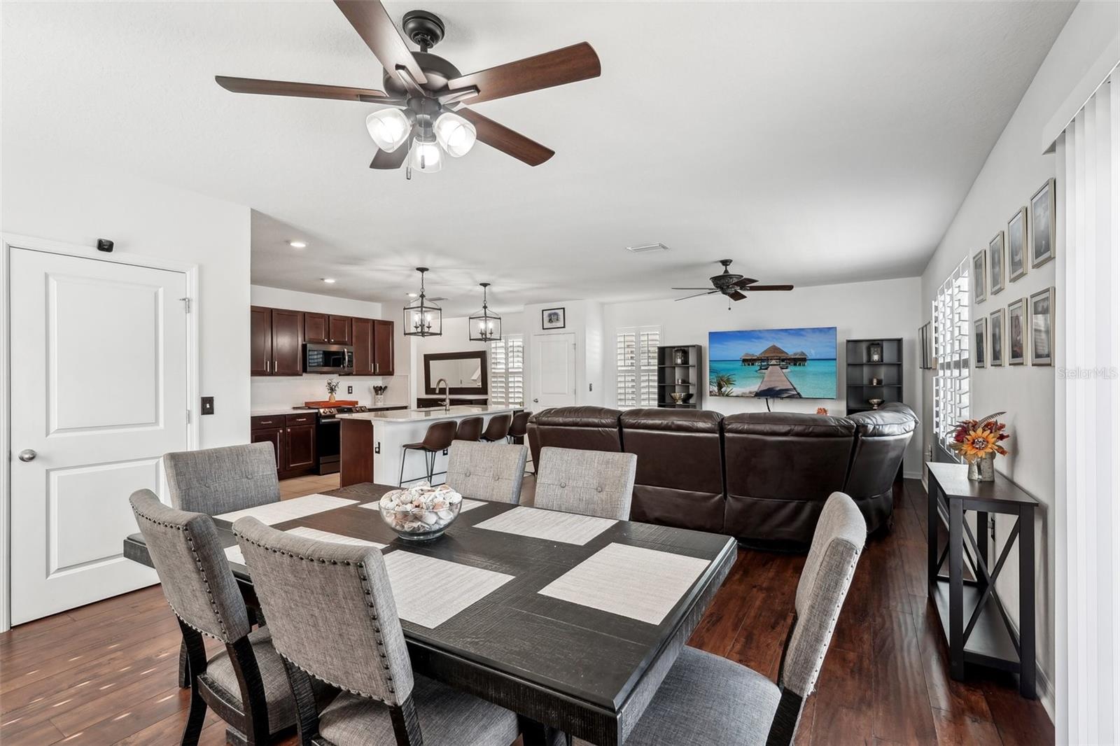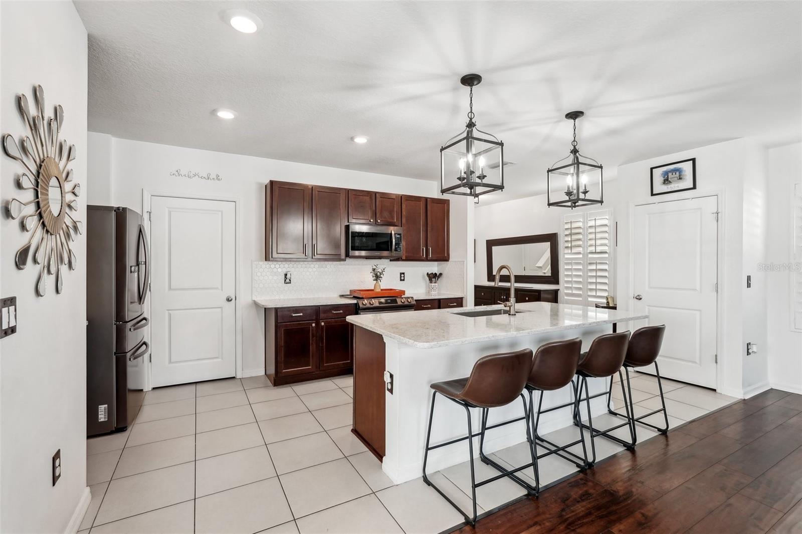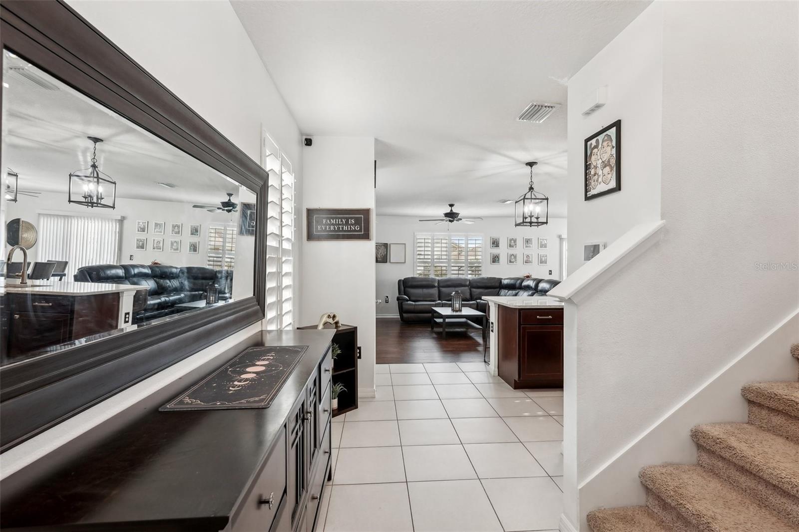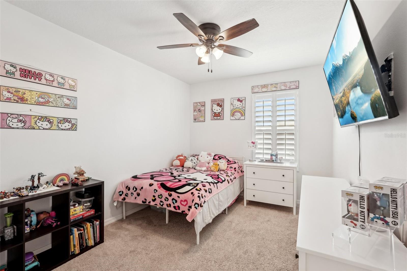 ***Bundled service pricing available for buyers.*** This beautifully upgraded 4-bedroom, 2.5-bath home in the desirable Orchids at Cypress Creek community offers so much more than just the basics. The thoughtfully designed layout places all bedrooms upstairs for added privacy, while the main floor is dedicated to spacious living and entertaining, complete with a convenient half bath for guests. The open-concept great room features high-end laminate flooring and flows seamlessly into the dining area and the kitchen, which boasts quartz countertops, a new backsplash, stainless steel appliances, pendant lighting, and a walk-in pantry. Plantation shutters throughout the home add privacy and elegance, while upgraded chandeliers, ceiling fans in all bedrooms and the living room, and updated bathroom faucets enhance both style and comfort. Additional storage is found in the coat and storage closets downstairs, and the upstairs laundry room—located conveniently near all bedrooms—offers room for extra shelving or cabinetry. At the top of the stairs, a versatile loft area makes a perfect playroom, office, or workout space. The spacious primary suite includes a large walk-in closet, dual sinks, a private water closet, and a walk-in shower, while the three additional bedrooms each offer generous storage. Outside, the fenced backyard is an ideal retreat with an expanded cement lanai perfect for grilling, relaxing, or entertaining, and added front and back landscaping boosts curb appeal. A custom-fit hurricane shutter system provides peace of mind, and a newly installed security system offers added safety. As part of a low-HOA community, residents enjoy impressive amenities, including two resort-style pools, a clubhouse, fitness stations, a dog park, a family park, a playground, a basketball court, trails, bike paths, and more—all with 24/7 security and included internet service. Ideally located just minutes from shopping, restaurants, beaches, golf courses, hospitals, and entertainment, this home combines comfort, convenience, and community. And while located in Sun City Center, it’s important to note that this is not a 55+ community—making it a perfect fit for all ages. Bundled service pricing available for buyers. Connect with the listing agent for details