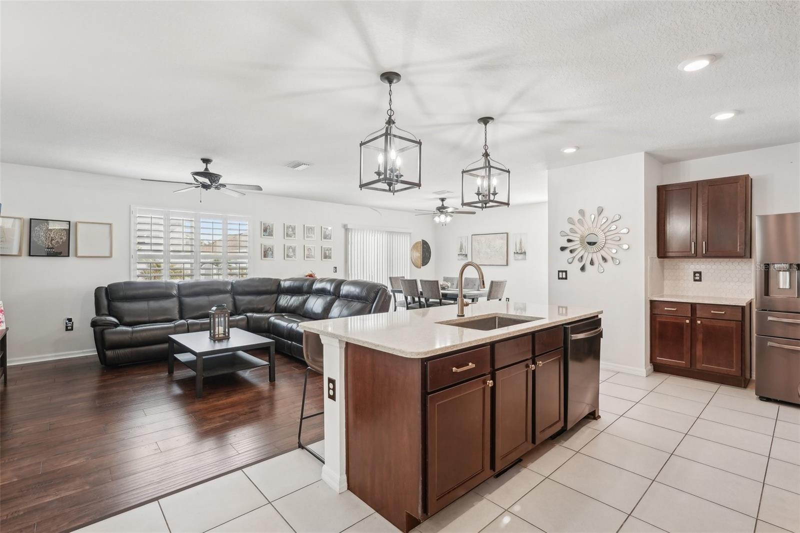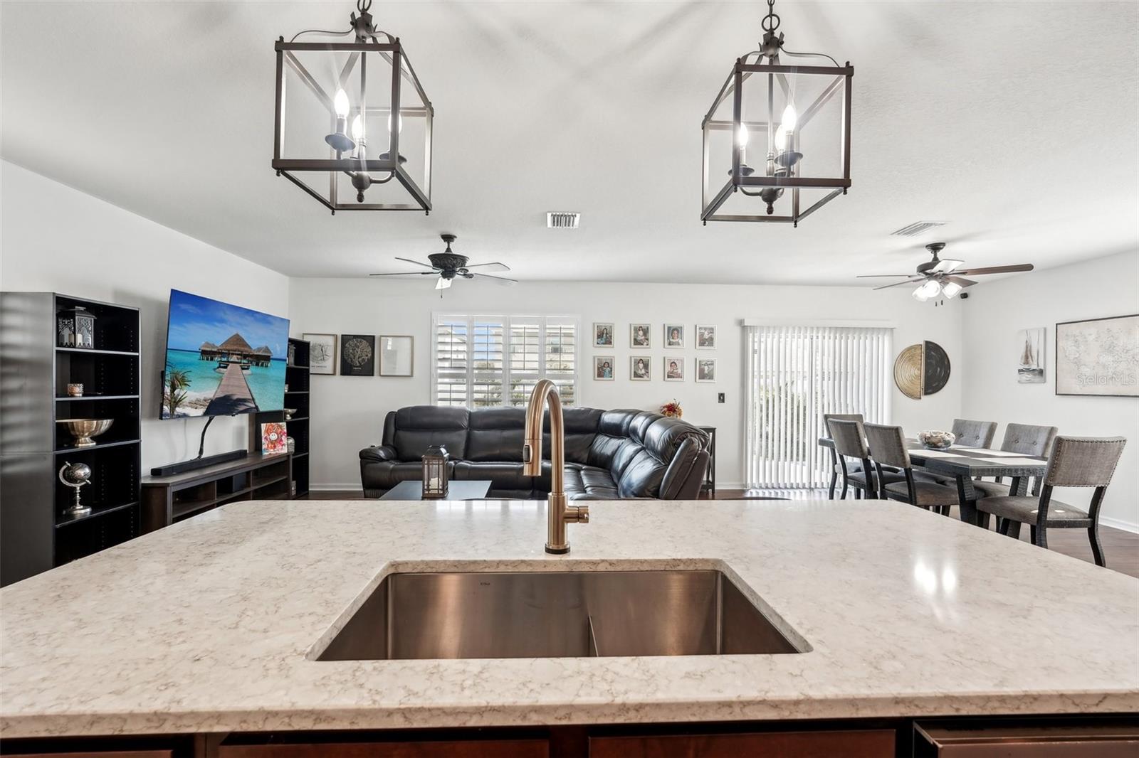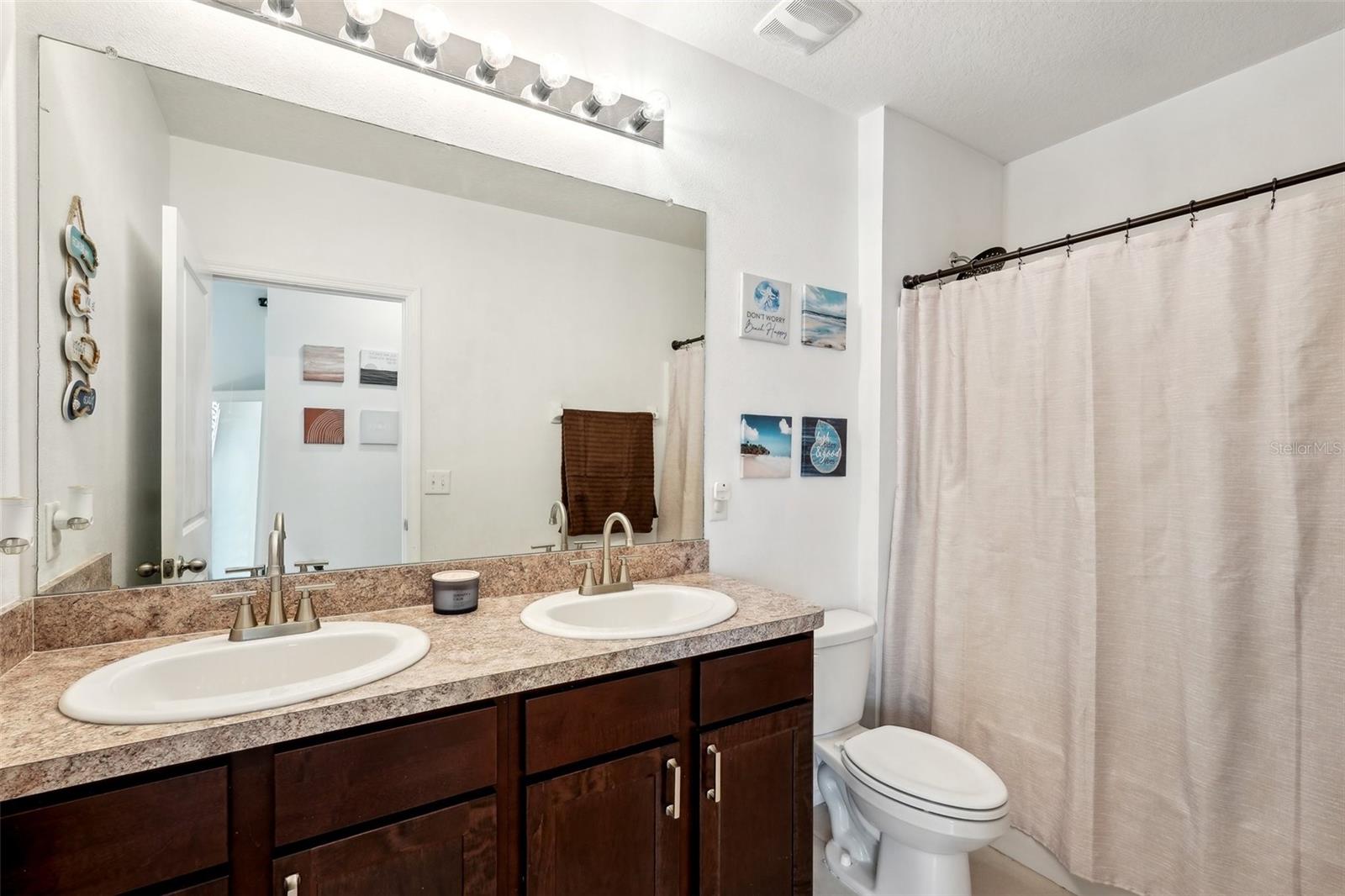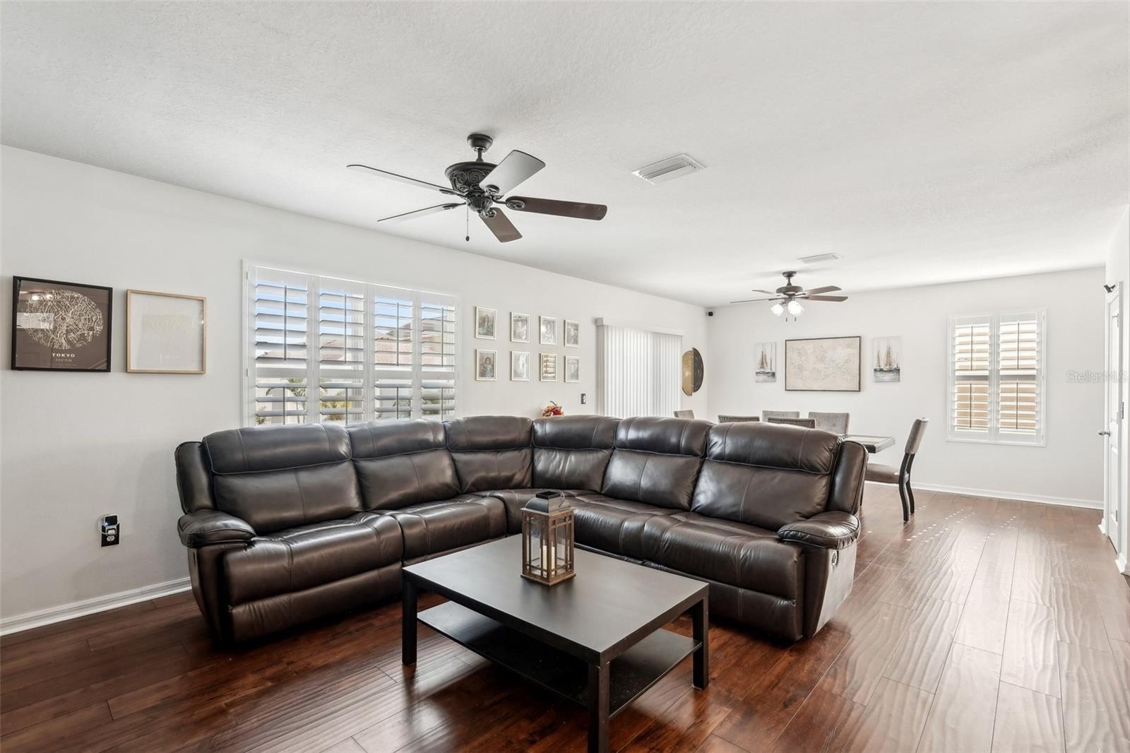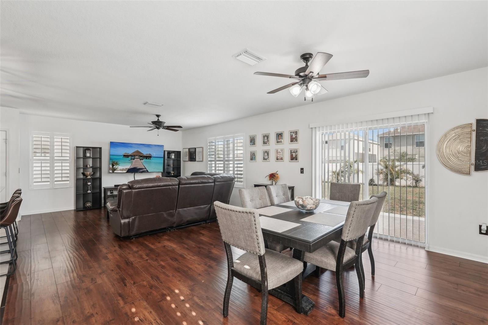 ***Bundled service pricing available for buyers.*** This beautifully upgraded 4-bedroom, 2.5-bath home in the desirable Orchids at Cypress Creek community offers so much more than just the basics. The thoughtfully designed layout places all bedrooms upstairs for added privacy, while the main floor is dedicated to spacious living and entertaining, complete with a convenient half bath for guests. The open-concept great room features high-end laminate flooring and flows seamlessly into the dining area and the kitchen, which boasts quartz countertops, a new backsplash, stainless steel appliances, pendant lighting, and a walk-in pantry. Plantation shutters throughout the home add privacy and elegance, while upgraded chandeliers, ceiling fans in all bedrooms and the living room, and updated bathroom faucets enhance both style and comfort. Additional storage is found in the coat and storage closets downstairs, and the upstairs laundry room—located conveniently near all bedrooms—offers room for extra shelving or cabinetry. At the top of the stairs, a versatile loft area makes a perfect playroom, office, or workout space. The spacious primary suite includes a large walk-in closet, dual sinks, a private water closet, and a walk-in shower, while the three additional bedrooms each offer generous storage. Outside, the fenced backyard is an ideal retreat with an expanded cement lanai perfect for grilling, relaxing, or entertaining, and added front and back landscaping boosts curb appeal. A custom-fit hurricane shutter system provides peace of mind, and a newly installed security system offers added safety. As part of a low-HOA community, residents enjoy impressive amenities, including two resort-style pools, a clubhouse, fitness stations, a dog park, a family park, a playground, a basketball court, trails, bike paths, and more—all with 24/7 security and included internet service. Ideally located just minutes from shopping, restaurants, beaches, golf courses, hospitals, and entertainment, this home combines comfort, convenience, and community. And while located in Sun City Center, it’s important to note that this is not a 55+ community—making it a perfect fit for all ages. Bundled service pricing available for buyers. Connect with the listing agent for details