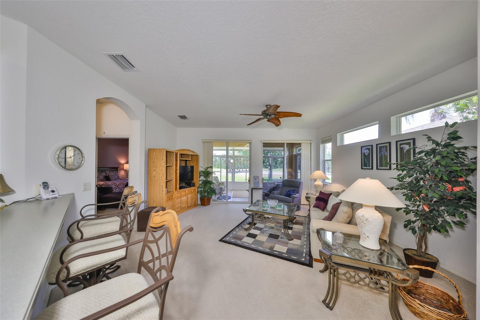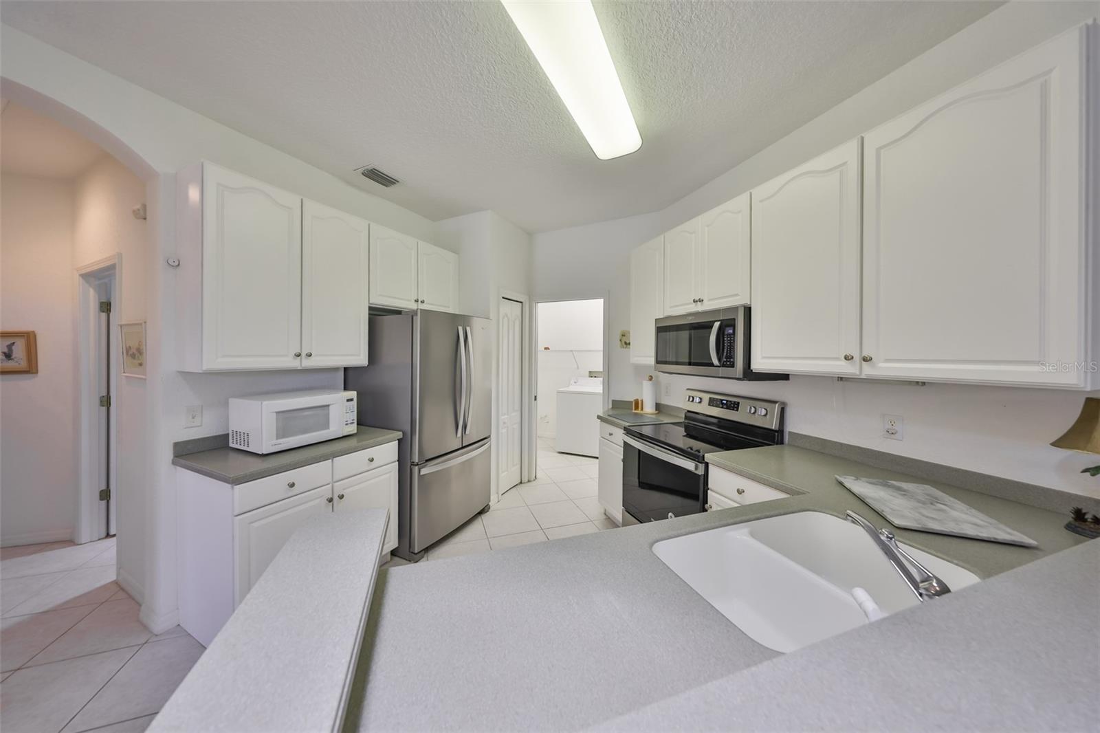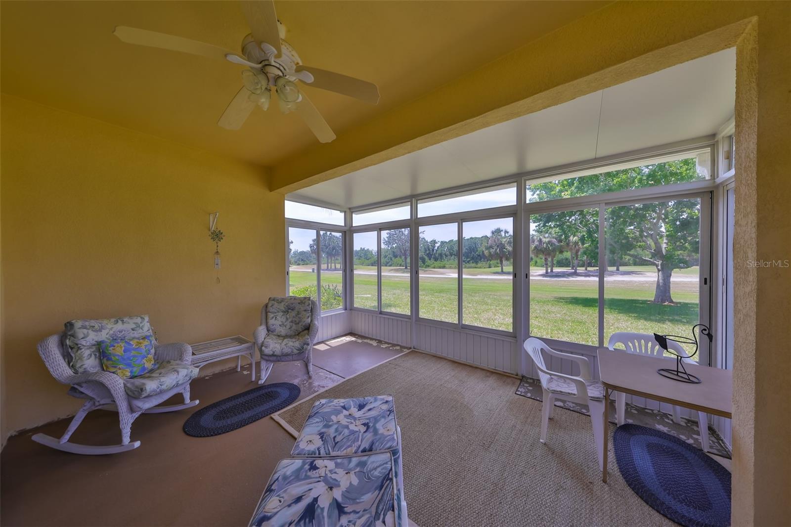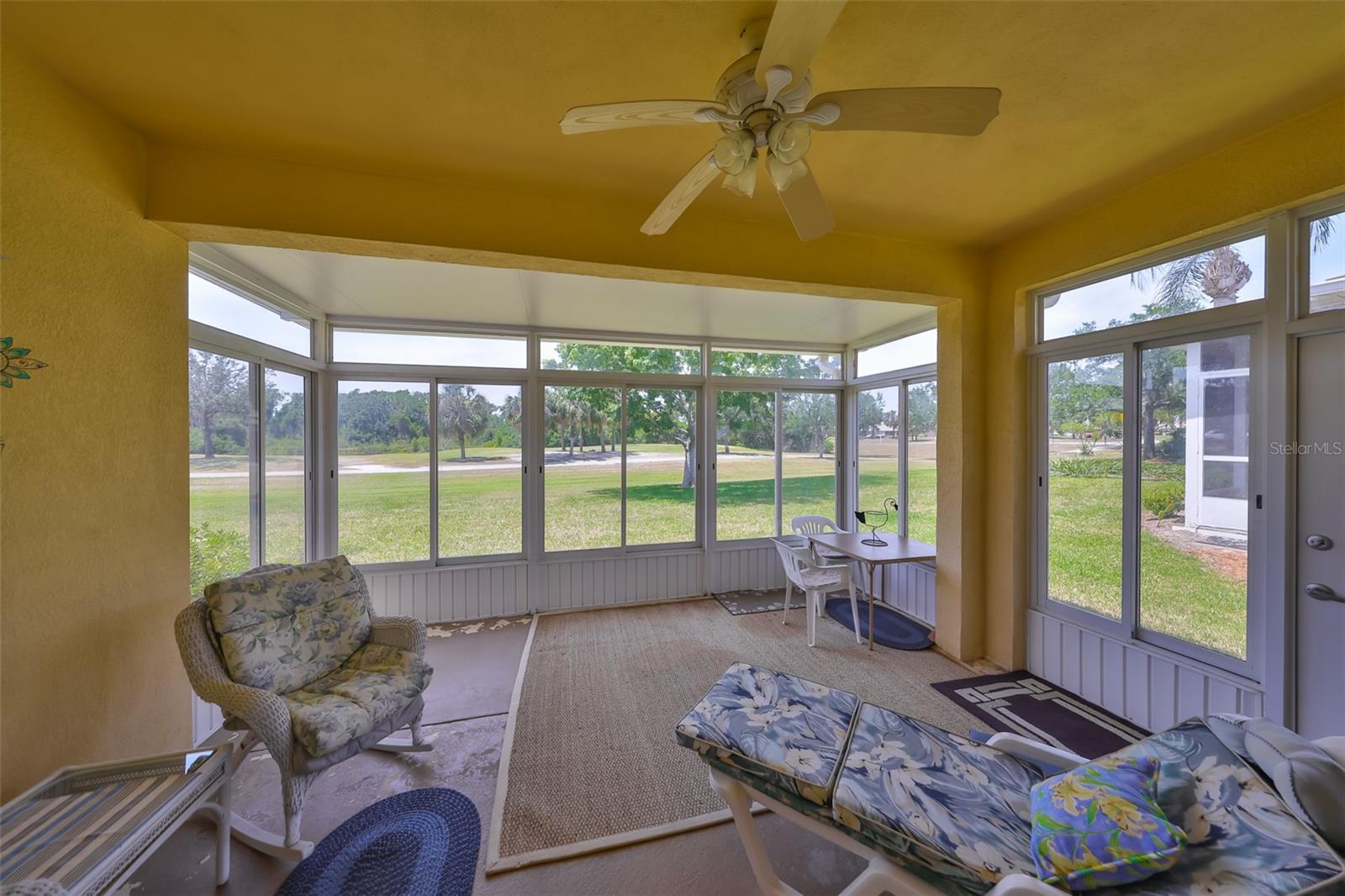 Open, airy and inviting, this 2 bedroom/2 bath/2 car garage home has it all! COMPLETELY FURNISHED AND TURN-KEY. As you enter, you immediately notice the open concept and are invited in to enjoy the spacious living room, dining area, and open kitchen with stainless-steel appliances (2019), 48” cabinets, Corian counters and breakfast bar. This home is not only very functional, but also very comfortable and welcoming. The spacious living room opens through sliding glass doors to an enclosed lanai overlooking the beautiful Sceptor golf course. It's a great place for morning coffee or evening drinks. Indoor laundry room with plumbing already in place for a utility sink, screened front entryway, a water softener, and three Sola tubes, Split bedrooms for the comfort and convenience of guests. The two-car garage has ample room for your car, golf cart, and lots of storage space. Rare treasure for pet owners! This Condo is ALL INCLUSIVE as the COA fee includes an impressive list of amenities such as 24-hour guard, Cable TV, Internet, Pest Control, the community pools, exterior maintenance to include painting and roof replacement, lawn maintenance, trimming of bushes and trees, all water inside & out, recreational facilities, and sewer. Located just south of Tampa, Kings Point is a resort-style active retirement community. Gated, with two beautiful clubhouses, 6 heated pools, an 850-seat theater, an elegant spa, tennis courts, golf course, 2 hot tubs, billiards, several pickleball courts, two state-of-the-art fitness centers, and much, much more. Dozens of social and sports clubs will keep you entertained year-round. This maintenance-free community allows access to doctors, hospitals, shopping, banking, restaurants, and virtually everything you will ever need via a golf cart. Kings Point even offers a free transportation system. Centrally located minutes from an assortment of spectacular beaches, world class fishing, Tampa's convenient cruise port, and Disney World, Kings Point is an award-winning community and one of Florida's best places to live! Don't let this one slip away.