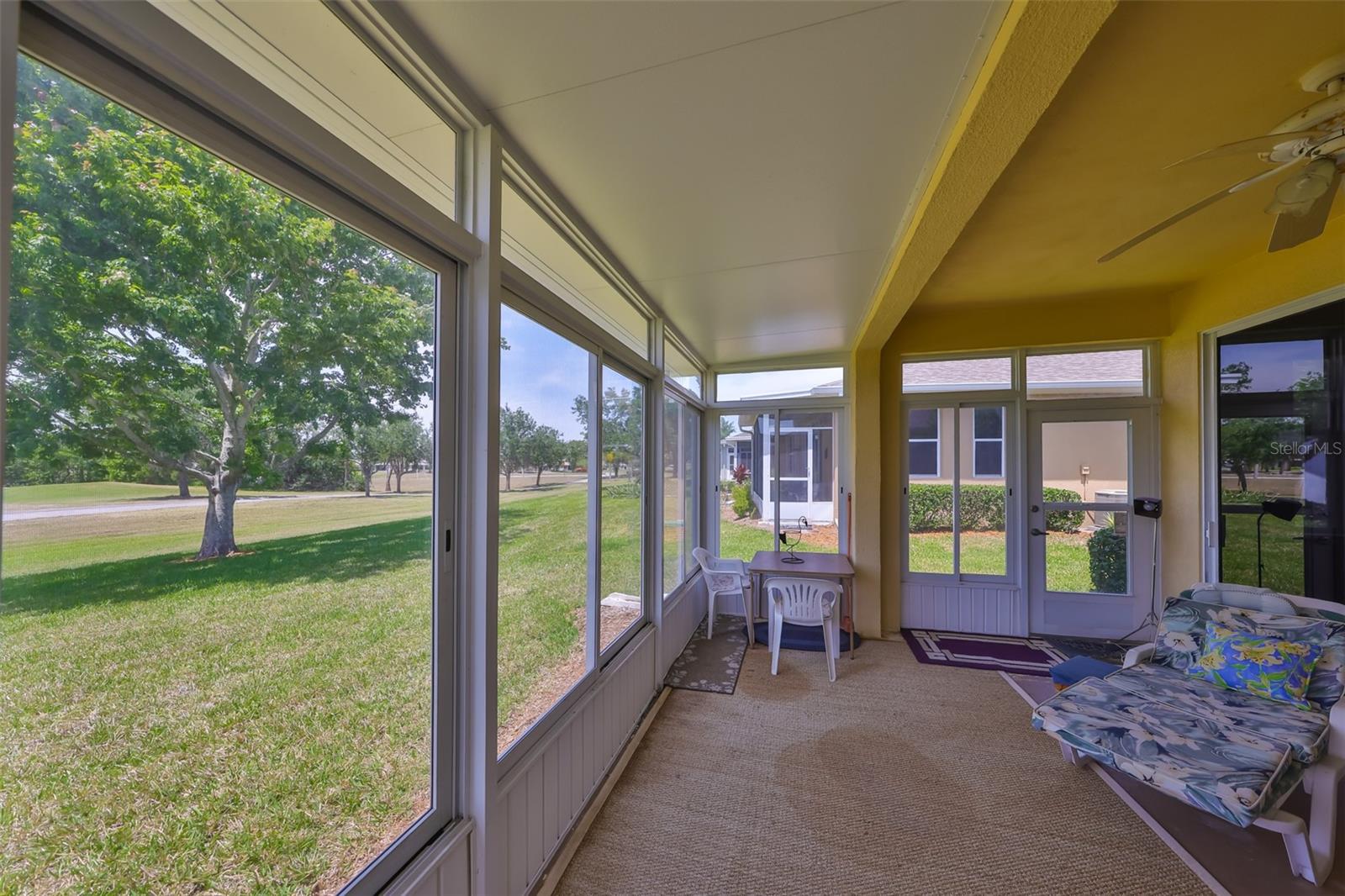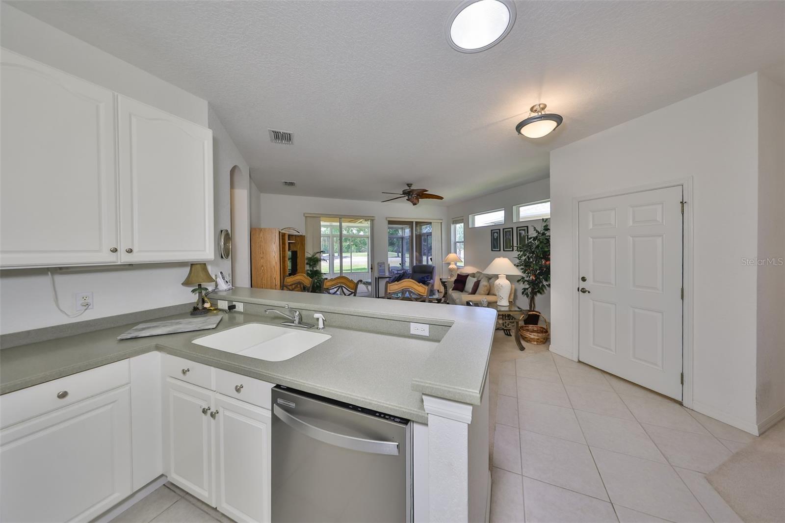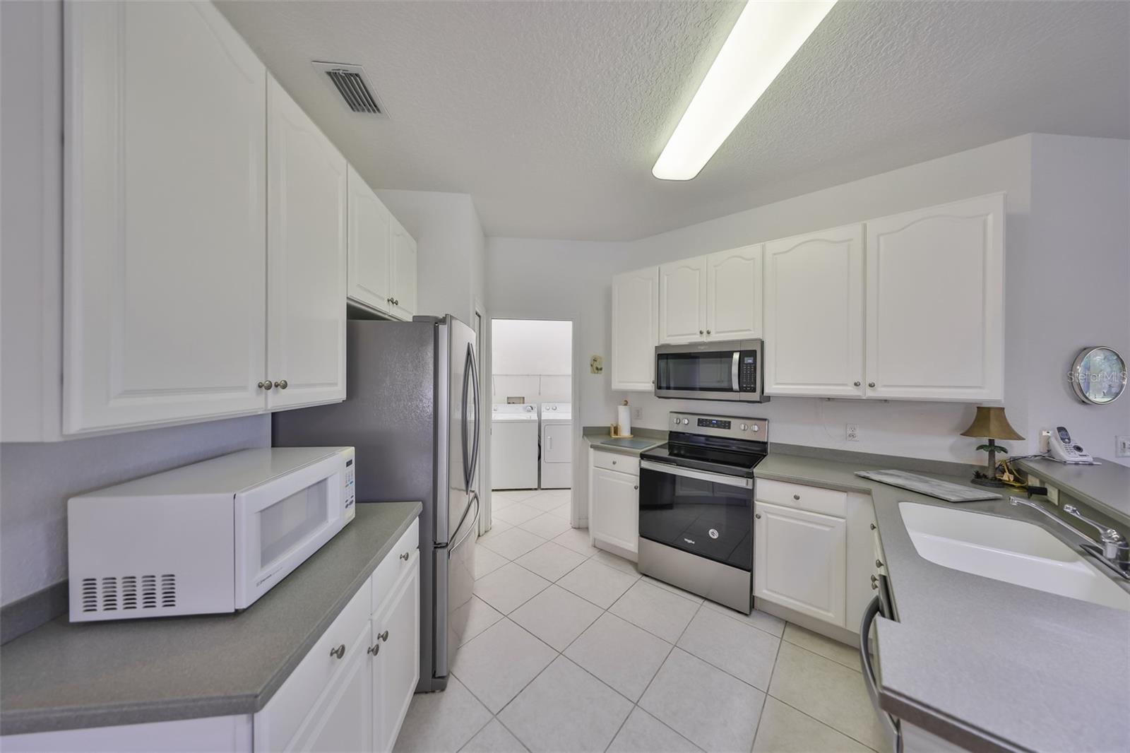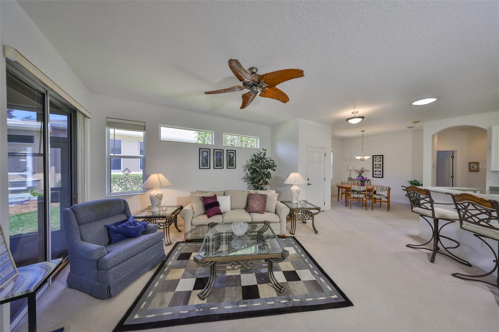 Open, airy and inviting, this 2 bedroom/2 bath/2 car garage home has it all! COMPLETELY FURNISHED AND TURN-KEY. As you enter, you immediately notice the open concept and are invited in to enjoy the spacious living room, dining area, and open kitchen with stainless-steel appliances (2019), 48” cabinets, Corian counters and breakfast bar. This home is not only very functional, but also very comfortable and welcoming. The spacious living room opens through sliding glass doors to an enclosed lanai overlooking the beautiful Sceptor golf course. It's a great place for morning coffee or evening drinks. Indoor laundry room with plumbing already in place for a utility sink, screened front entryway, a water softener, and three Sola tubes, Split bedrooms for the comfort and convenience of guests. The two-car garage has ample room for your car, golf cart, and lots of storage space. Rare treasure for pet owners! This Condo is ALL INCLUSIVE as the COA fee includes an impressive list of amenities such as 24-hour guard, Cable TV, Internet, Pest Control, the community pools, exterior maintenance to include painting and roof replacement, lawn maintenance, trimming of bushes and trees, all water inside & out, recreational facilities, and sewer. Located just south of Tampa, Kings Point is a resort-style active retirement community. Gated, with two beautiful clubhouses, 6 heated pools, an 850-seat theater, an elegant spa, tennis courts, golf course, 2 hot tubs, billiards, several pickleball courts, two state-of-the-art fitness centers, and much, much more. Dozens of social and sports clubs will keep you entertained year-round. This maintenance-free community allows access to doctors, hospitals, shopping, banking, restaurants, and virtually everything you will ever need via a golf cart. Kings Point even offers a free transportation system. Centrally located minutes from an assortment of spectacular beaches, world class fishing, Tampa's convenient cruise port, and Disney World, Kings Point is an award-winning community and one of Florida's best places to live! Don't let this one slip away.