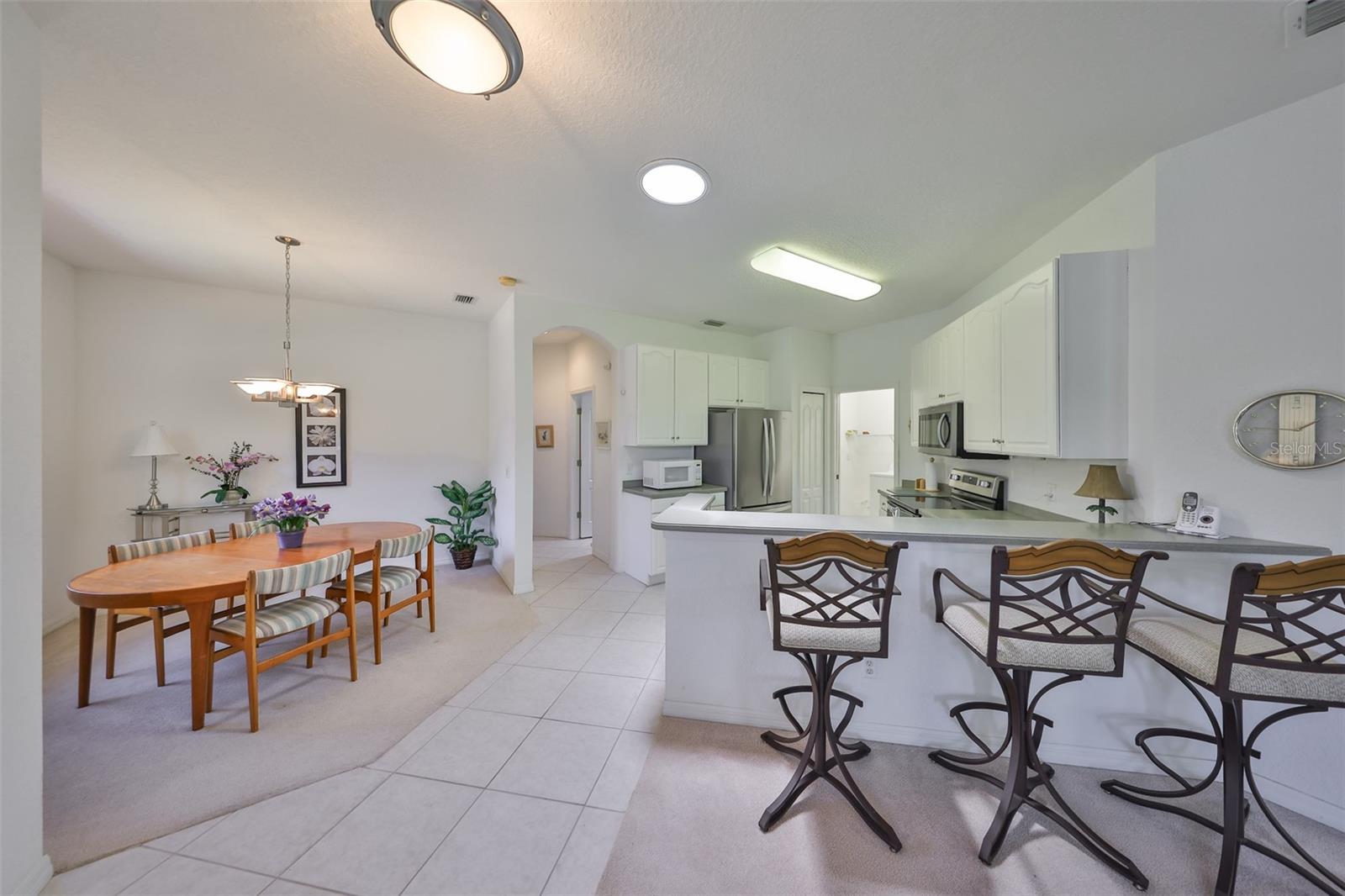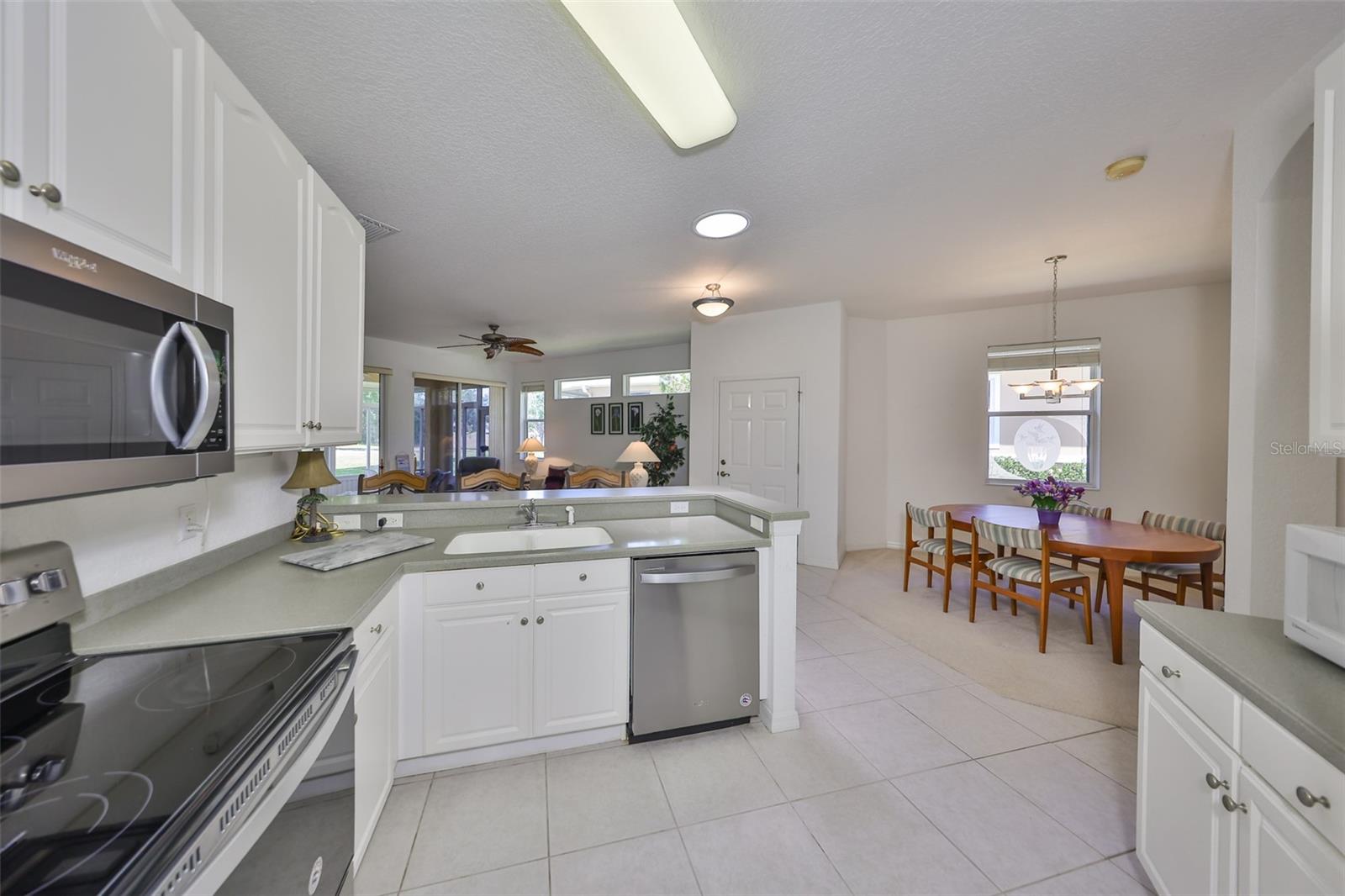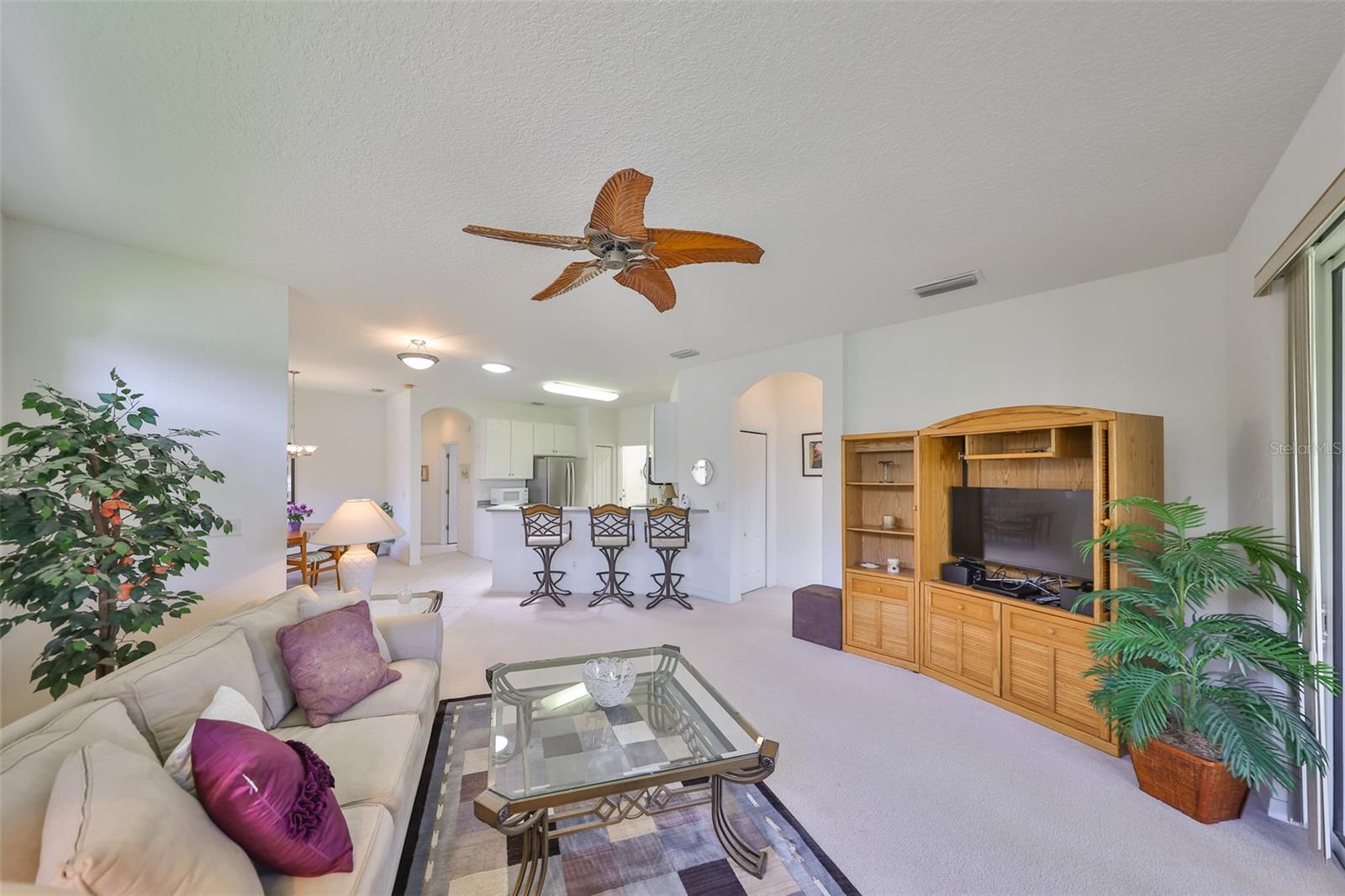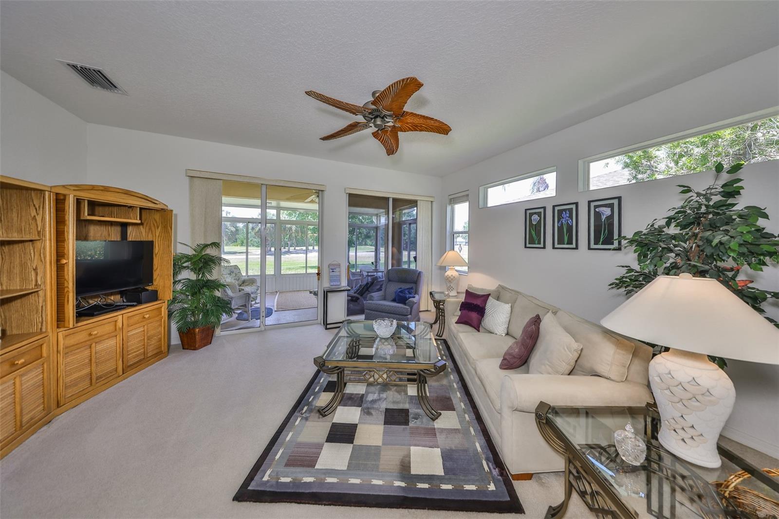 Open, airy and inviting, this 2 bedroom/2 bath/2 car garage home has it all! COMPLETELY FURNISHED AND TURN-KEY. As you enter, you immediately notice the open concept and are invited in to enjoy the spacious living room, dining area, and open kitchen with stainless-steel appliances (2019), 48” cabinets, Corian counters and breakfast bar. This home is not only very functional, but also very comfortable and welcoming. The spacious living room opens through sliding glass doors to an enclosed lanai overlooking the beautiful Sceptor golf course. It's a great place for morning coffee or evening drinks. Indoor laundry room with plumbing already in place for a utility sink, screened front entryway, a water softener, and three Sola tubes, Split bedrooms for the comfort and convenience of guests. The two-car garage has ample room for your car, golf cart, and lots of storage space. Rare treasure for pet owners! This Condo is ALL INCLUSIVE as the COA fee includes an impressive list of amenities such as 24-hour guard, Cable TV, Internet, Pest Control, the community pools, exterior maintenance to include painting and roof replacement, lawn maintenance, trimming of bushes and trees, all water inside & out, recreational facilities, and sewer. Located just south of Tampa, Kings Point is a resort-style active retirement community. Gated, with two beautiful clubhouses, 6 heated pools, an 850-seat theater, an elegant spa, tennis courts, golf course, 2 hot tubs, billiards, several pickleball courts, two state-of-the-art fitness centers, and much, much more. Dozens of social and sports clubs will keep you entertained year-round. This maintenance-free community allows access to doctors, hospitals, shopping, banking, restaurants, and virtually everything you will ever need via a golf cart. Kings Point even offers a free transportation system. Centrally located minutes from an assortment of spectacular beaches, world class fishing, Tampa's convenient cruise port, and Disney World, Kings Point is an award-winning community and one of Florida's best places to live! Don't let this one slip away.