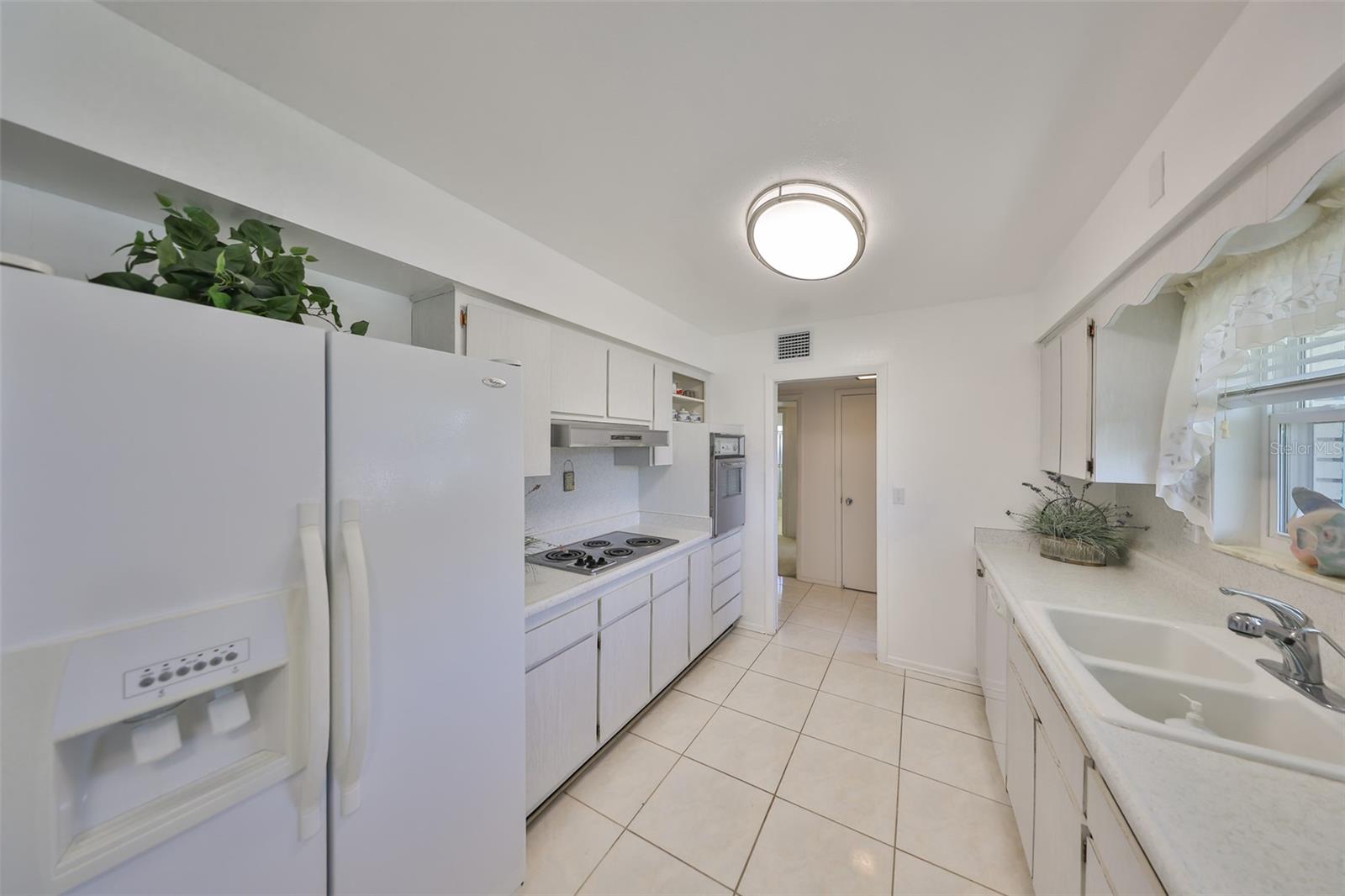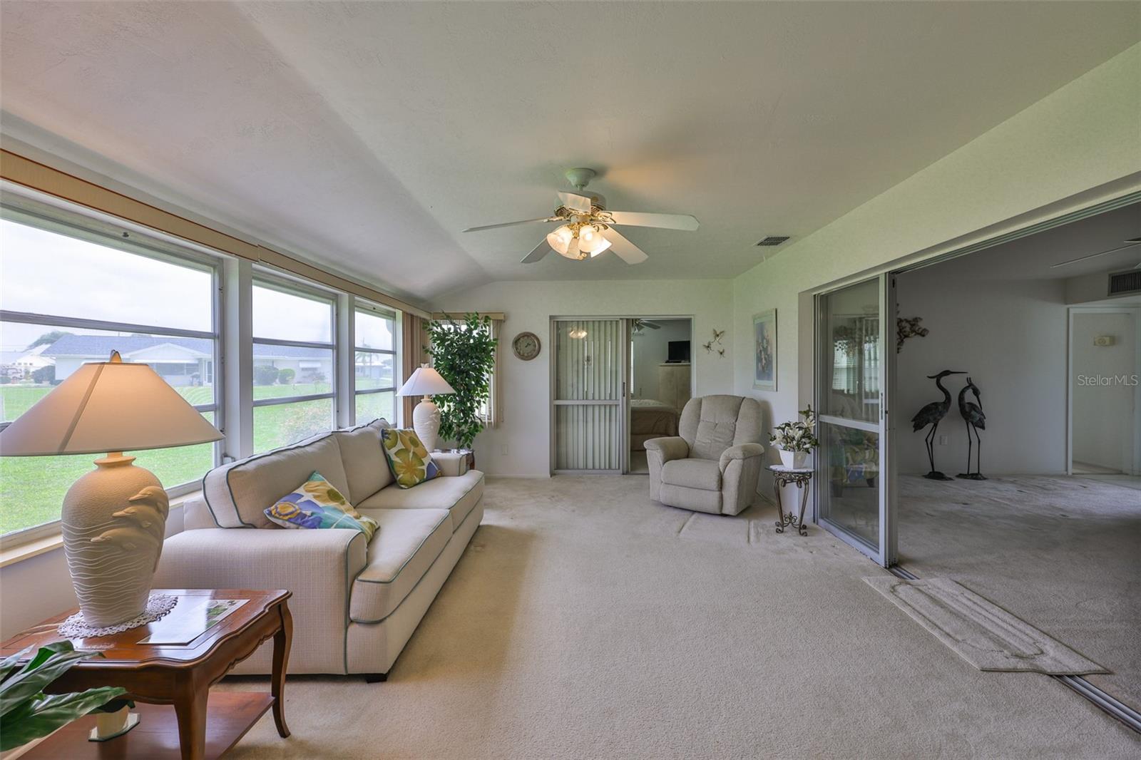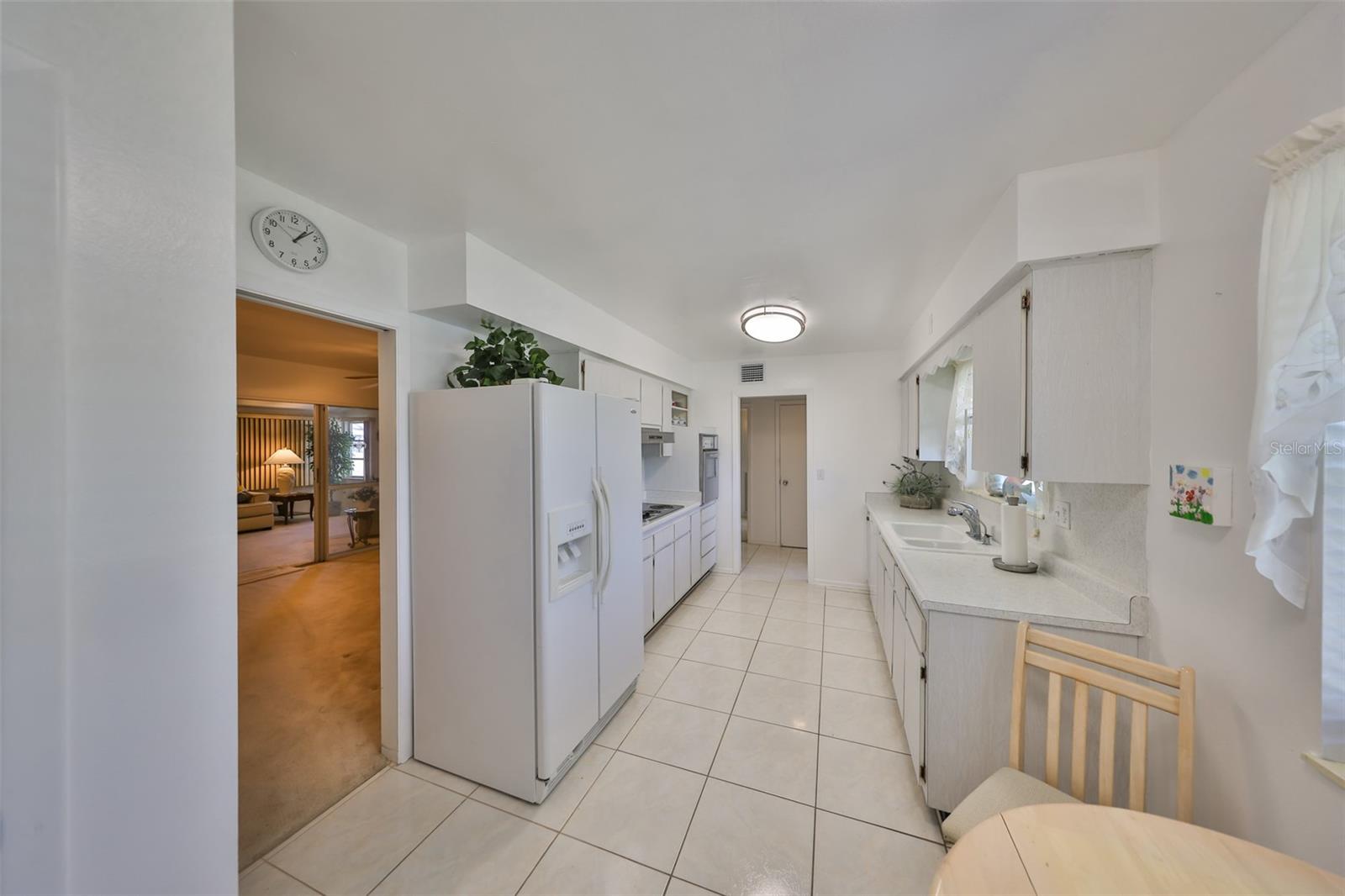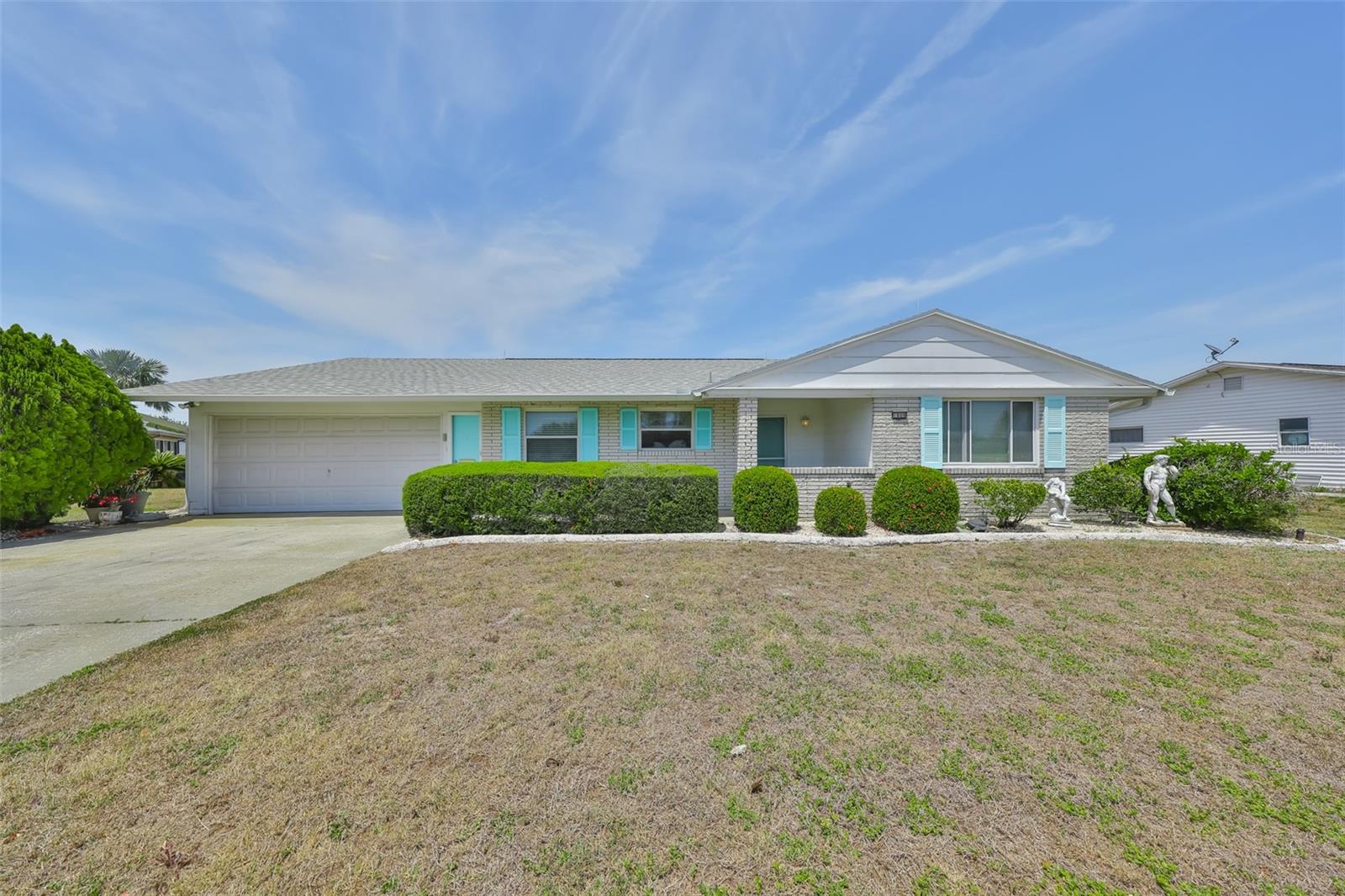 Charming two bedroom, 2 bathroom, 2 car garage home with a huge 13' x 20' bonus room located in golf cart friendly 55+ Sun City Center. New Electrical Panel November 2025! 2023 Roof, 2019 HVAC. No CDD fee, and NOT in a Flood zone. Functional layout with a galley style kitchen with access to the front door, dining/living room, and garage. Large combination living/dining room flowing onto an enclosed Florida room, and huge 13' x 20' laundry/bonus room under air. The Indoor laundry and a utility sink are located in the huge Bonus Room which is under air and can be used as a home gym, craft room, golf cart garage with plenty of room to spare, or whatever your heart desires. Washer and dryer convey. Ready to be updated your way. Carpet throughout the main living areas and bedrooms, and tile in the entryway, kitchen, and bathrooms. Both bathrooms have updated vanities. Primary bathroom has a walk-in shower, guest bathroom has a tub/shower. This home is near to many of the wonderful community amenities that Sun City Center is known for. Sun City Center is an affordable and popular 55+ golf cart friendly community with activities and fun stuff to do, 200+ clubs, golf, tennis, pickle ball, softball, crafts, art, dancing. And a fitness center, indoor lap pool, walking pool as well as a huge outdoor pool and spa. The low quarterly neighborhood HOA fee covers irrigation and lawn mowing. The Sun City Center Community Association membership fee is just $344 per person per year for all of the community amenities, activities, Security Patrol, and FREE First Responder Service. This Golf cart friendly community offers easy access to shopping, banking, post office, medical offices, a hospital, community amenities, public golf courses, and more. Sun City Center is located in Southern Hillsborough County near I-75 and Highways 41 and 301 making it quick and easy to get to Tampa, St. Petersburg or Sarasota or numerous award winning beaches.