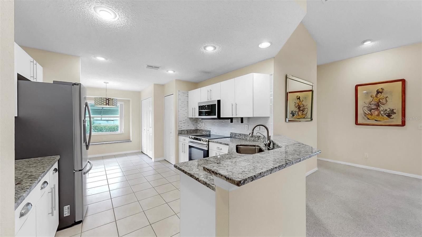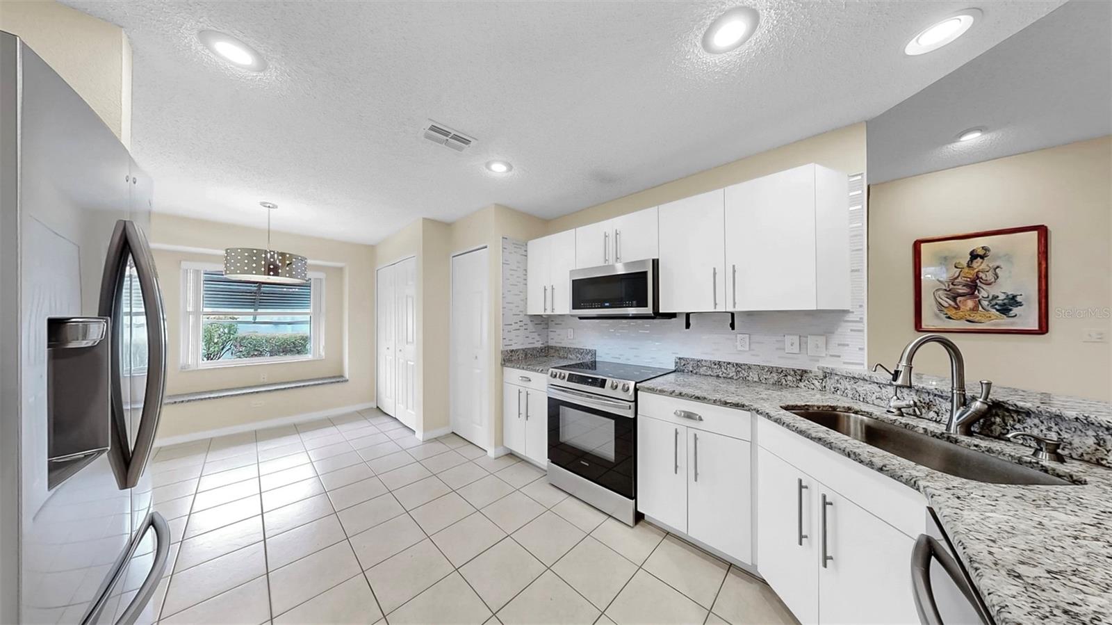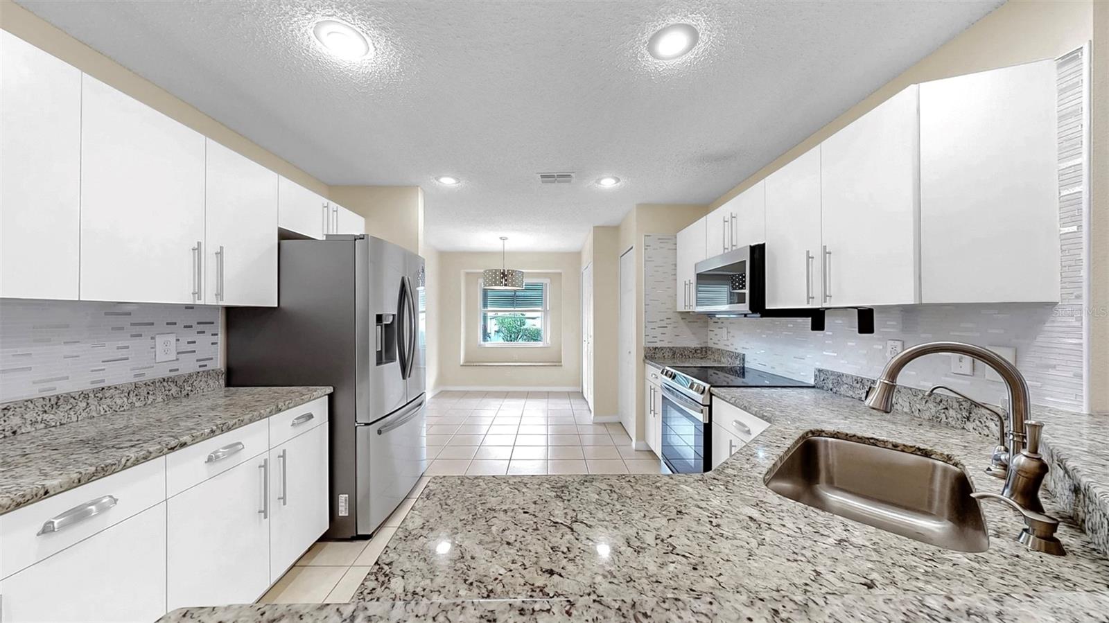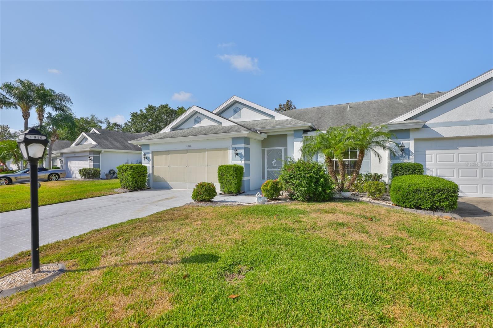This Bright and Sunny Cornell Split Floor Plan boasts 1,810 sqft with 2 bedrooms and 2 full bathrooms. Enter through your screened entrance to the newly painted and SPACIOUS Great Room and Formal Dining Room. Your newly renovated kitchen is complete with granite and newer stainless steel appliances! Just past the breakfast nook with extra storage, you'll enter your very own 2-car garage with even more storage and washer and dryer! The garage is screened to enjoy comfortable Florida evenings while overlooking your quiet Kings Point neighborhood! Back inside, you'll love the location of your primary suite, with freshly painted accent wall and complete with vanity, full bathroom, and large walk-in closet! Your guests will feel comfortable in their stylish bedroom and the remodeled adjacent full bathroom, all the way across the house! The bonus Florida Room is bathed in natural light and exits to your relaxing backyard. BRAND NEW A/C UNIT INSTALLED JUNE 2025!! Comes complete with a HOME WARRANTY for buyers peace of mind. Kings Point is a 55+, gated community with so much to do! Pools, Social and Arts and Crafts Clubs, Theatre, Golf Courses, Fitness Centers, Tennis, Pickleball, just to name a few. Hop on the bus to go shopping in Sun City Center with your friends or enjoy lunch at one of the many nearby restaurants. This resort-style retirement community is conveniently located near interstates, airports, beaches, and theme parks! Welcome Home!