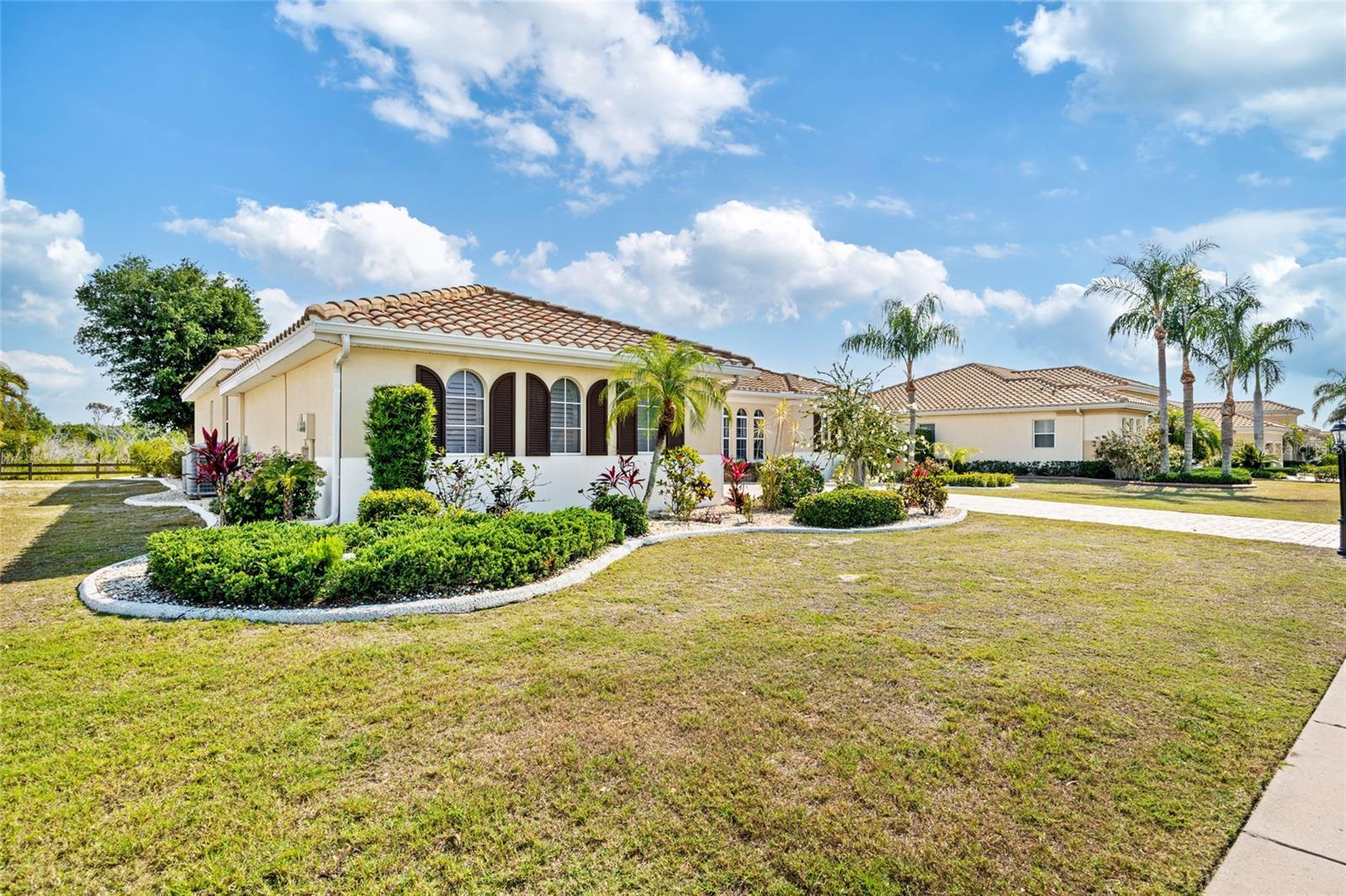 One or more photo(s) has been virtually staged. Located in the exclusive RENAISSANCE GOLF COURSE COMMUNITY for 55+ residents is this expansive 3 bed, 3 bath, 3122 sq foot home with a den, overlooking a lush CONSERVATION AREA that ensures tranquility, scenic views & sounds of nature with NO FUTURE DEVELOPMENT behind you! Privacy was in mind with this thoughtfully designed SPLIT FLOORPLAN boasting a MAIN PRIMARY BEDROOM with cozy SITTING AREA, FRENCH DOORS that open to a pavered 45 ft screened lanai with views of the NATURE PRESERVE & DUAL WALK-IN CLOSETS for all your wares. The luxurious PRIMARY ENSUITE BATH with DUAL SINKS & MAKEUP VANITY can be your oasis as you soak in the large GARDEN TUB or use your ROMAN STYLE ZERO ENTRY GLASS BLOCK ENCLOSED TILED SHOWER. On the opposite side of the home, you'll find TWO SPACIOUS BEDROOMS connected by a JACK-AND-JILL BATHROOM, as well as a THIRD FULL BATH with lanai access making it ideal as a future pool bath. Entertaining is a breeze with an OPEN CONCEPT KITCHEN boasting 42" SOLID CHERRY WOOD CABINETS, GRANITE COUNTERS, large BREAKFAST BAR, STAINLESS STEEL APPLIANCES, EAT-IN KITCHEN AREA, SLIDING DOORS to the lanai, and an electric cooktop that can be SWITCHED OUT TO NATURAL GAS as the home is plumbed for it. The FORMAL DINING ROOM with GLASS CHANDELIER is the perfect touch for a more intimate setting for hosting guests. Adding to the ambiance of the home is custom PLANTATION SHUTTERS on every window, CROWN MOLDING, TRAY CEILINGS, CHANDELIERS, PENDANT LIGHTING & a custom lit ART PIECE depicting the beauty of the outdoor nature in your backyard. Allow the gentle Florida breezes to come through when you completely open the SLIDING DOORS in the GREAT ROOM that extend your living out to the lanai and peaceful views of the NATURE PRESERVE. There is even plenty of room for your Florida toys or golf cart in the oversized 3-CAR GARAGE! This home is a must-see for those seeking a LUXURIOUS LIFESTYLE in a peaceful GOLF COURSE COMMUNITY in Sun City Center that was ranked the 2024 #1 RETIREMENT COMMUNITY! Don't miss your opportunity to own one of the few homes in the area that offers a perfect blend of LUXURY, NATURE & COUNTRY CLUB LIVING. Schedule a showing today and become the next homeowner to experience the exceptional lifestyle with it's RESTAURANTS, full-service SPA, state of the art FITNESS CENTER, indoor WALKING TRACK, RESORT STYLE POOL, various CLUBS & SOCIAL ACTIVITIES. Buyer & Buyer's Agent are responsible for verifying all listing information.