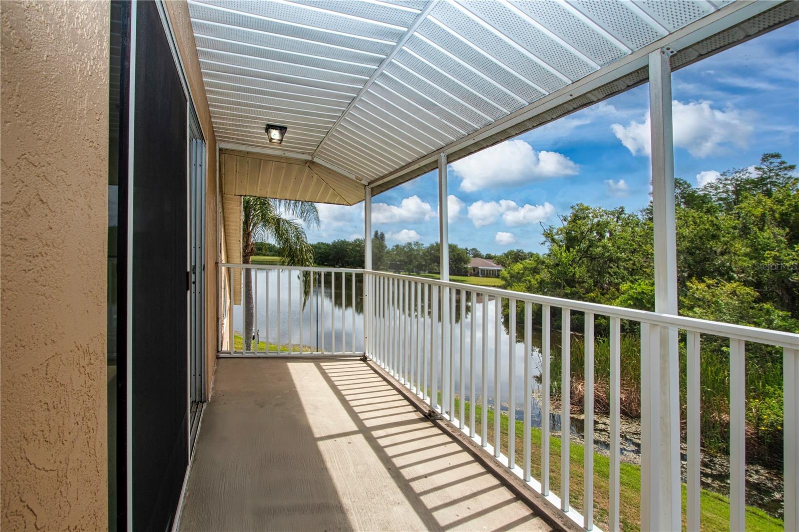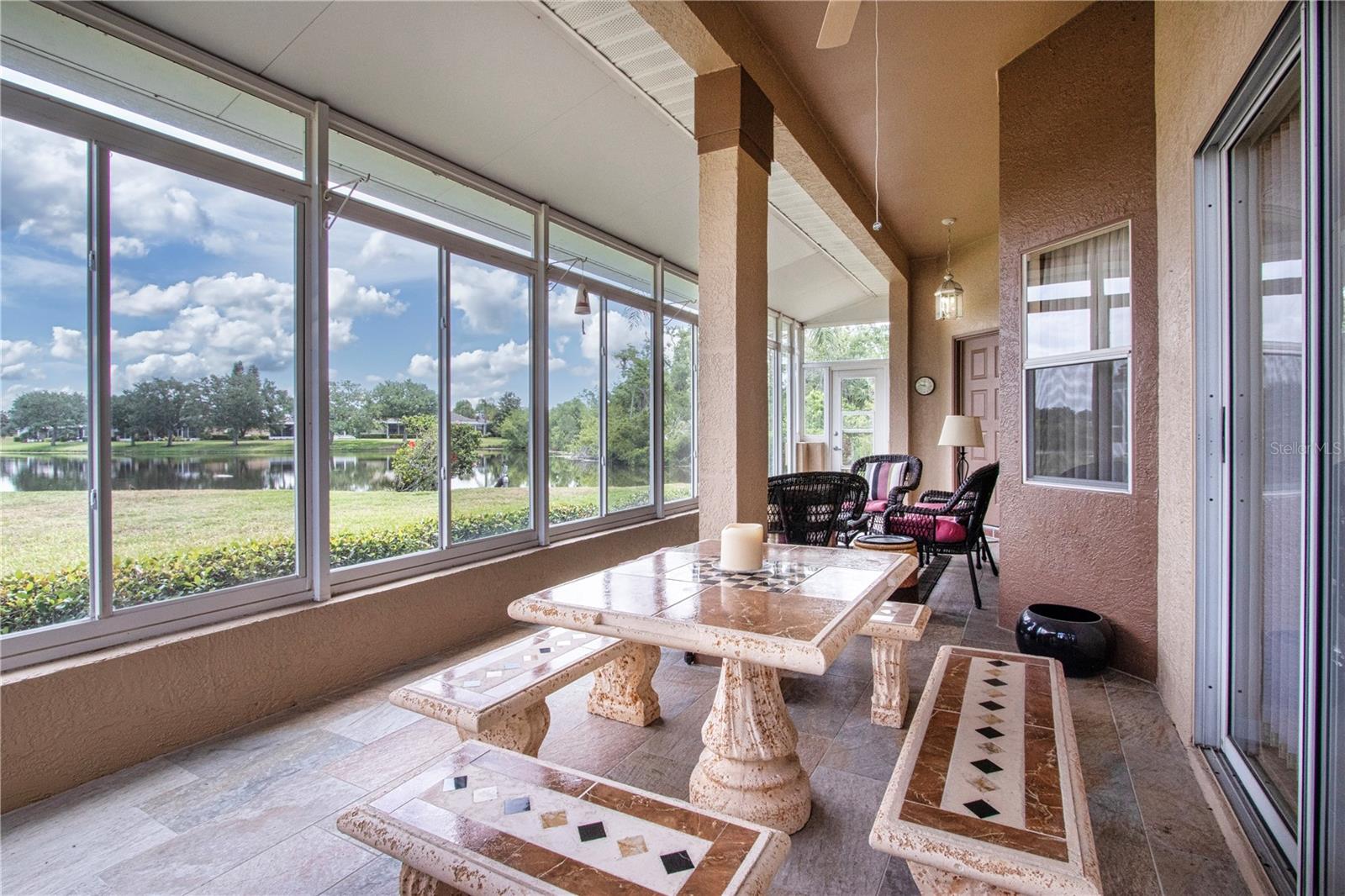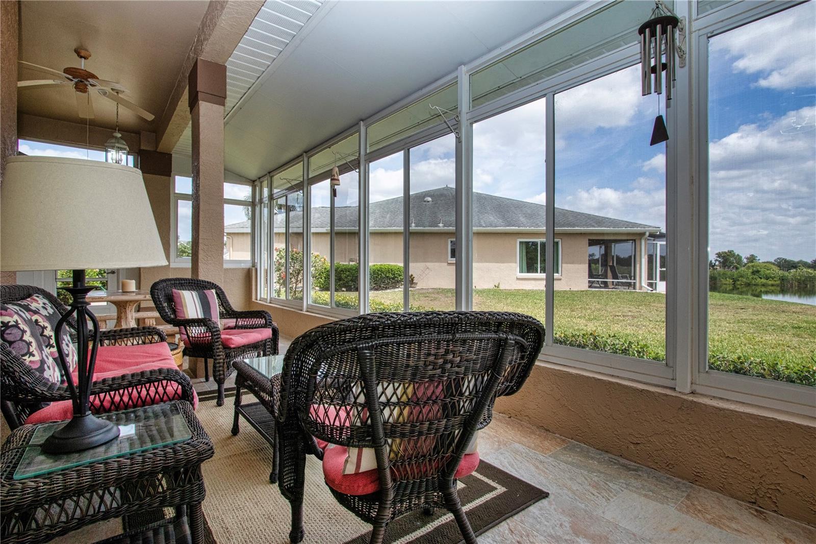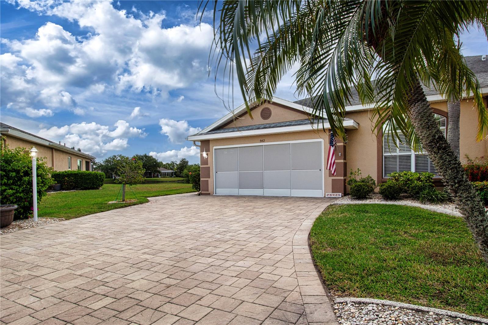 Welcome to this modified Harvard floor plan home in the retirement community of Kings Point in Sun City Center, FL. This property is being sold by the original owner who had changes make during construction and the original blueprints are available to the new owners. This lovely home is being sold totally furnished including not only the furniture but also the dishes, pots and pans, linens and all artwork making this a perfect home for snowbirds so you can move right in and also for the buyers who plan on living here all year round and don’t want the huge expense of shipping furniture. This 2 story home features 1,984 sq. ft. of airconditioned space, 2 bedrooms, 2 ½ baths and a second-floor loft. The home is situated at the end of a cul-de-sac with a great view of the adjacent lake. As you approach the home you are greeted with a paver driveway and walkway that leads to a large, enclosed lanai with a tile floor and a view that goes the entire length of the lake with a golf course in the distance. The lanai windows are screened so you can open them up and enjoy Florida’s great weather. Upon entering the house, you come into the large great room that is bright and airy because of a large picture window and 3 stained glass windows. The room also features cathedral ceilings, and tile floors laid on the diagonal. This area is open a to a beautiful eat-in kitchen with white cabinets, granite counter tops and backsplash, stainless steel appliances and a built-in desk area with glass fronted doors. The oversized master suite can easily accommodate king size furniture and space for a relaxing seating area. There is a large picture window that brings in an abundance of natural light and allows you to watch some of Florida’s feathered friends. You will find 2 walk-in closets giving you plenty of space to store his and her clothing. The master bath has a custom tiled corner shower, along with 2 separate vanities and a tub. This space offers you a relaxing getaway after a day of golf, pickle ball or a visit to the beach. The loft area is perfect for a craft room, office and there are sliding glass doors that lead to a private balcony. If an additional bedroom is needed this space also has a half bath and a closet. The roof is maintained by the condominium association, the electrical is up to date, new plumbing was installed in April 2025 and the air conditioner was installed in 2015 so there will be no worry about a 4-Point inspection. This is truly a wonderful property just waiting for someone to make it their new home. Call your realtor today to see this property for yourself before it’s too late.