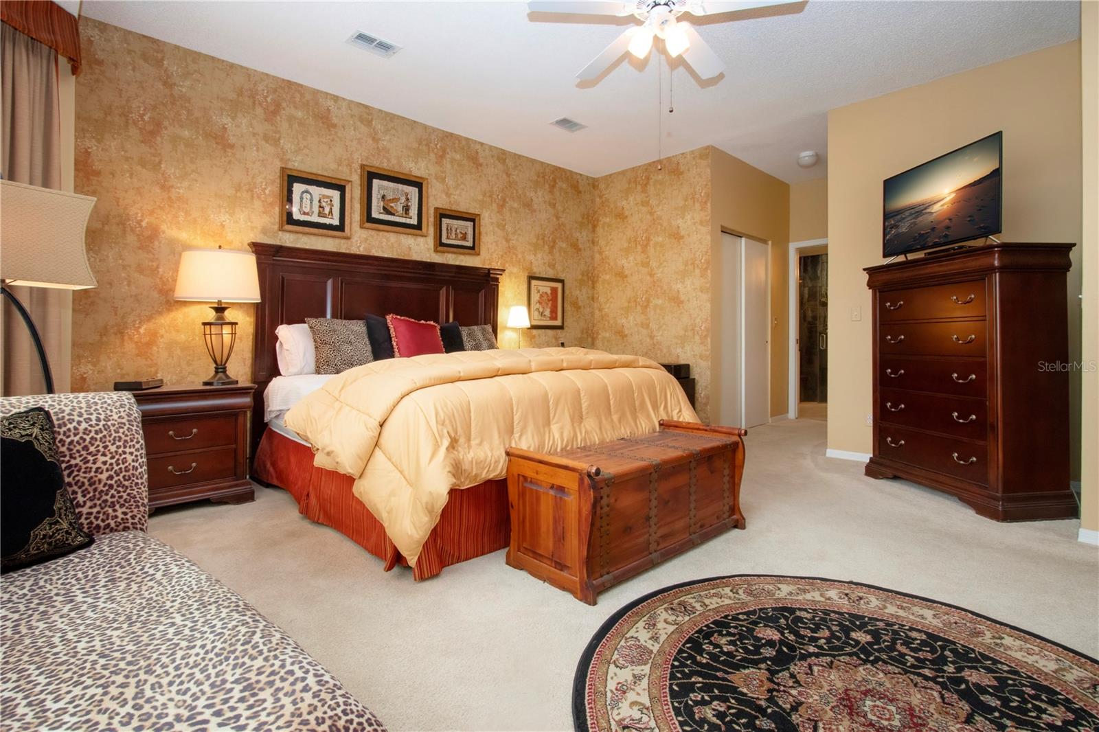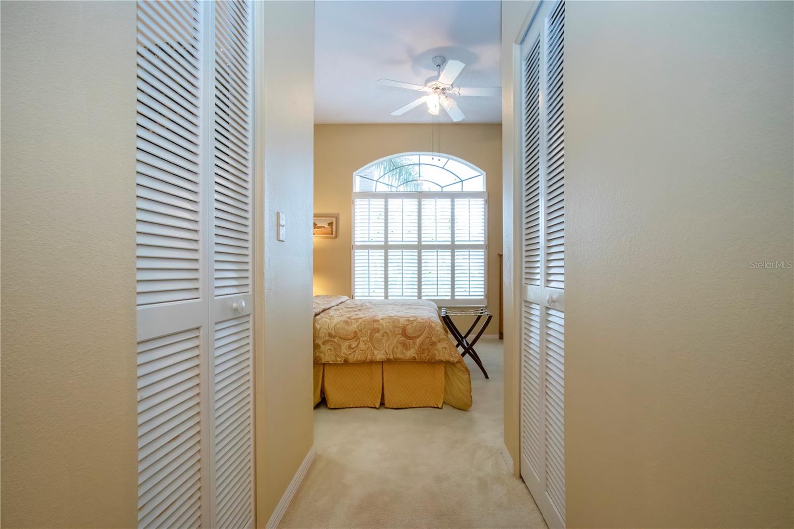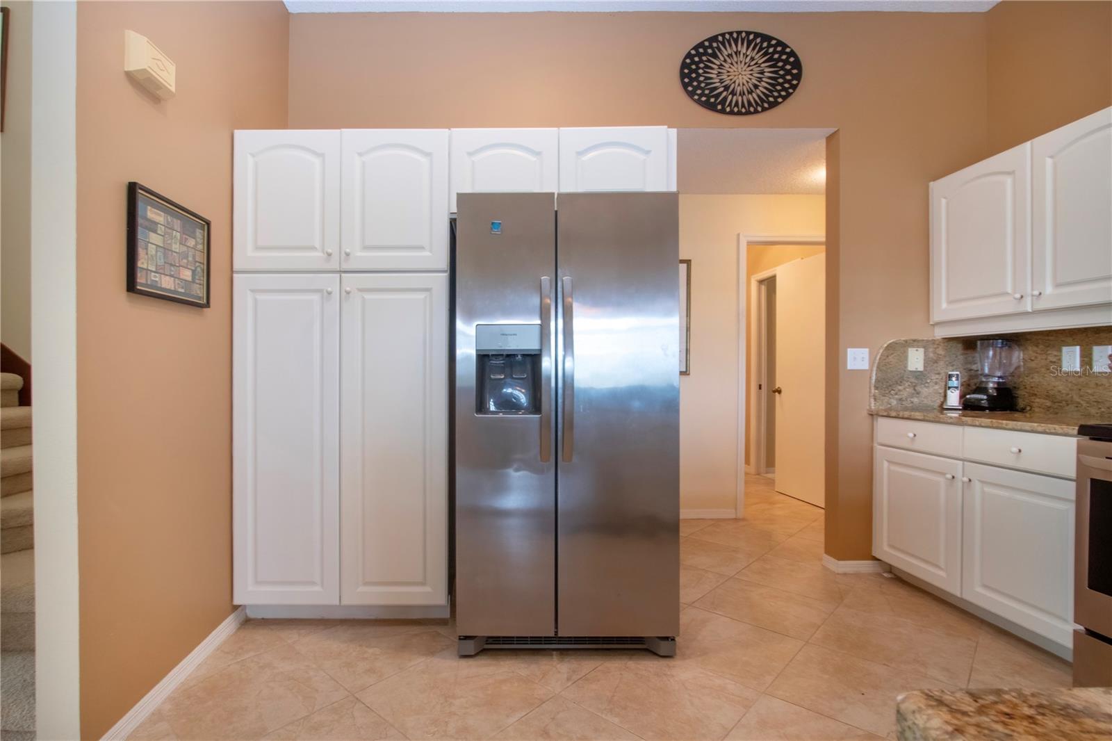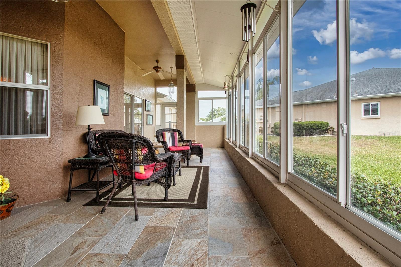 Welcome to this modified Harvard floor plan home in the retirement community of Kings Point in Sun City Center, FL. This property is being sold by the original owner who had changes make during construction and the original blueprints are available to the new owners. This lovely home is being sold totally furnished including not only the furniture but also the dishes, pots and pans, linens and all artwork making this a perfect home for snowbirds so you can move right in and also for the buyers who plan on living here all year round and don’t want the huge expense of shipping furniture. This 2 story home features 1,984 sq. ft. of airconditioned space, 2 bedrooms, 2 ½ baths and a second-floor loft. The home is situated at the end of a cul-de-sac with a great view of the adjacent lake. As you approach the home you are greeted with a paver driveway and walkway that leads to a large, enclosed lanai with a tile floor and a view that goes the entire length of the lake with a golf course in the distance. The lanai windows are screened so you can open them up and enjoy Florida’s great weather. Upon entering the house, you come into the large great room that is bright and airy because of a large picture window and 3 stained glass windows. The room also features cathedral ceilings, and tile floors laid on the diagonal. This area is open a to a beautiful eat-in kitchen with white cabinets, granite counter tops and backsplash, stainless steel appliances and a built-in desk area with glass fronted doors. The oversized master suite can easily accommodate king size furniture and space for a relaxing seating area. There is a large picture window that brings in an abundance of natural light and allows you to watch some of Florida’s feathered friends. You will find 2 walk-in closets giving you plenty of space to store his and her clothing. The master bath has a custom tiled corner shower, along with 2 separate vanities and a tub. This space offers you a relaxing getaway after a day of golf, pickle ball or a visit to the beach. The loft area is perfect for a craft room, office and there are sliding glass doors that lead to a private balcony. If an additional bedroom is needed this space also has a half bath and a closet. The roof is maintained by the condominium association, the electrical is up to date, new plumbing was installed in April 2025 and the air conditioner was installed in 2015 so there will be no worry about a 4-Point inspection. This is truly a wonderful property just waiting for someone to make it their new home. Call your realtor today to see this property for yourself before it’s too late.