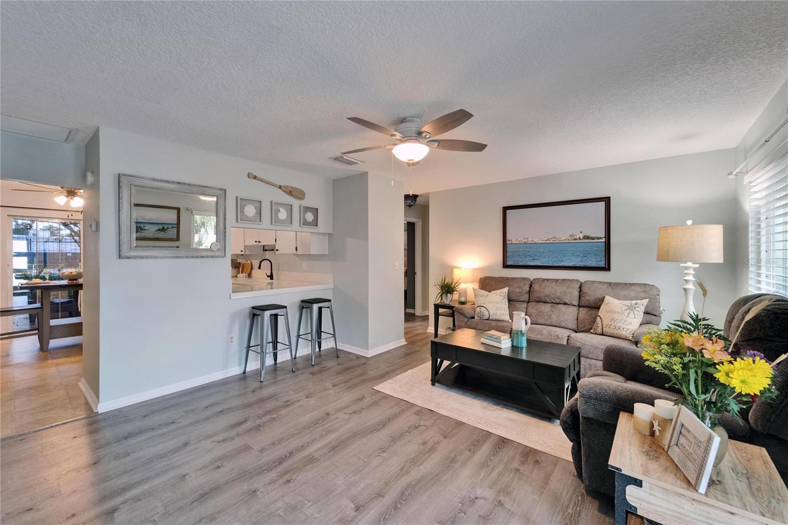Experience the perfect blend of comfort, convenience, and energy efficiency in this desirable end-unit villa located in Sun City Center’s highly sought-after 55+ community. A high-quality, impact-rated glass front door enhances both style and functionality, bringing in natural light while adding durability. This home features a functional layout with an easy flow between the kitchen and living area. Sliding glass doors from both the kitchen and the owner’s suite open to a large, screened lanai with bamboo shades—ideal for relaxing or entertaining. The kitchen provides excellent counter space for meal prep and gatherings. Thoughtful updates include solar panels, attic insulation, and ceiling fans for improved energy efficiency. Modern touches such as vinyl and tile flooring, updated bathrooms with a glass-enclosed walk-in shower, fresh interior paint, and a new front door make this home move-in ready with lasting value. Enjoy cost-efficient living with exterior care included, and take advantage of Sun City Center’s vibrant amenities, including golf, clubhouses, fitness centers, swimming pools, a nearby health club, and a wide variety of social clubs and activities such as pickleball, lawn bowling, volleyball, and horseshoes. Conveniently located near shopping, dining, medical facilities, and recreation, this home offers the best of Florida living. Homes with efficiency upgrades like these are rare—come see it for yourself. Monthly solar lease of approximately $103 transfers to the new owner. Average TECO electric bill is approximately $25/month. Seller requests strongest offers today. Buyer must qualify to assume solar loan.