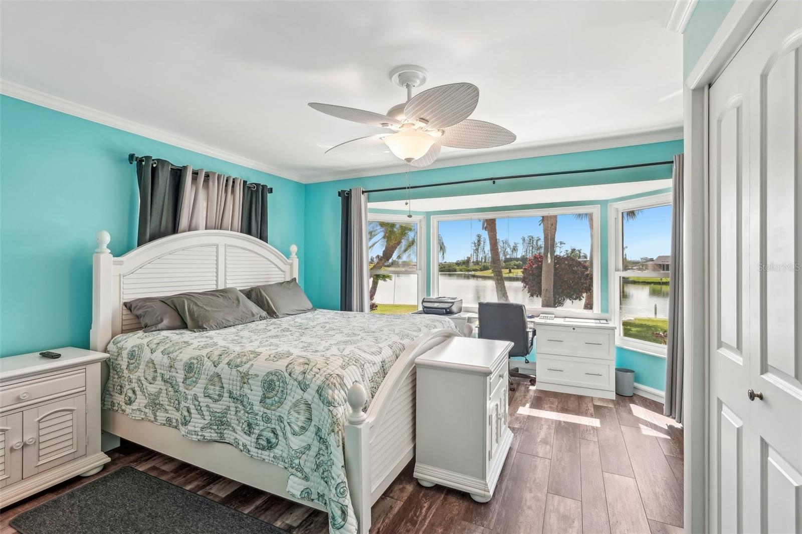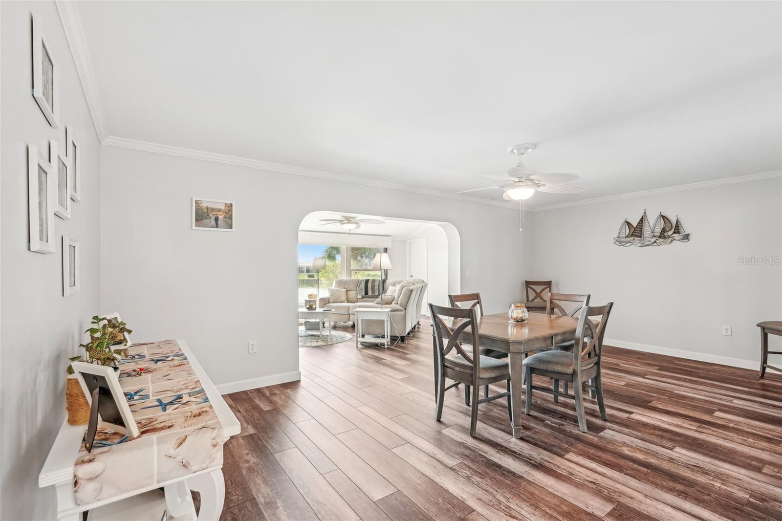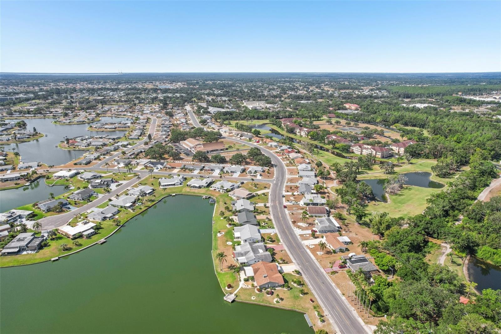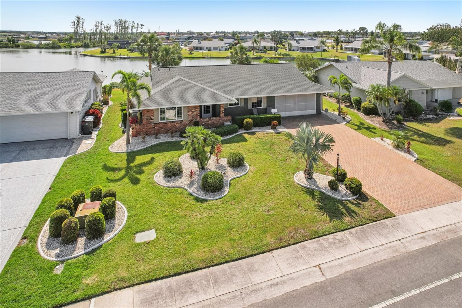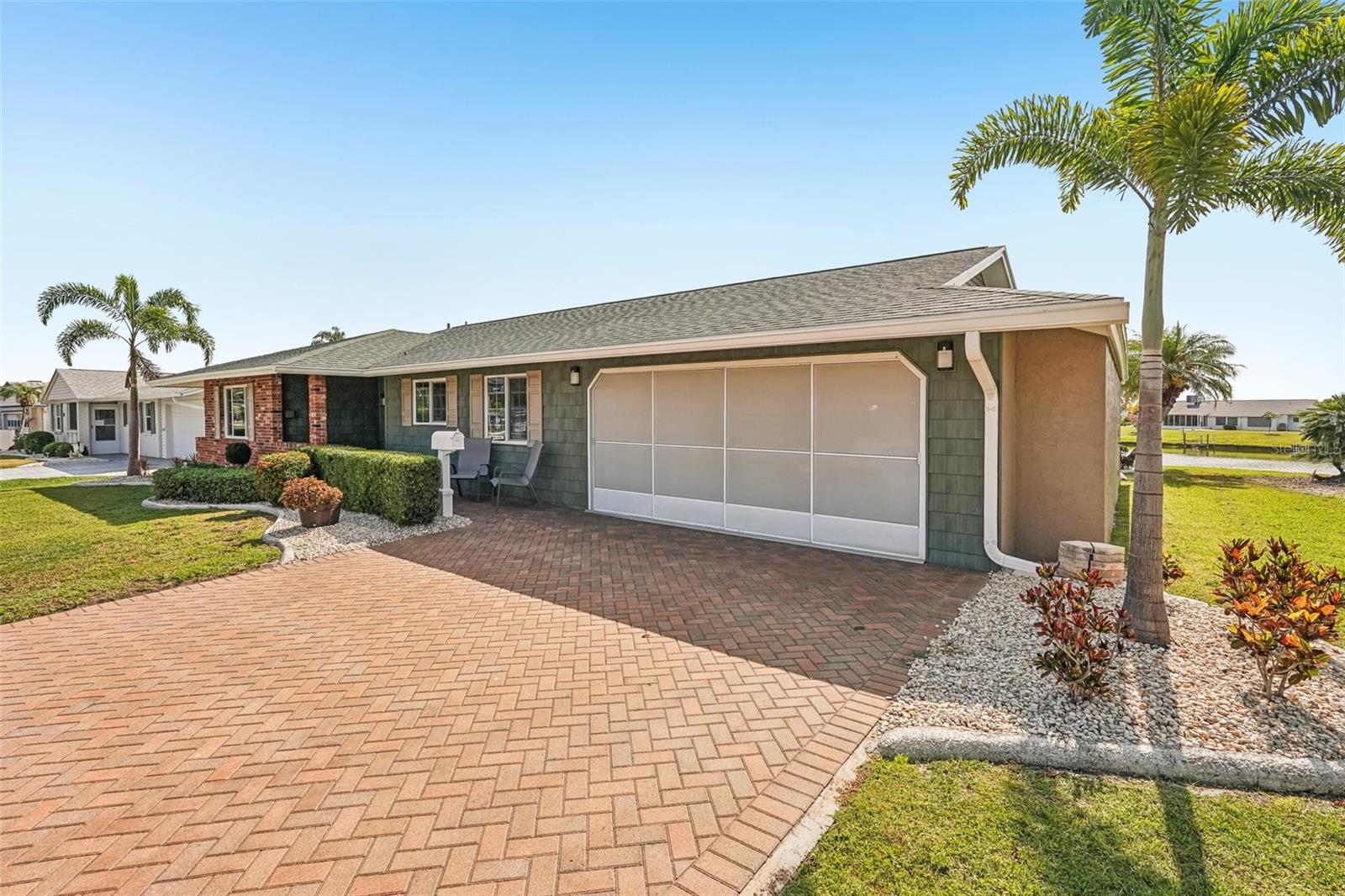 Welcome to this beautifully updated 2-bedroom, 2-bathroom waterfront home in the desirable 55+ community of Del Webb, Sun City Center. Step inside to stunning panoramic water views and gorgeous laminate wood-look flooring that flows throughout the home. The bright, open layout features a spacious kitchen with solid countertops, rich dark wood cabinets, and stainless steel appliances. The primary suite includes charming bay windows, dual closets, and an en suite bath. Enjoy peaceful mornings on the front porch and relaxing evenings on the back patio which will soon be a screened in lanai, being installed June 2025. Additional highlights include a large utility/storage room conveniently located off the kitchen and garage. Plus, build your own dock and bring your boat for peaceful rides around the lake! You’ll love Sun City Center with its amazing facilities, pools, and clubs just waiting for you to enjoy. Nestled between Sarasota and Tampa, this location offers a convenient ride to airports, great shopping, dining, and professional entertainment. With easy access to award-winning, sandy beaches, this home provides the best of all worlds without the stress of big city life. Leave it all behind and enjoy your new life here in one of Florida’s most affordable 55-and-better communities! This home combines style, comfort, and the relaxed Florida lifestyle you’ve been looking for!