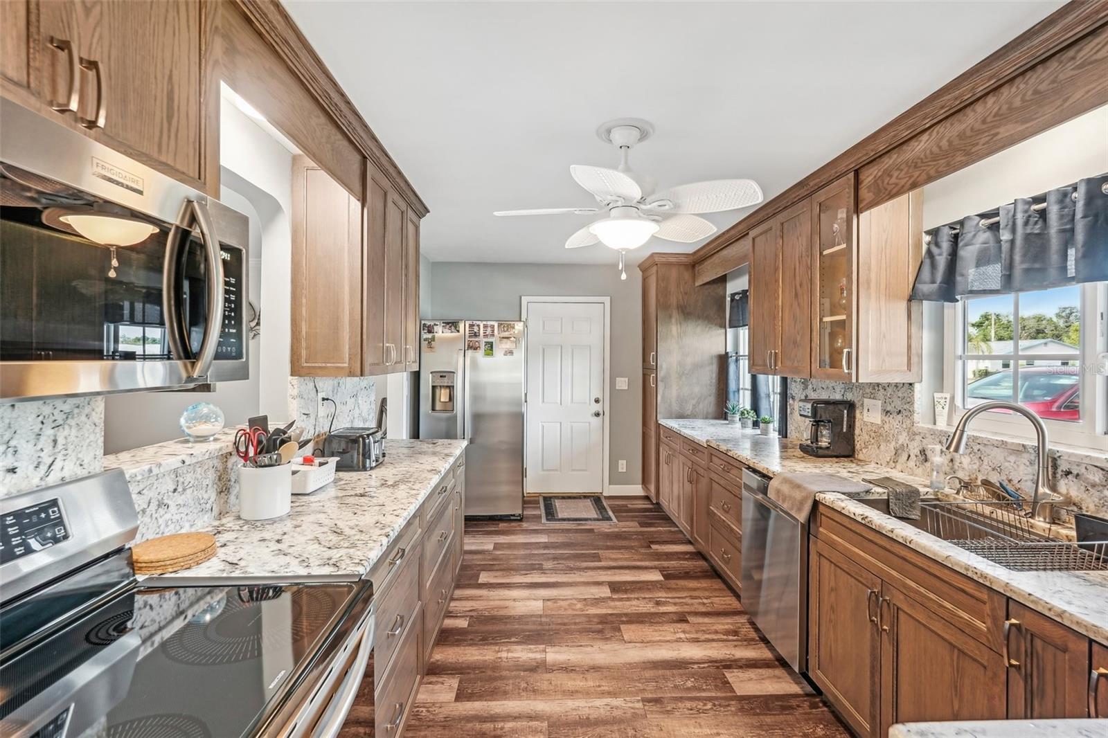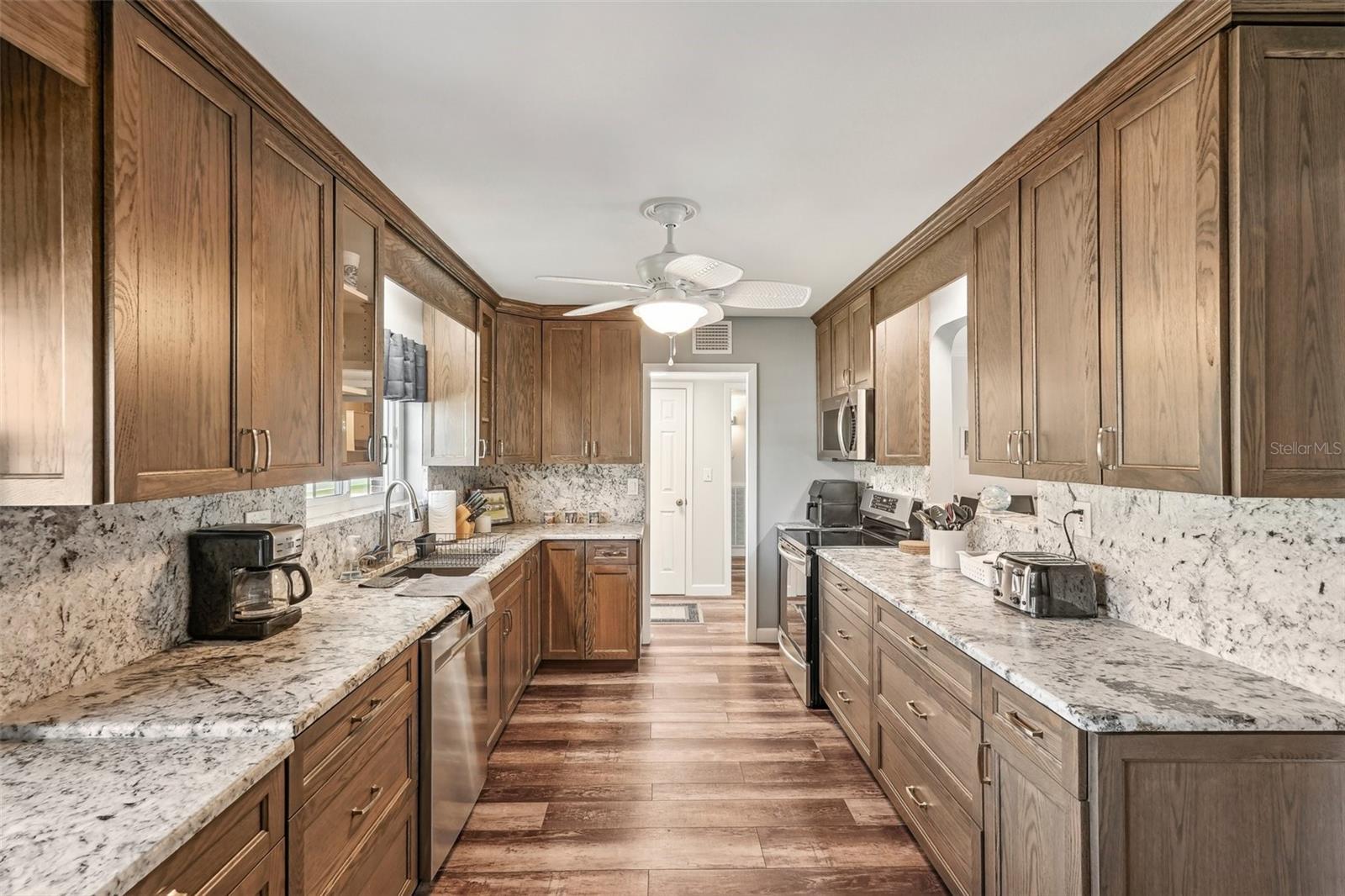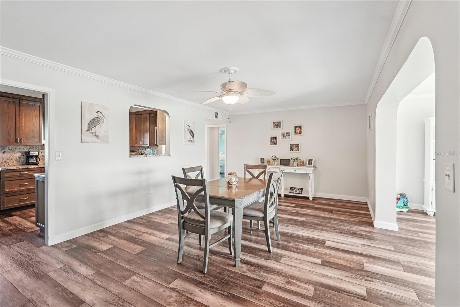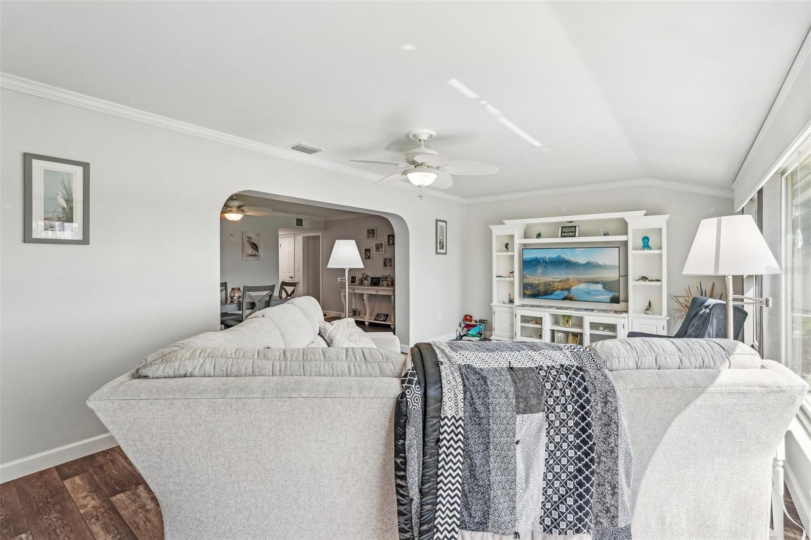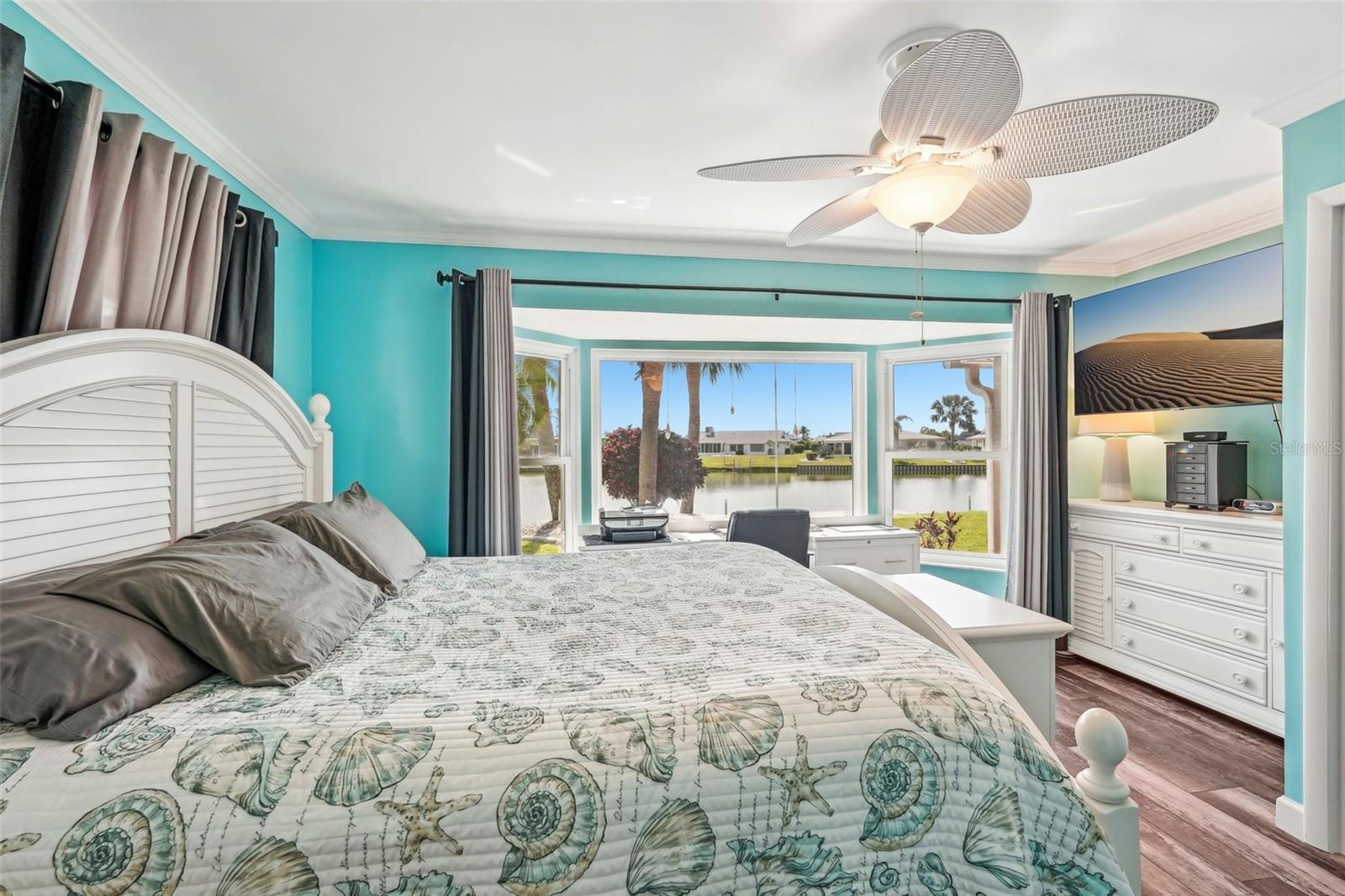 Welcome to this beautifully updated 2-bedroom, 2-bathroom waterfront home in the desirable 55+ community of Del Webb, Sun City Center. Step inside to stunning panoramic water views and gorgeous laminate wood-look flooring that flows throughout the home. The bright, open layout features a spacious kitchen with solid countertops, rich dark wood cabinets, and stainless steel appliances. The primary suite includes charming bay windows, dual closets, and an en suite bath. Enjoy peaceful mornings on the front porch and relaxing evenings on the back patio which will soon be a screened in lanai, being installed June 2025. Additional highlights include a large utility/storage room conveniently located off the kitchen and garage. Plus, build your own dock and bring your boat for peaceful rides around the lake! You’ll love Sun City Center with its amazing facilities, pools, and clubs just waiting for you to enjoy. Nestled between Sarasota and Tampa, this location offers a convenient ride to airports, great shopping, dining, and professional entertainment. With easy access to award-winning, sandy beaches, this home provides the best of all worlds without the stress of big city life. Leave it all behind and enjoy your new life here in one of Florida’s most affordable 55-and-better communities! This home combines style, comfort, and the relaxed Florida lifestyle you’ve been looking for!