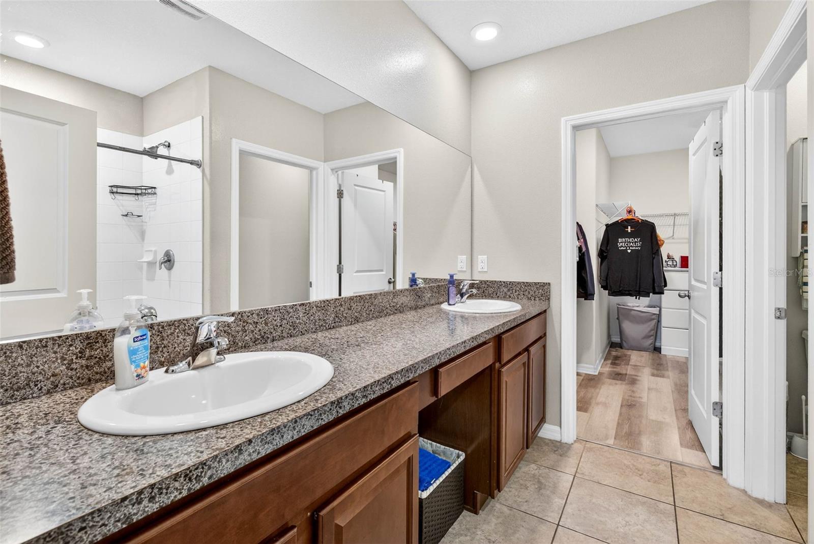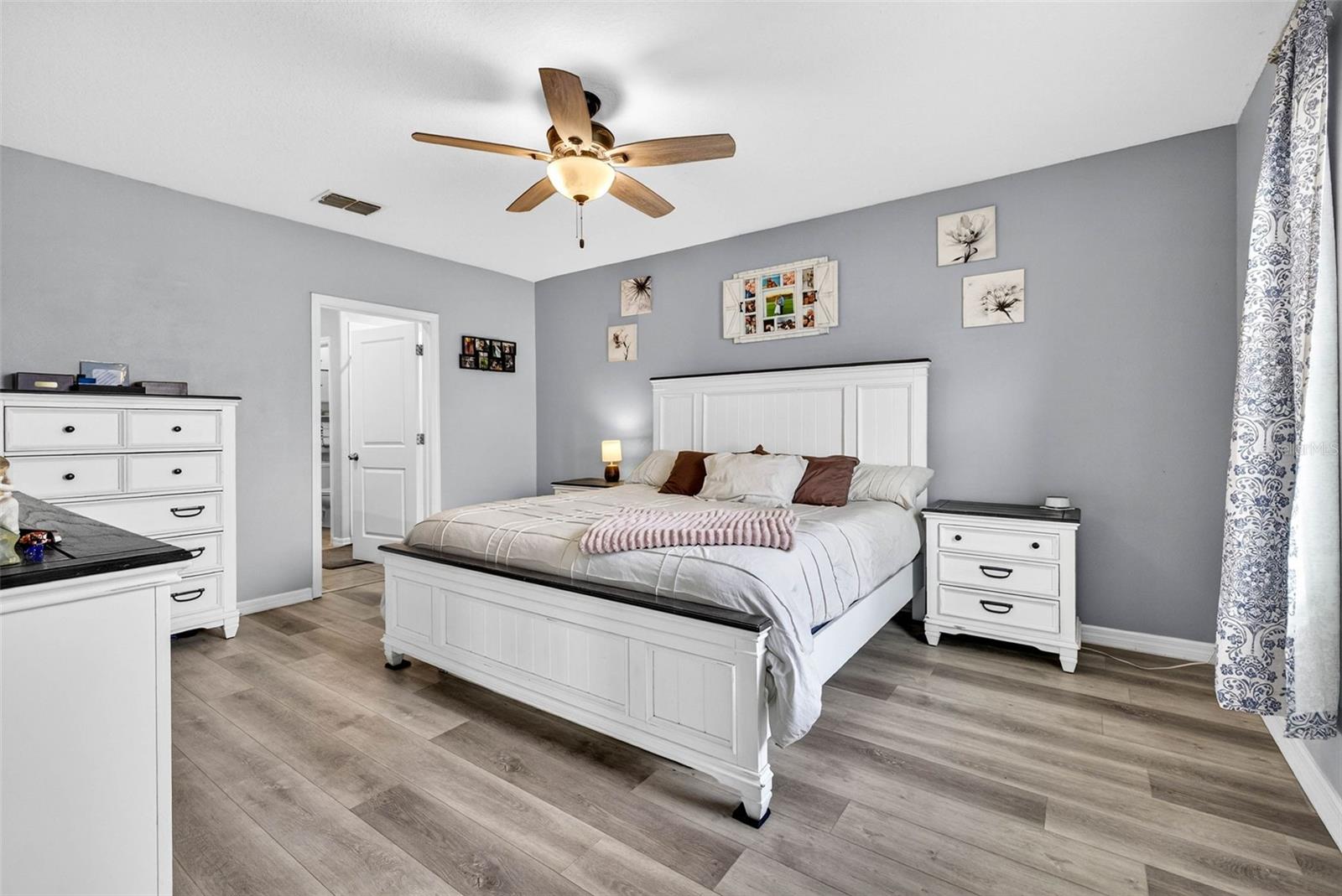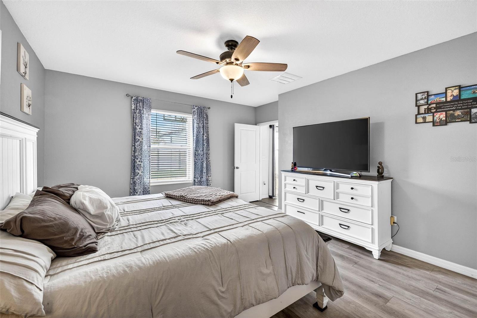 You will love living in the Columbia. Five bedroom two and a half bathrooms with the primary bedroom on the first floor and four upstairs with a large loft. Plenty of upgrades with ceramic tile thru out the living room, kitchen and dining area, ceiling fans in all bedrooms. New wood floors in the primary bedroom. Granite looking counters and 42-inch cabinets in the kitchen. Wider driveway with pavers on each side, fenced in backyard. Great neighborhood with tennis courts, basketball courts and community pool. Easy commute to Tampa or Bradenton/Sarasota.