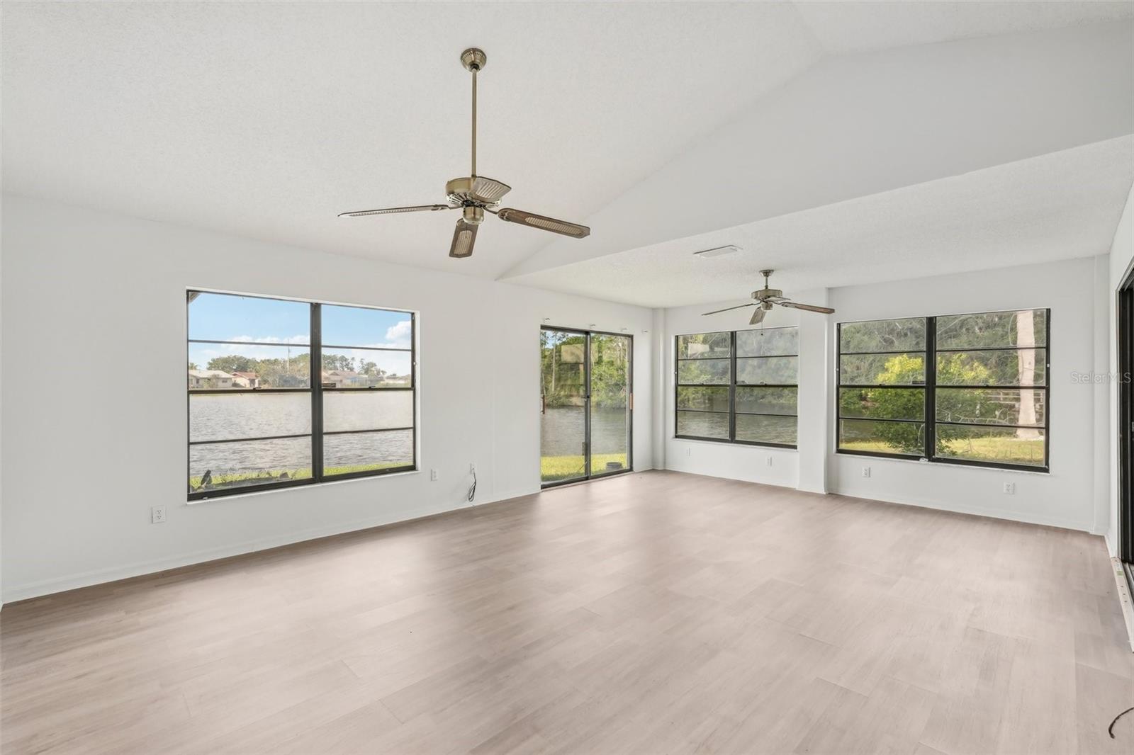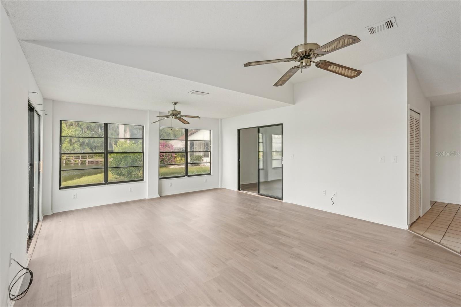 Welcome to this stunning 2-bedroom, 2-bath waterfront home tucked away on a quiet cul-de-sac street! Enjoy peaceful water views from nearly every room, with tall ceilings, expansive sliders, and an abundance of windows that fill the home with natural light. BRAND new AC. Beautiful laminate flooring flows throughout the spacious layout. The large primary suite features a walk-in closet and a private bath, creating a comfortable retreat. The generous kitchen offers warm wood cabinetry, a pantry, and plenty of counter space—ideal for both everyday living and entertaining. Additional highlights include a separate laundry room and a screened-in lanai, perfect for relaxing while taking in the tranquil surroundings. You’ll love Sun City Center with its amazing facilities, pools, and clubs just waiting for you to enjoy. Nestled between Sarasota and Tampa, this location offers a convenient ride to airports, great shopping, dining, and professional entertainment. With easy access to award-winning, sandy beaches, this home provides the best of all worlds without the stress of big city life. Leave it all behind and enjoy your new life here in one of Florida’s most affordable 55-and-better communities! A rare gem for serene waterfront living!