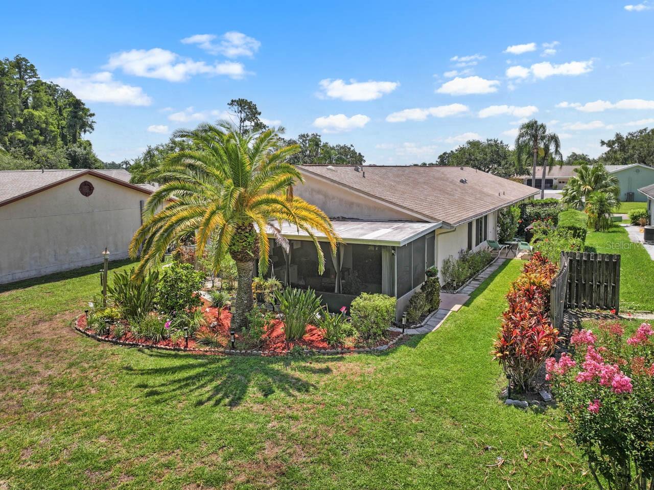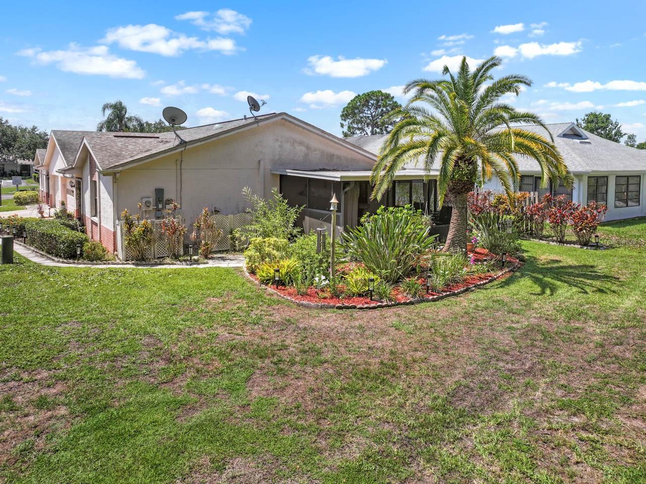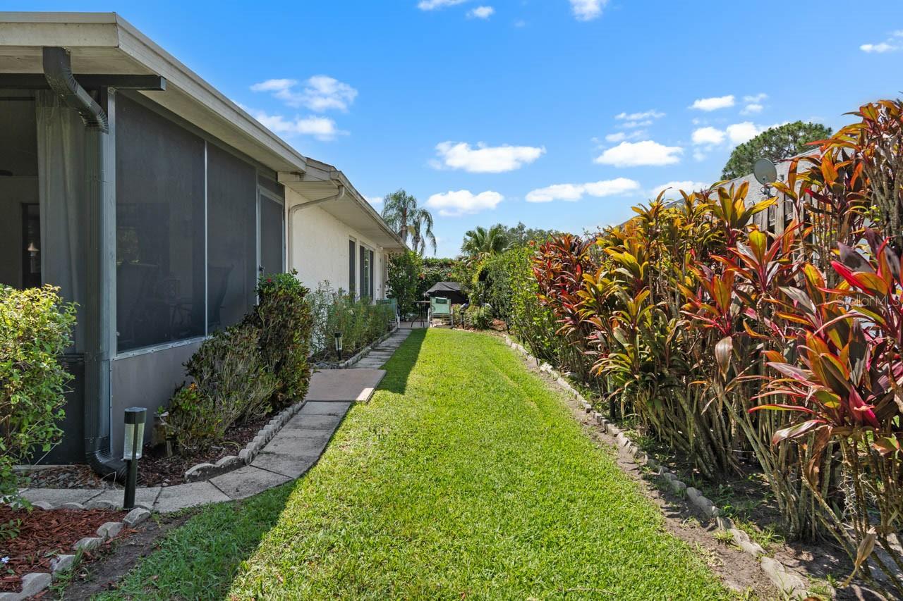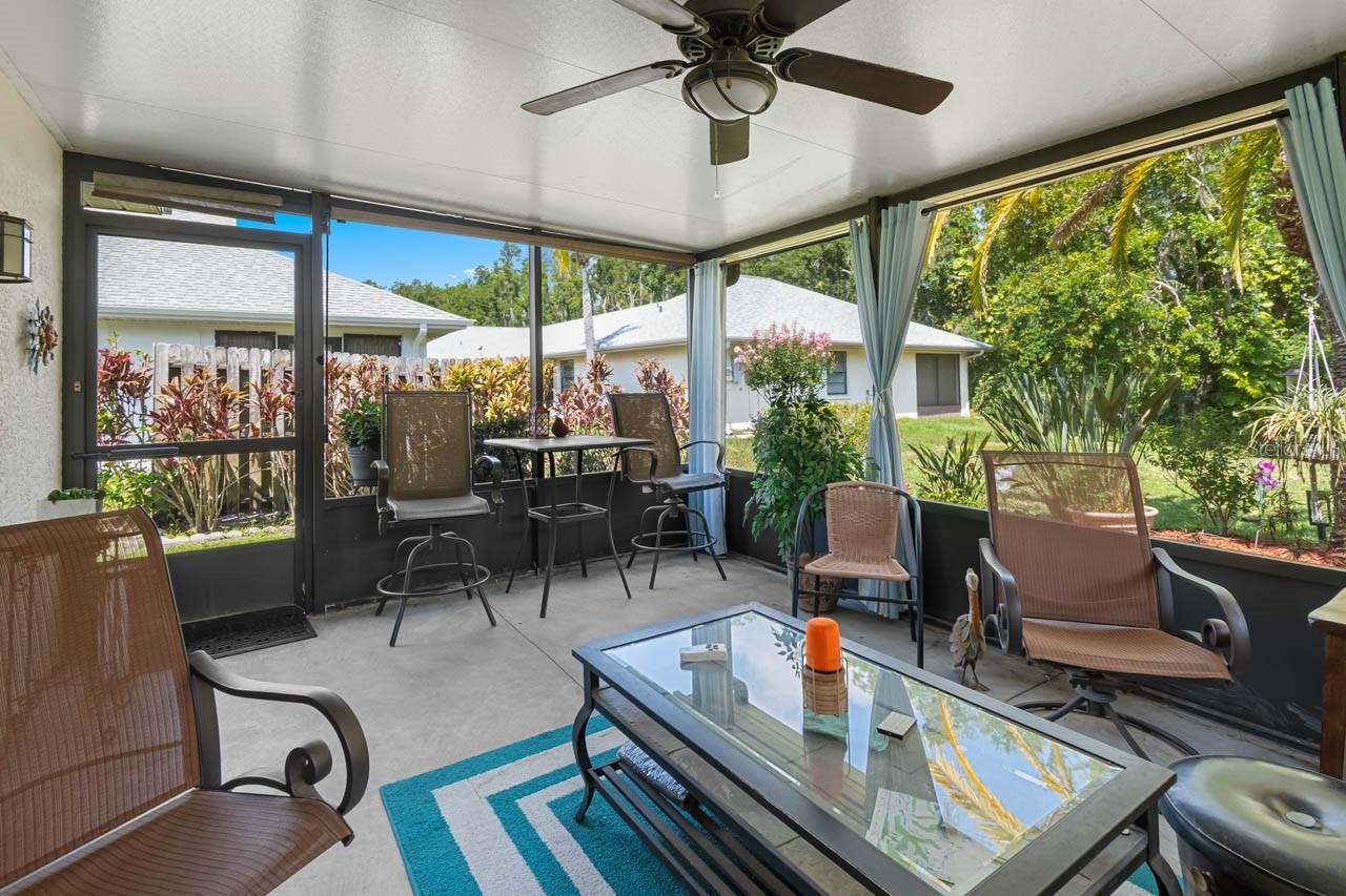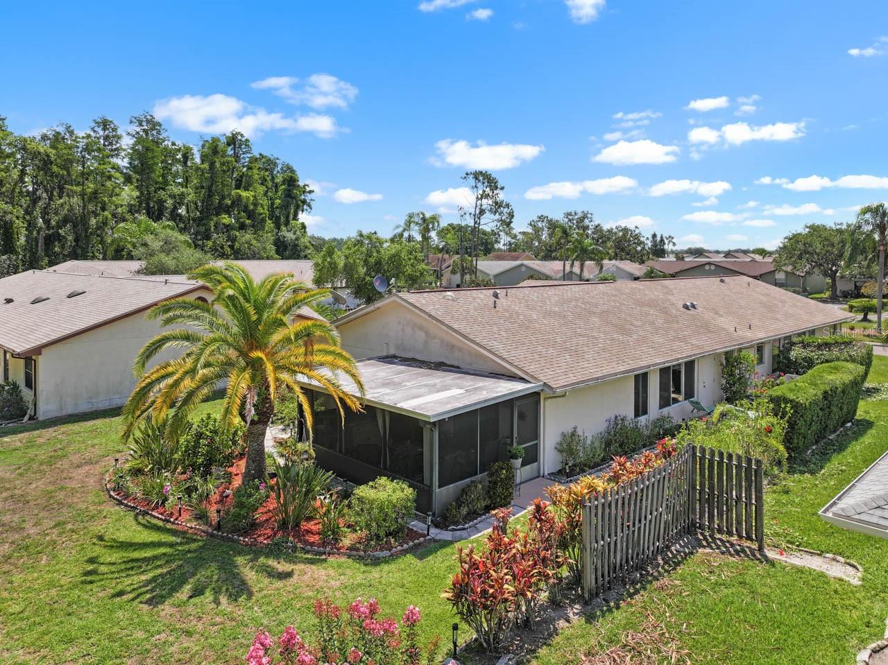 Motivated Seller is replacing roof prior to closing! Don't miss the opportunity to own this inviting 2-bedroom, 2-bathroom, 1.5-car garage home nestled in the heart of the active 55+ community of Sun City Center! HVAC replaced in 2024, FRESHLY PAINTED, NEW interior doors, NEW garage door opener, 15 square feet of NEW cedar planking in main closet, skylights, and so much more! Step through the COVERED & SCREENED FRONT PORCH into the foyer with convenient coat closet. Inside, you'll find CERAMIC TILE FLOORING throughout, except for the wood-look laminate flooring in each bedroom. NO CARPET to contend with in this adorable villa! The open-concept great room houses the living room, dining room with its scenic view of the mature landscaping outside, and of course the well-appointed kitchen, featuring newer STAINLESS STEEL appliances and an island! Rest and recharge in the primary bedroom retreat, complete with an EN-SUITE BATHROOM boasting a single sink vanity, SHOWER STALL, linen closet, and plentiful cabinet storage! The primary also includes a WALK-IN CLOSET and sliders to the COVERED/SCREENED LANAI where the conservation view provides privacy and attracts beautiful butterflies! The secondary bedroom has double-doors and makes an excellent flex space, and the secondary bathroom has a single sink vanity and tub/shower combination. Don't miss your chance to make this charming home yours and enjoy all the amenities and activities this vibrant community provides. Schedule your showing today!