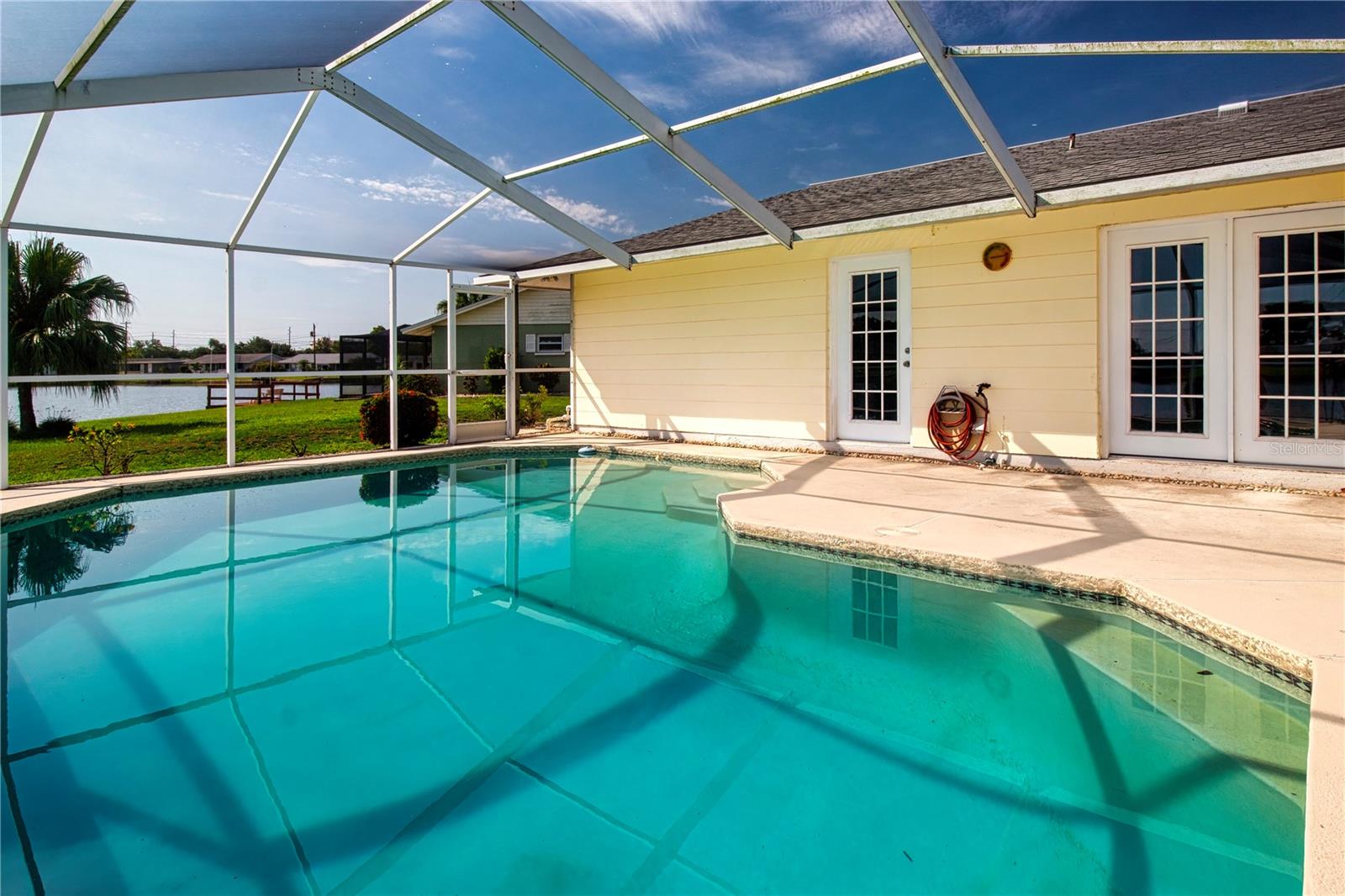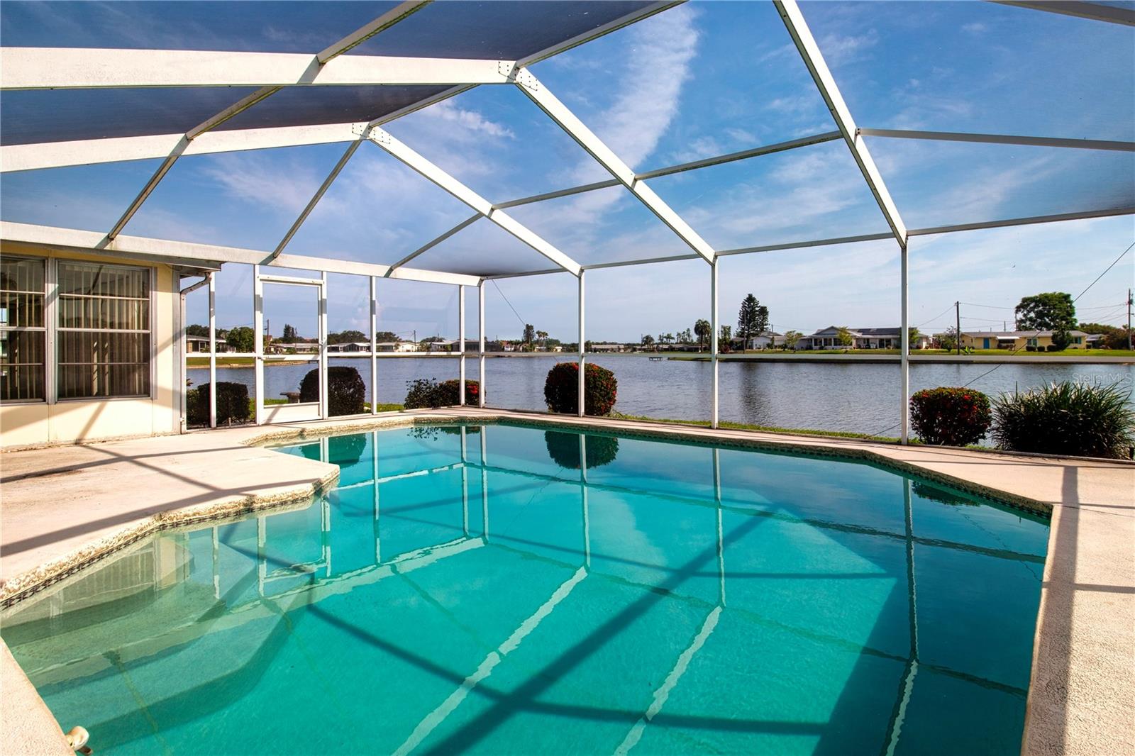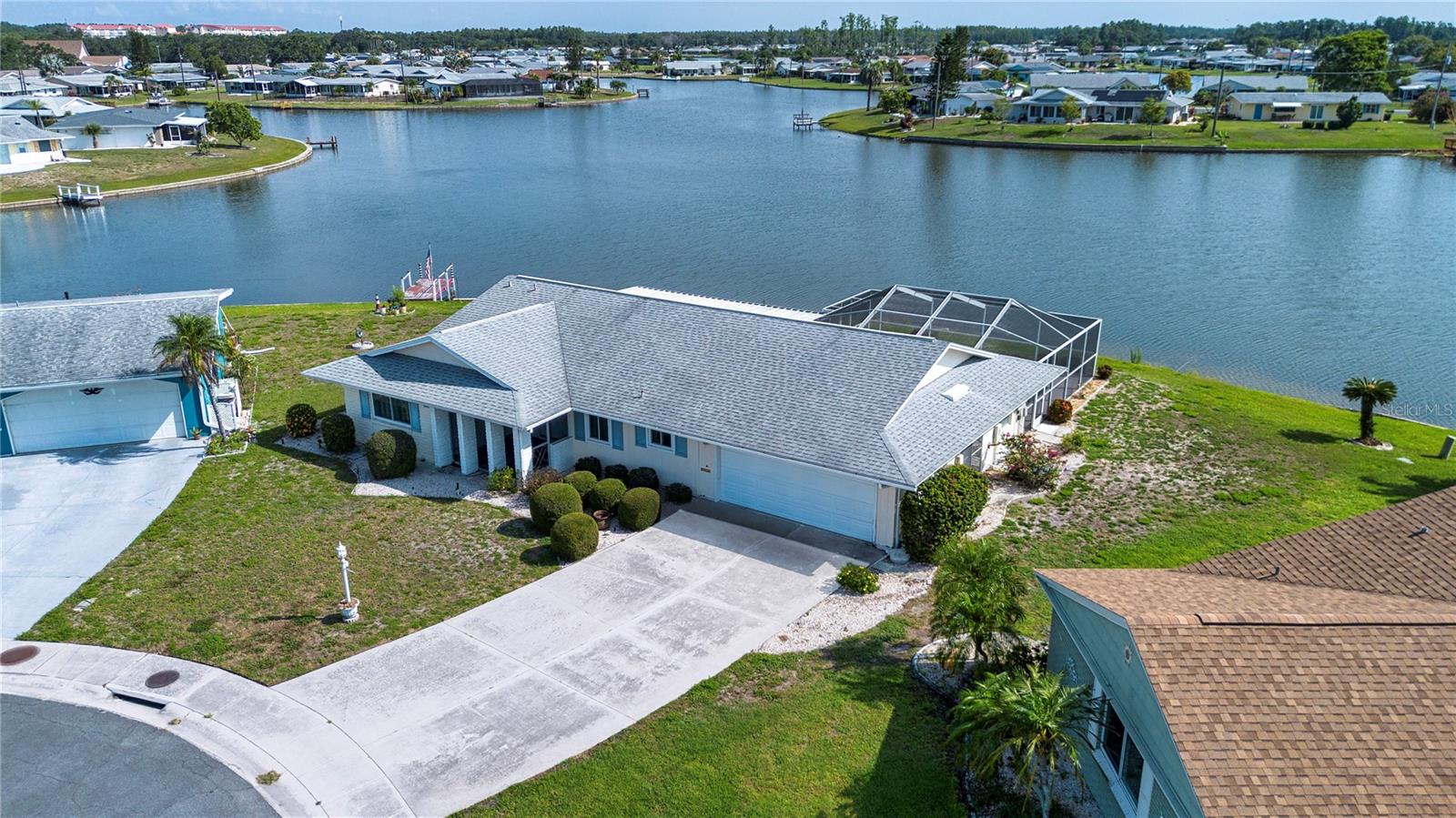 Lakefront Living with Private Pool in a Peaceful 55+ Community Setting! Welcome to your Florida dream retreat! Nestled on a quiet cul-de-sac and set against the backdrop of a serene lake, this 2-bedroom, 2-bathroom pool home offers the ideal blend of relaxation, functionality, and comfort—all just waiting for you to move in and update with your own flare and creativity. With 1,726 sq ft of living space (plus a spacious under-air Florida room overlooking the lake), you’ll have plenty of room to entertain, unwind, and take in the view. Enjoy easy living with a thoughtfully designed floor plan featuring a bright and functional kitchen, complete with a cozy dinette area and pull-out pantry shelves—perfect for accessibility. Wood laminate flooring throughout the main living areas and bedrooms adds warmth with minimal upkeep. The Florida room and French doors off the living room invite in natural light and open to your private pool—an entertainer’s dream or the perfect place to float and take in the peaceful lake view. The spacious primary suite offers French doors for privacy, a walk-in closet, and an en-suite bathroom with a step-in shower for added convenience. You’ll also love the oversized 2-car garage, abundant storage, and a generous under-air laundry room with poolside shower—ideal for active Florida living. Major updates provide peace of mind: Re-piped water lines (2022), HVAC (2022), electrical panel (2015), and hot water heater (2016). Roof is in good condition at 14 years old. Whether you're downsizing or simply looking for a low-maintenance lifestyle in a tranquil setting, this lakefront pool home is a rare find. Don’t miss the chance to enjoy all that Florida living has to offer! But the real star is the lifestyle! As part of a highly sought-after 55+ community, you'll enjoy access to two clubhouses, indoor and outdoor pools, a state-of-the-art fitness center, tennis and pickleball courts, golf course, and a wide variety of clubs, events, and entertainment to suit every interest. Conveniently located between Tampa and Sarasota, you're just about 40 minutes from Tampa International or Sarasota Airport, with shopping, dining, medical facilities, and worship centers all just minutes away. This is more than just a home—it's a lifestyle. Don’t miss your chance to own a lakefront pool home in one of Florida’s premier active adult communities!