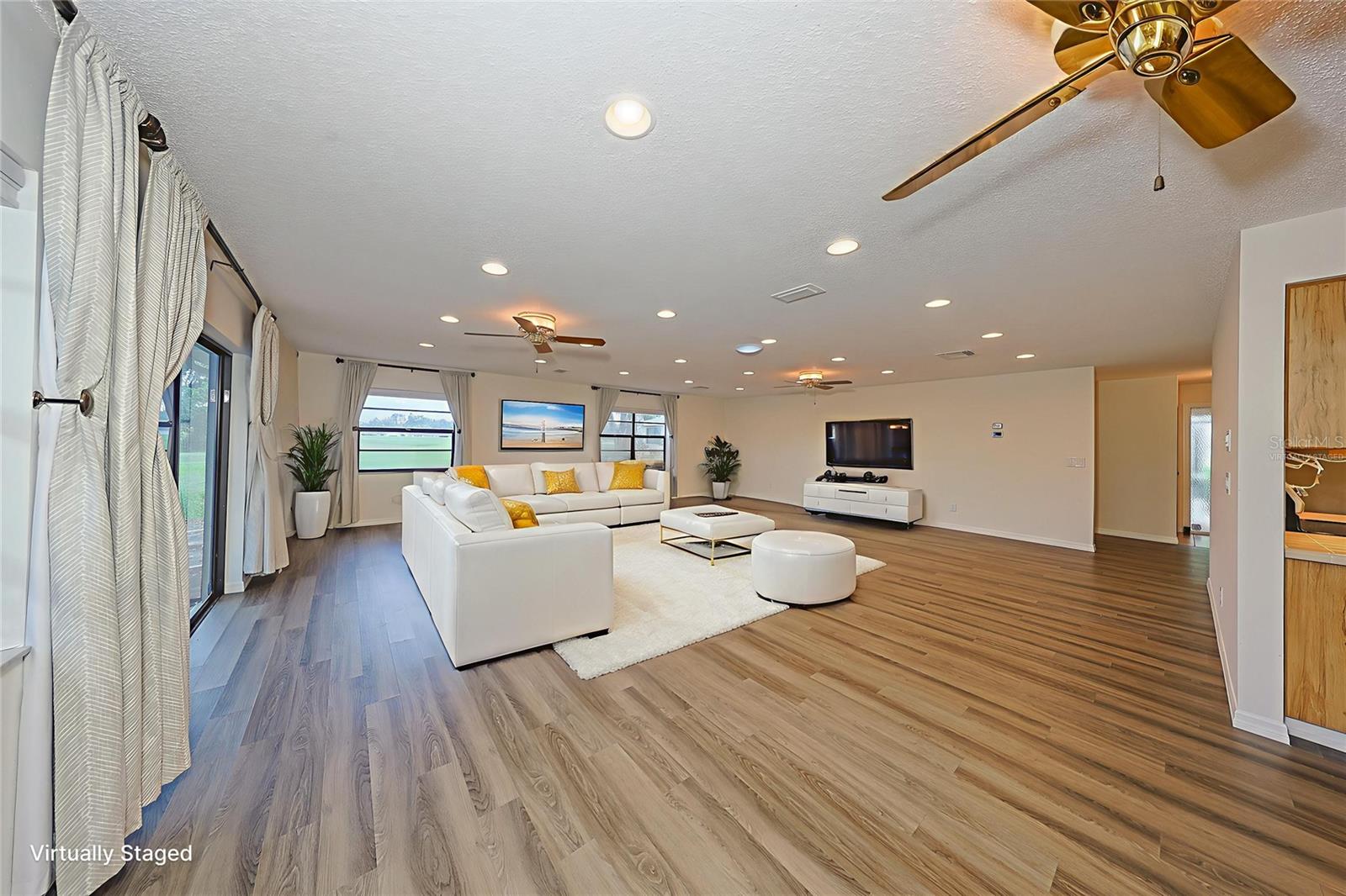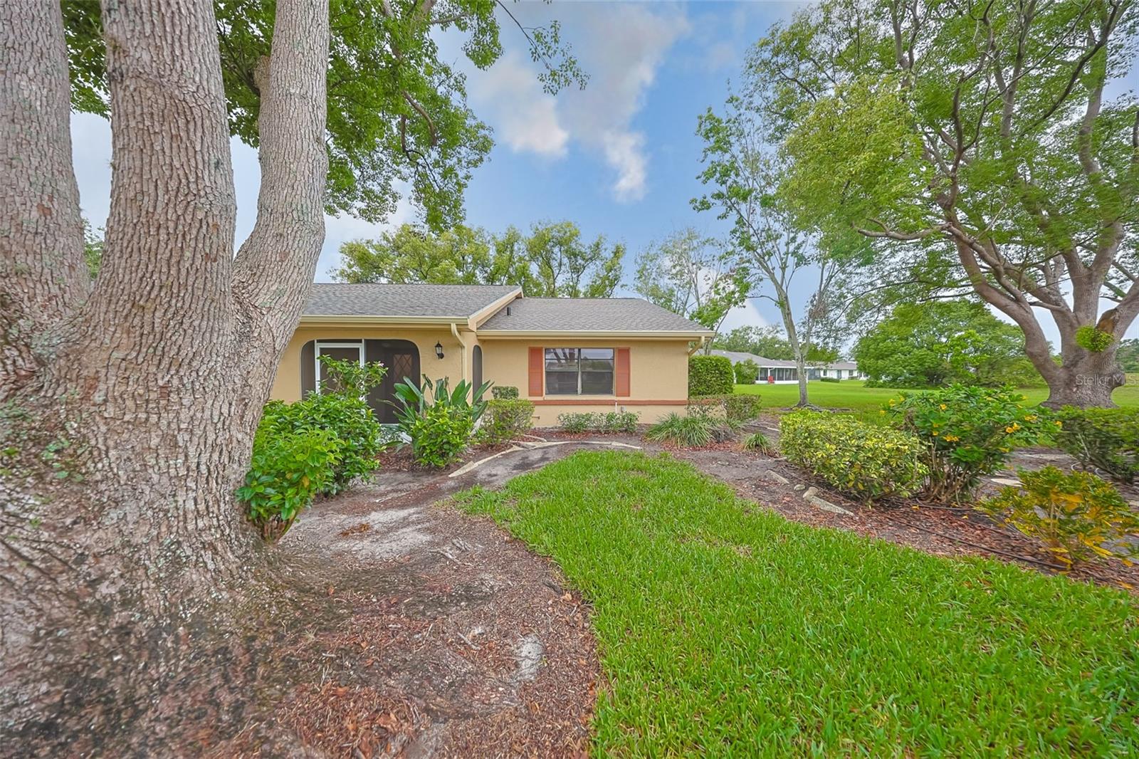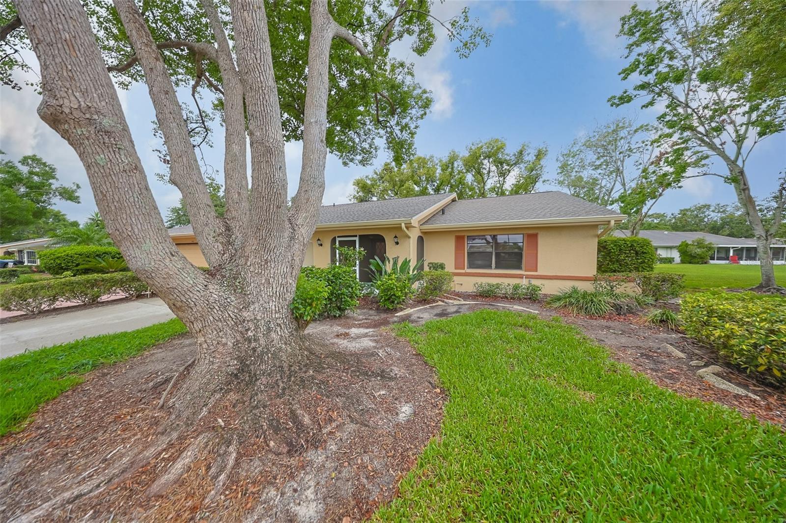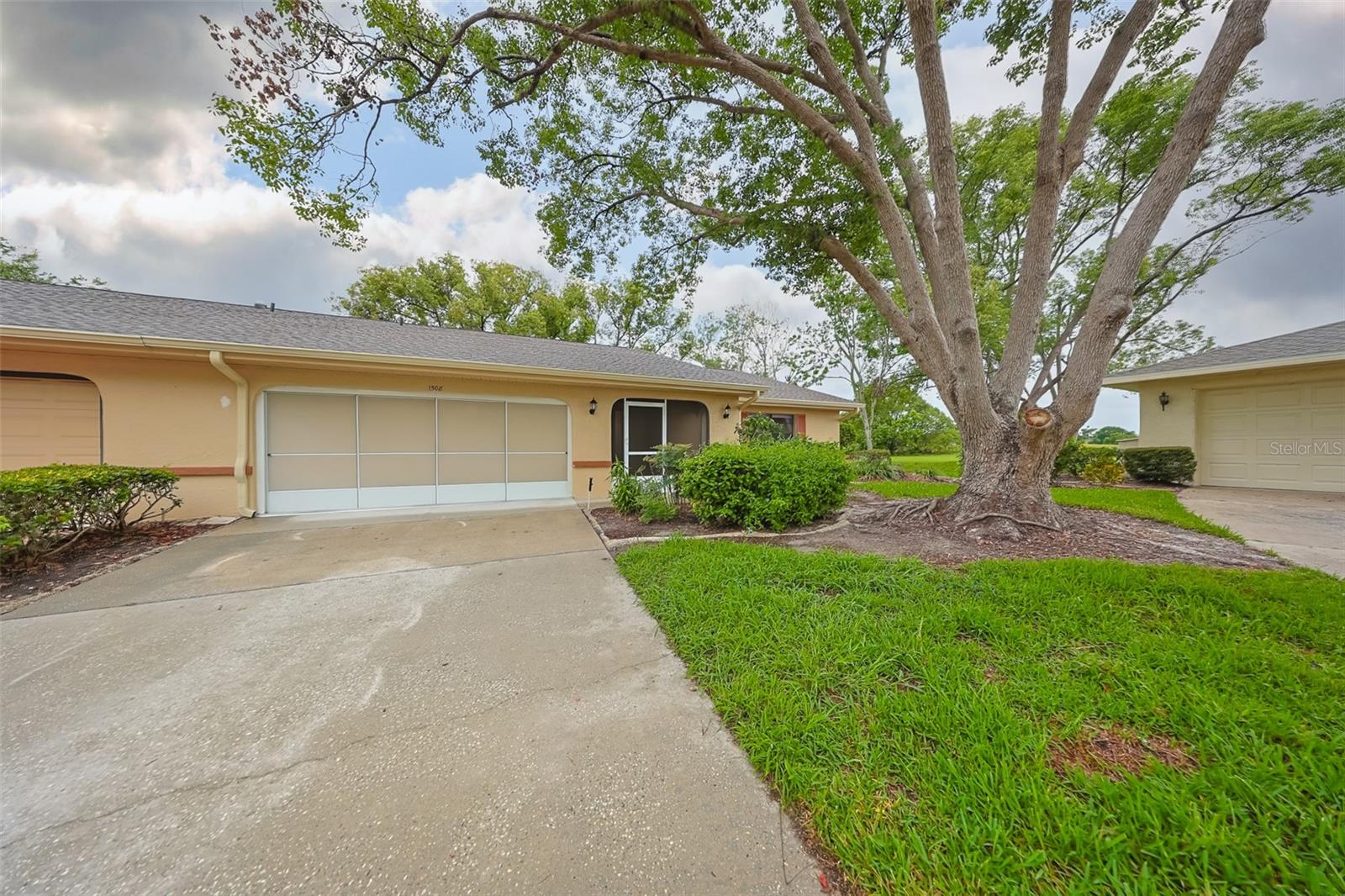 One or more photo(s) has been virtually staged. Discover abundant space and comfort in this expanded Sahara floor plan featuring a desirable split-bedroom layout. Situated in the Gated Community of Kings Point and a part of Sun City Center which was Recognized as the #1 Retirement Community for 2024 by Realtor.com and Travel + Leisure Magazine. This home has been nicely updated for modern living with expansive windows throughout the home offering peaceful views of surrounding green space. All windows have new blinds that may be raised from the bottom or lowered from the top for maximum flexibility. The garage is roomy enough for 2 cars and storage space. A fresh coat of paint was just completed for the exterior. Recent upgrades include new vanities in both the primary and guest bathrooms, luxury vinyl plank flooring (2022), a new electrical panel (2025), new roof (2025), new refrigerator (2025), hot water heater (2021), and HVAC system (2019). The generous primary suite boasts a custom-designed walk-in closet. All walls and ceilings have a fresh coat of paint. Enjoy your morning coffee or evening drink on the inviting screened front porch. Additional highlights include upgraded toilets with bidet attachments in both bathrooms and Updated LED recessed lighting with dimmer switches throughout the main living area. There is room on the back for the addition of a 10 X 25 Screened Lanai. Living in Kings Point means access to a truly resort-style lifestyle. Take advantage of world-class amenities including the North Clubhouse with indoor and outdoor pools, spas, and Veterans Theatre. The South Club has both indoor and outdoor pools and SPA/Hot tub, the popular Sports Bar for watching your favorite team and Palm Court Cafe for breakfast lunch and dinner, plus a fitness center and stained glass studio. Then there is the Nantucket Pool for quiet relaxation and another SPA/Hot tub. The 2020 Centre houses the Ladies Serenity SPA plus a world class fitness center. Other activities include pickleball, golf, lawn bowling, billiards, cards, model railroad, stained glass, pottery, and live shows at the Veterans Theater. The entire community is golf cart accessible for convenient access to shopping, medical facilities, and social events. Luxury, comfort, and community await, welcome to your new home!