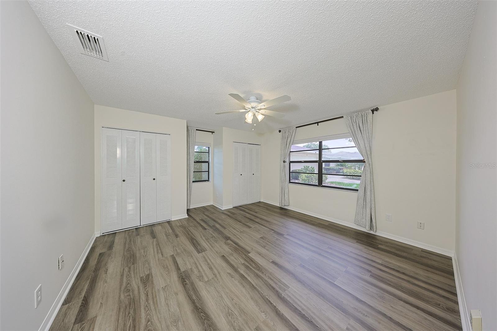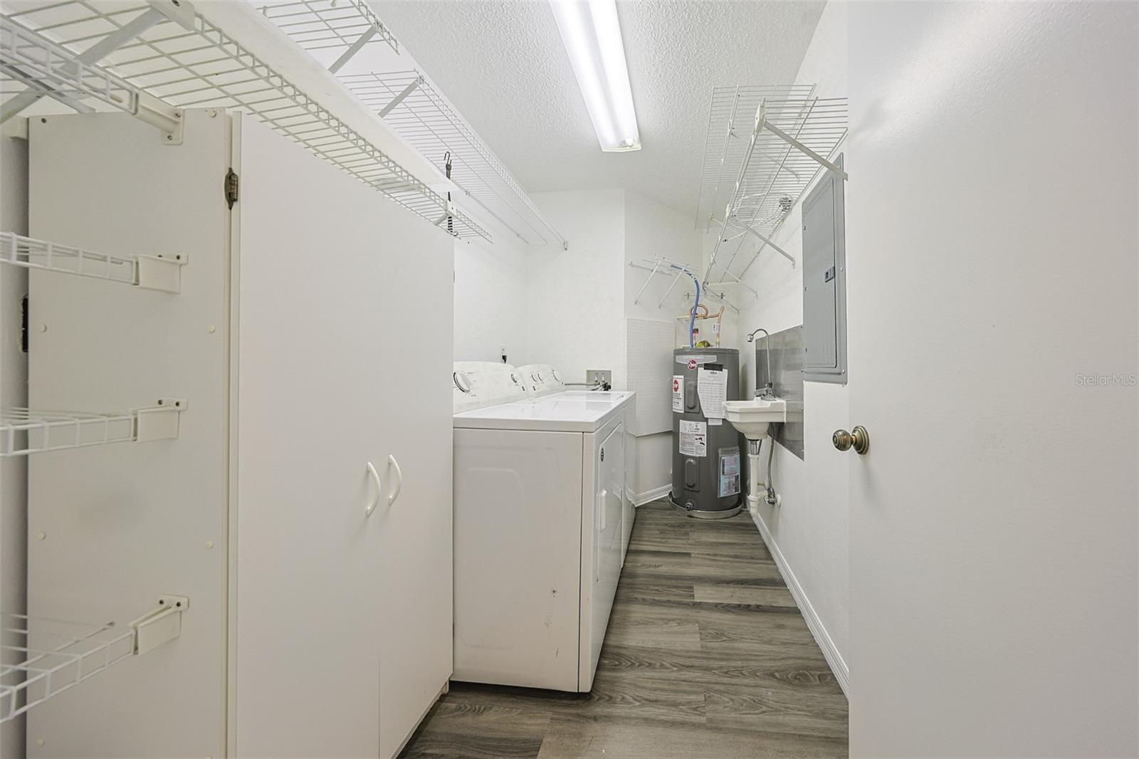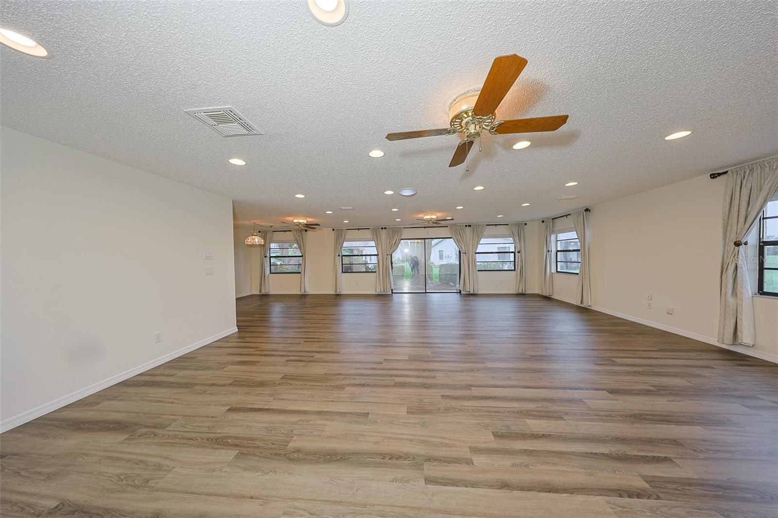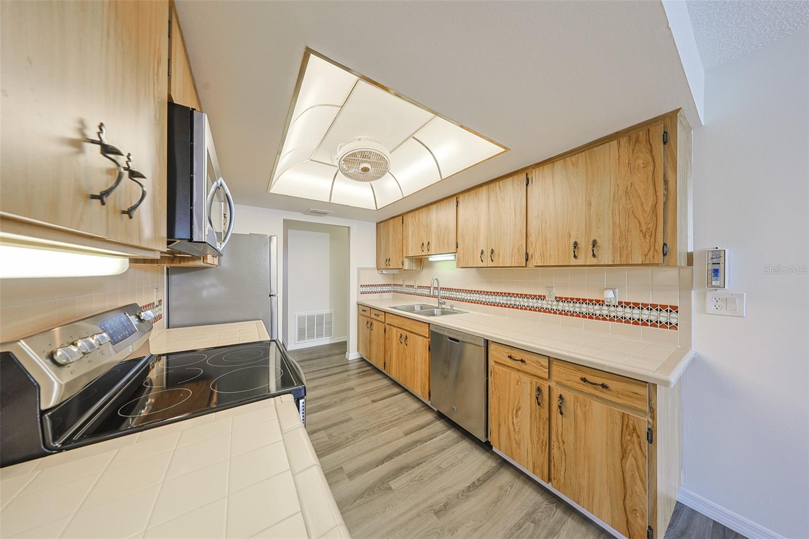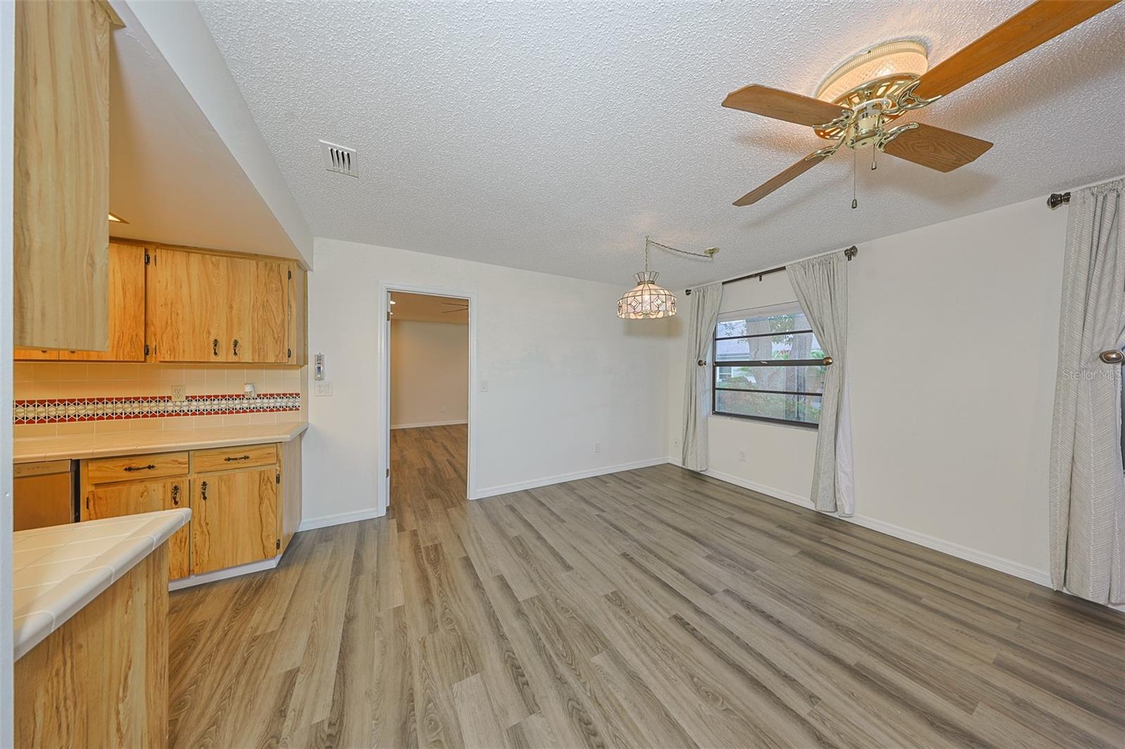 One or more photo(s) has been virtually staged. Discover abundant space and comfort in this expanded Sahara floor plan featuring a desirable split-bedroom layout. Situated in the Gated Community of Kings Point and a part of Sun City Center which was Recognized as the #1 Retirement Community for 2024 by Realtor.com and Travel + Leisure Magazine. This home has been nicely updated for modern living with expansive windows throughout the home offering peaceful views of surrounding green space. All windows have new blinds that may be raised from the bottom or lowered from the top for maximum flexibility. The garage is roomy enough for 2 cars and storage space. A fresh coat of paint was just completed for the exterior. Recent upgrades include new vanities in both the primary and guest bathrooms, luxury vinyl plank flooring (2022), a new electrical panel (2025), new roof (2025), new refrigerator (2025), hot water heater (2021), and HVAC system (2019). The generous primary suite boasts a custom-designed walk-in closet. All walls and ceilings have a fresh coat of paint. Enjoy your morning coffee or evening drink on the inviting screened front porch. Additional highlights include upgraded toilets with bidet attachments in both bathrooms and Updated LED recessed lighting with dimmer switches throughout the main living area. There is room on the back for the addition of a 10 X 25 Screened Lanai. Living in Kings Point means access to a truly resort-style lifestyle. Take advantage of world-class amenities including the North Clubhouse with indoor and outdoor pools, spas, and Veterans Theatre. The South Club has both indoor and outdoor pools and SPA/Hot tub, the popular Sports Bar for watching your favorite team and Palm Court Cafe for breakfast lunch and dinner, plus a fitness center and stained glass studio. Then there is the Nantucket Pool for quiet relaxation and another SPA/Hot tub. The 2020 Centre houses the Ladies Serenity SPA plus a world class fitness center. Other activities include pickleball, golf, lawn bowling, billiards, cards, model railroad, stained glass, pottery, and live shows at the Veterans Theater. The entire community is golf cart accessible for convenient access to shopping, medical facilities, and social events. Luxury, comfort, and community await, welcome to your new home!