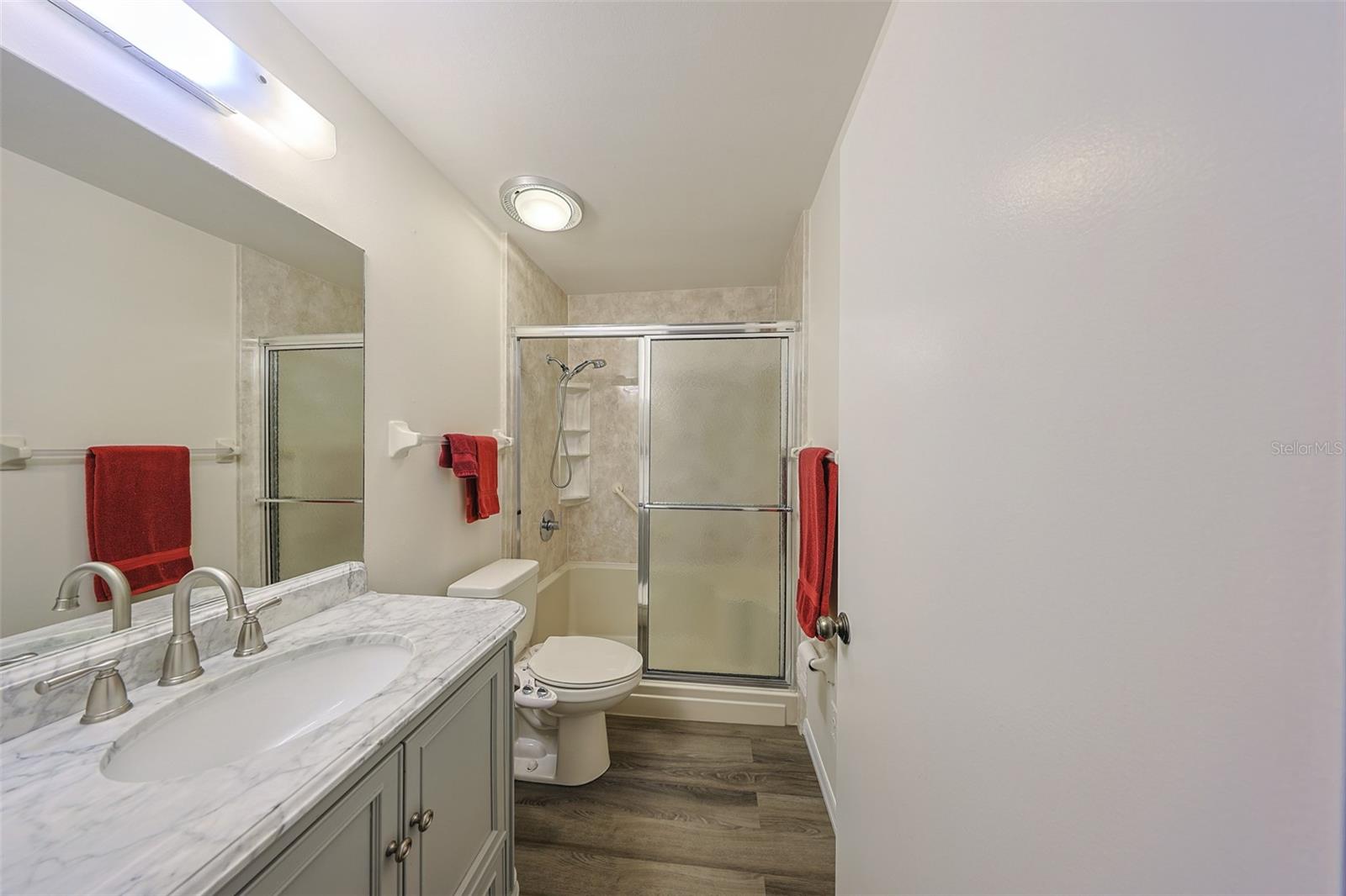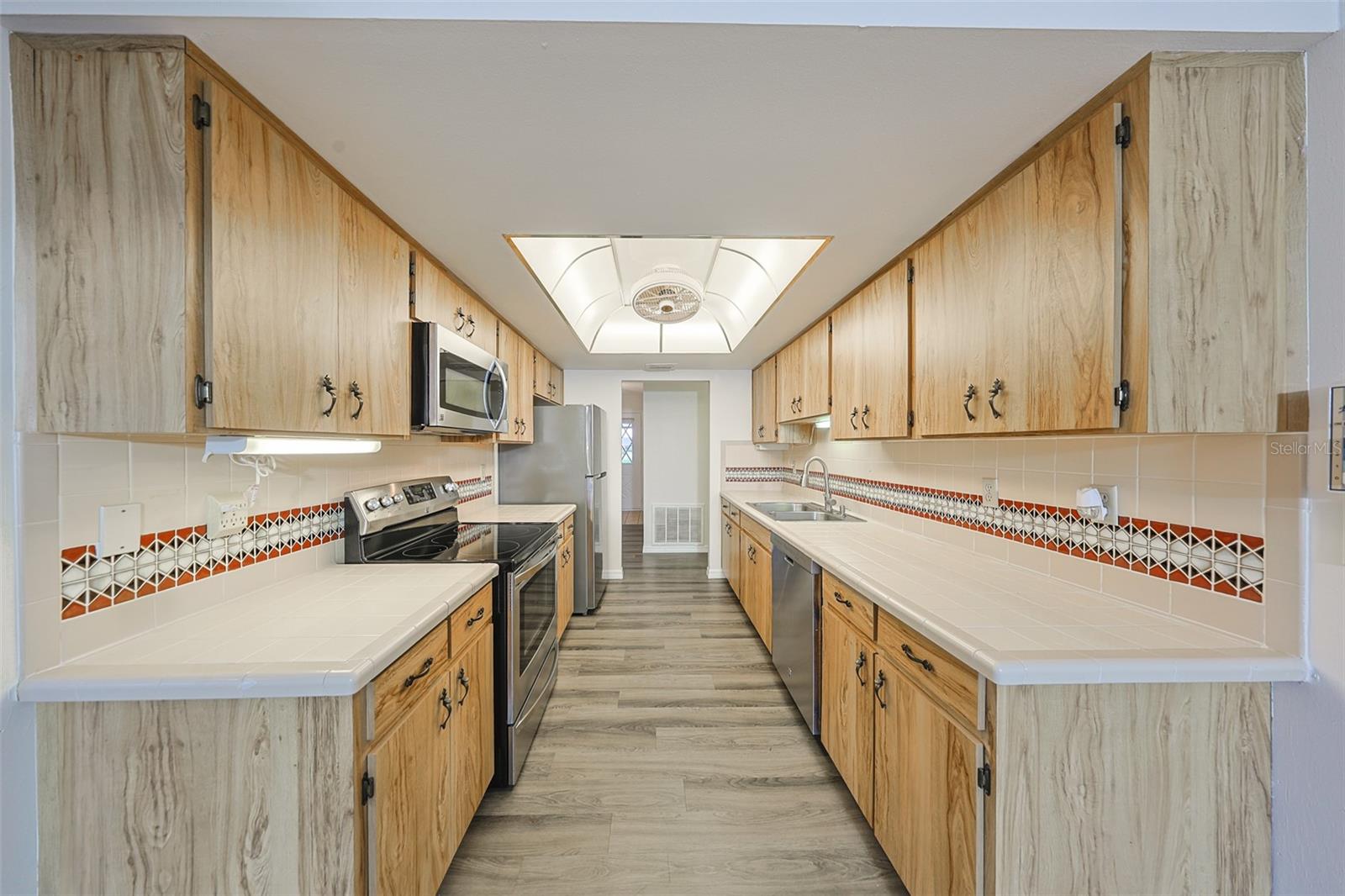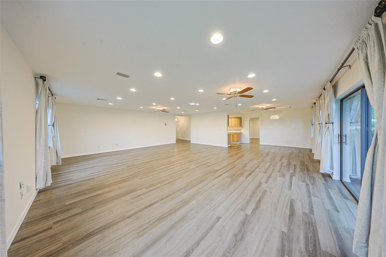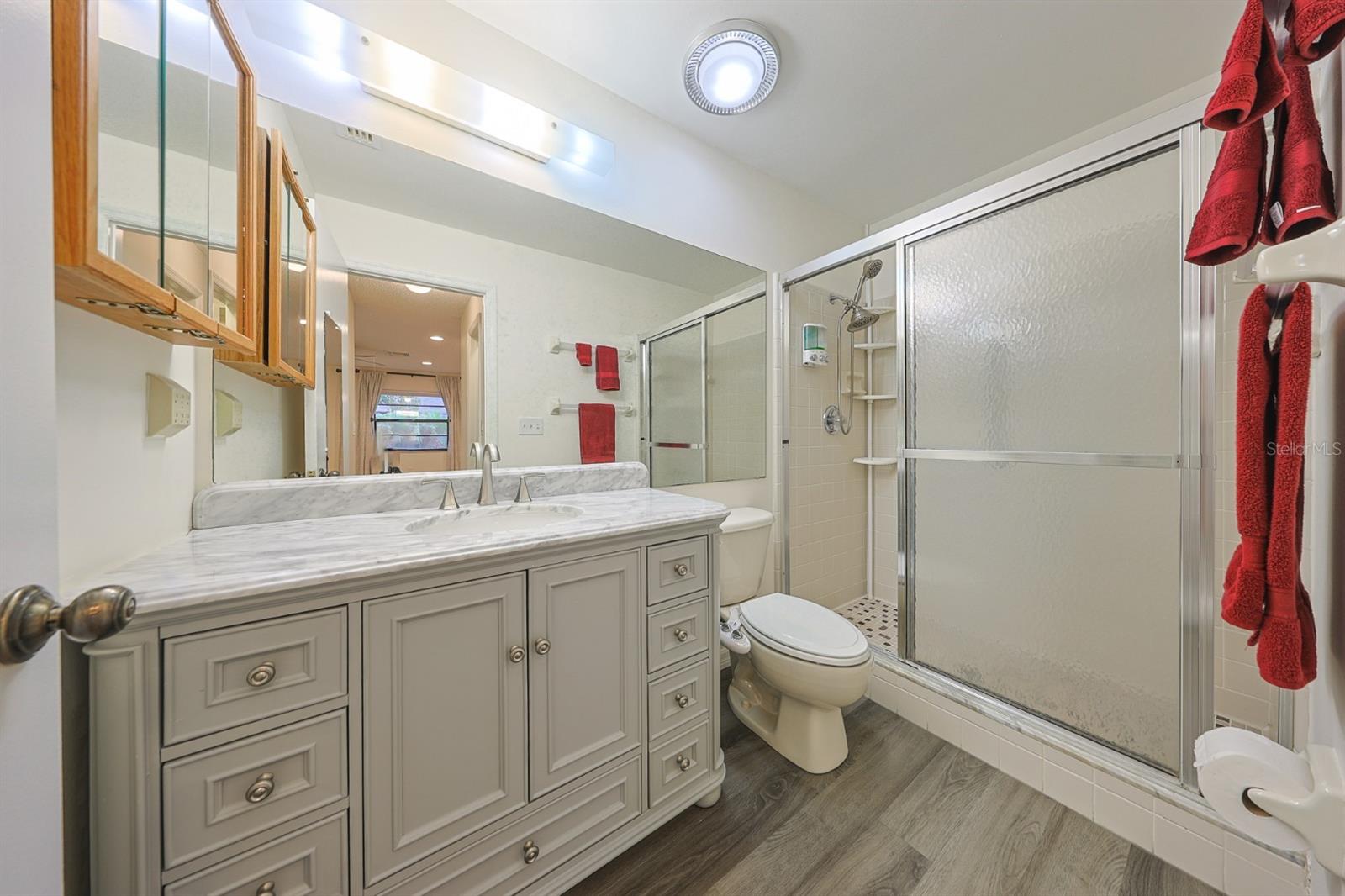 One or more photo(s) has been virtually staged. Discover abundant space and comfort in this expanded Sahara floor plan featuring a desirable split-bedroom layout. Situated in the Gated Community of Kings Point and a part of Sun City Center which was Recognized as the #1 Retirement Community for 2024 by Realtor.com and Travel + Leisure Magazine. This home has been nicely updated for modern living with expansive windows throughout the home offering peaceful views of surrounding green space. All windows have new blinds that may be raised from the bottom or lowered from the top for maximum flexibility. The garage is roomy enough for 2 cars and storage space. A fresh coat of paint was just completed for the exterior. Recent upgrades include new vanities in both the primary and guest bathrooms, luxury vinyl plank flooring (2022), a new electrical panel (2025), new roof (2025), new refrigerator (2025), hot water heater (2021), and HVAC system (2019). The generous primary suite boasts a custom-designed walk-in closet. All walls and ceilings have a fresh coat of paint. Enjoy your morning coffee or evening drink on the inviting screened front porch. Additional highlights include upgraded toilets with bidet attachments in both bathrooms and Updated LED recessed lighting with dimmer switches throughout the main living area. There is room on the back for the addition of a 10 X 25 Screened Lanai. Living in Kings Point means access to a truly resort-style lifestyle. Take advantage of world-class amenities including the North Clubhouse with indoor and outdoor pools, spas, and Veterans Theatre. The South Club has both indoor and outdoor pools and SPA/Hot tub, the popular Sports Bar for watching your favorite team and Palm Court Cafe for breakfast lunch and dinner, plus a fitness center and stained glass studio. Then there is the Nantucket Pool for quiet relaxation and another SPA/Hot tub. The 2020 Centre houses the Ladies Serenity SPA plus a world class fitness center. Other activities include pickleball, golf, lawn bowling, billiards, cards, model railroad, stained glass, pottery, and live shows at the Veterans Theater. The entire community is golf cart accessible for convenient access to shopping, medical facilities, and social events. Luxury, comfort, and community await, welcome to your new home!