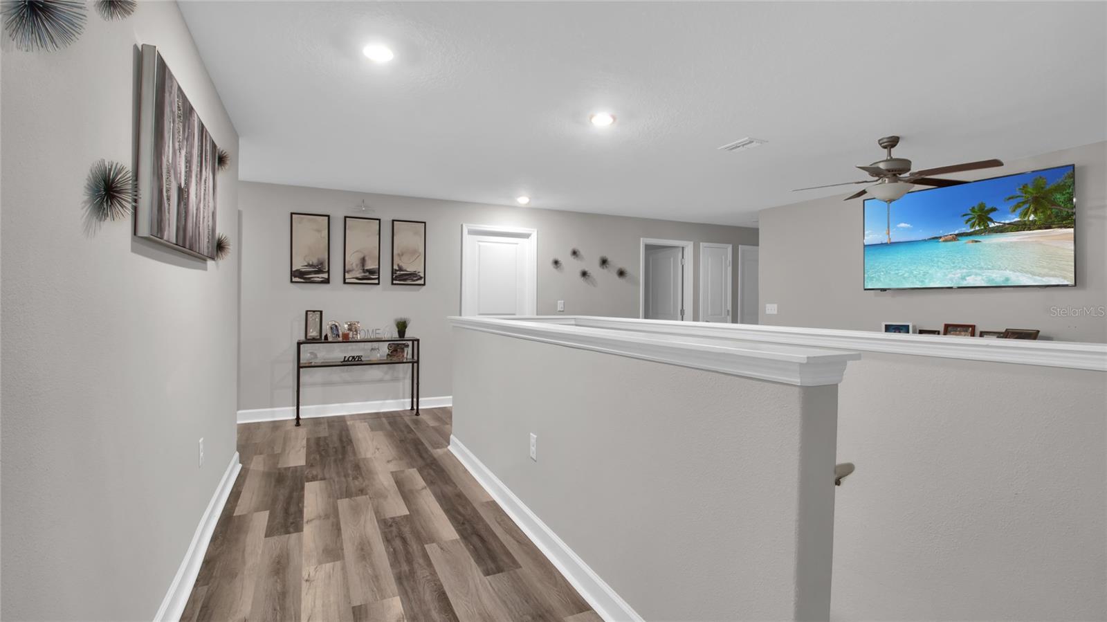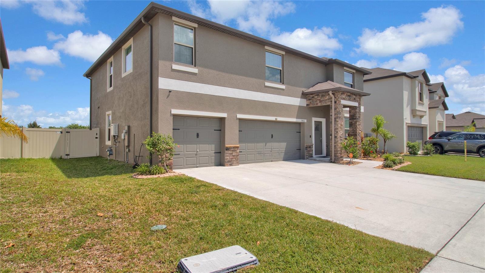Unique and the only House with this floorplan on this Community - Welcome to this spacious 6-bedroom with a Den and a Gym room and 4 Full Bathrooms, a 2-story home with 3-car garages located in the Belmont community. Just off Apollo Beach Exit. Designed with an open-concept layout, the kitchen seamlessly overlooks the living and dining areas, as well as the outdoor open patio, perfect for relaxing or entertaining with a 17x40 covered-screened Lanai, with a stunning pond view and a Heated Swim Spa. All fenced in. The kitchen is a chef's dream, featuring an oversized island, pantry, all-wood cabinetry, quartz countertops, and a full suite of stainless-steel appliances including a gas range, microwave, dishwasher, and side-by-side refrigerator. Reverse Osmosis included. 1 bedrooms on the 1st floor for guests and a Full bathroom. The other 5 bedrooms are on the 2nd floor. The large primary bedroom is overlooking the pond with 2 walk-in closets, separate sinks, cabinets for his and hers, a shower, and a separate garden tub. The other 4 bedrooms are a nice size with 2 additional full bathrooms, both with Double sinks. Additional highlights include a laundry room with a full-size washer and dryer, a loft area, and a Gym Room. The 3-car garage has an Electric Vehicle charger. Enjoy all that the Belmont community has to offer, including a resort-style pool, clubhouse, playgrounds, dog park, and peaceful walking trails. Conveniently located near top-rated schools, hospitals, shopping, dining, and with easy access to the interstate for commuting.. Don't miss this opportunity to live in comfort and style. Schedule your showing today!