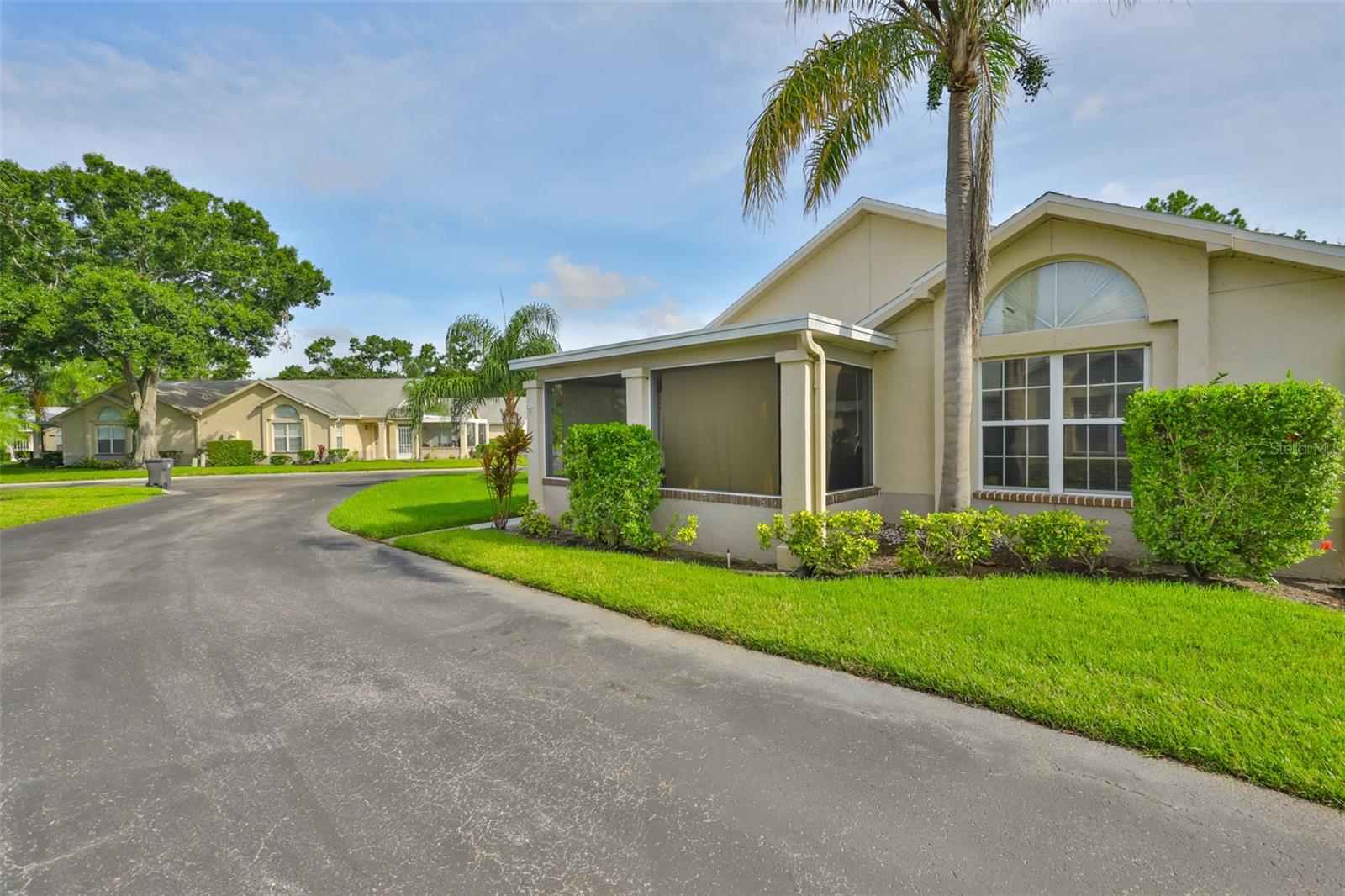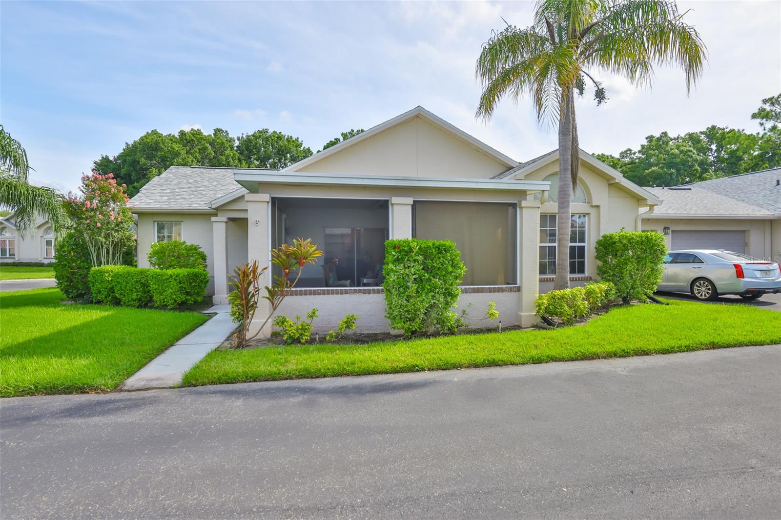 PRICE IMPROVED!! Maintenance-Free Living & MOVE-IN Ready! Welcome to effortless Florida living in the premier Fairway Palms community at Cypress Creek Golf Course & Country Club! This UPGRADED HAWTHORNE villa offers a spacious split floor plan with 2 PRIMARY suites, 2 bathrooms, and a 1.5-car garage perfect as a full-time residence or weekend retreat. Step inside and feel the difference VAULTED ceilings and wood-look laminate flooring create an open, inviting atmosphere. The kitchen is a standout with GRANITE countertops, stainless steel appliances, wood cabinetry with pull-out drawers, pantry, and a breakfast bar ideal for entertaining or casual meals. Slide open the glass doors to your screened lanai, perfect for morning coffee, grilling, or simply enjoying the peaceful surroundings. Both master bedrooms are oversized, featuring VAULTED ceilings, cozy carpeting, and large WALK-IN closets. The UPGRADED primary bath includes DUAL sinks, Upgraded Vanity w/ample storage, and a beautifully tiled walk-in shower w/GLASS Doors. Additional perks include INSIDE laundry with extra storage, New Roof (2025), HVAC (2024), Water Softener (2023), and water heater (2022). Fairway Palms offers resort-style amenities, including a heated community pool, clubhouse, and fitness center. Fairway Palms offers low monthly fees that include water, cable TV, Ground maintenance, outside maintenance, and escrow reserves, with no CDD fees. Golf carts are welcome, and the location provides easy access to I-75, making it a short drive to the beautiful beaches of Clearwater, St. Pete, and Sarasota, as well as top shopping, dining, golf, and both Tampa and Sarasota airports. This home has been meticulously cared for and is ready for you to move in and enjoy everything Florida living has to offer. Don't miss your chance! Schedule your private showing today!