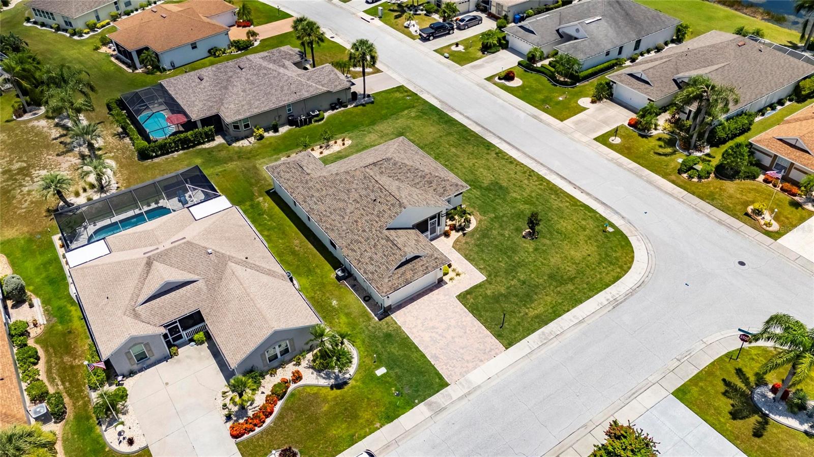 Beautifully updated home, in the desirable 55+ community of Sun City Center. From the moment you arrive, the expanded paver driveway, large corner lot, new grass and landscape make a bold first impression. A quaint screened front porch welcomes you inside. The elegant interior is filled with upscale details including high ceilings, luxury vinyl flooring (30mil), plantation shutters. The open-concept layout places the kitchen at the heart of the home, where you’ll find quartz countertops, wood cabinetry, soft close drawers, large breakfast bar, and tile backsplash. The split-bedroom layout gives the master suite its own private wing, complete with tray ceilings, two closets, and bathroom with wood vanity and a curbless tile shower. A hallway door provides your guest with complete privacy in the second bedroom. Wake up with a mug of coffee on the rocking chair back porch, watch the sunrise and let the day unfold. Additional upgrades include roof (07/2024,Owens Corning-25yr), seamless gutters, vinyl soffit, fascia, appliances, tankless water heater, water softener, utility sink, LED lightings, remote control fans, etc. HVAC changed on 3/5/22. The 2024 survey is attached. Amenities include community pools (indoor and outdoor), fitness, shuffleboard, softball, lawn bowling, pickleball, lapidary, art, wood carving and more. You can join one or more of over 200 clubs and activities, and golf courses. Golf carts are a secondary means of transportation, and you can easily access grocery stores, restaurants, hospital, doctor and dentist offices, banks, hardware and grocery stores. Sun City Center is located between Tampa and Sarasota and is near airports, beaches, amusement parks, and professional sports teams.