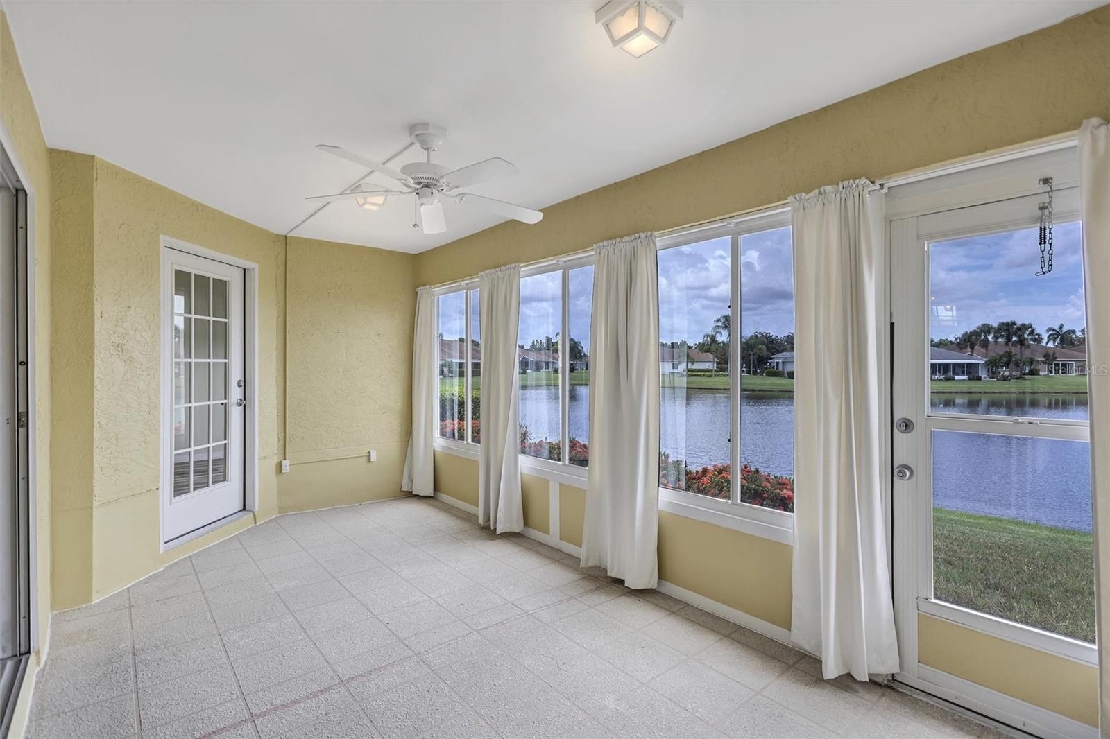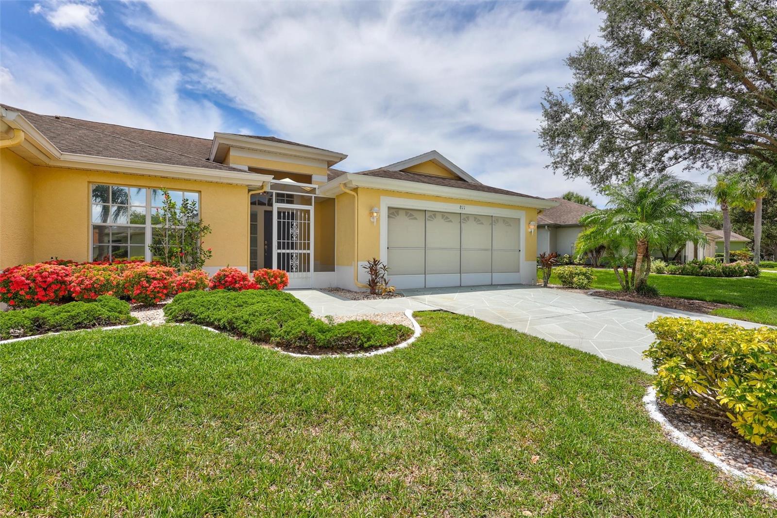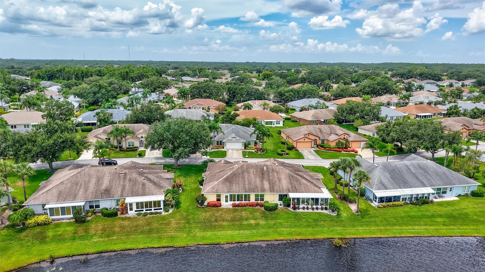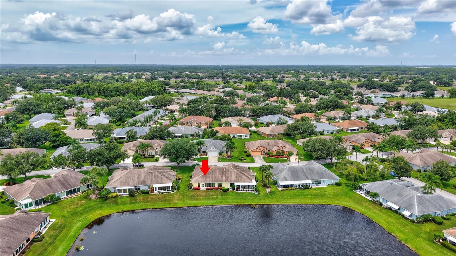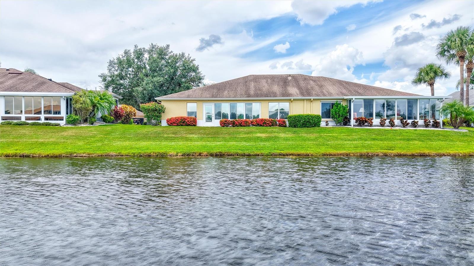 Welcome to effortless living! This beautifully maintained 2-bedroom, 2-bath home offers a split-bedroom floor plan designed for comfort and privacy, with views of the pond from both bedrooms. Enjoy the ease of brand new luxury vinyl flooring throughout, adding a modern touch to every room. A separate den/formal dining/office area makes every square foot count! Corian counters, gutters, and extra insulation in attic are all bonuses! Take in serene pond views from your bright and airy sunroom, the perfect spot for morning coffee or evening relaxation. The 2-car garage provides ample storage and convenience, and as part of a golf cart-friendly community, getting around couldn’t be easier. This home also features maintenance-free exterior living, giving you more time to enjoy the countless amenities Kings Point offers—including golf, pools, clubs, fitness centers, and more. Whether you're seeking relaxation or an active lifestyle, this home truly has it all. Don’t miss your chance to live the Florida lifestyle in comfort and style!